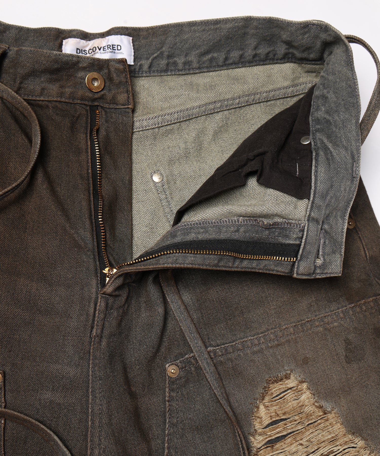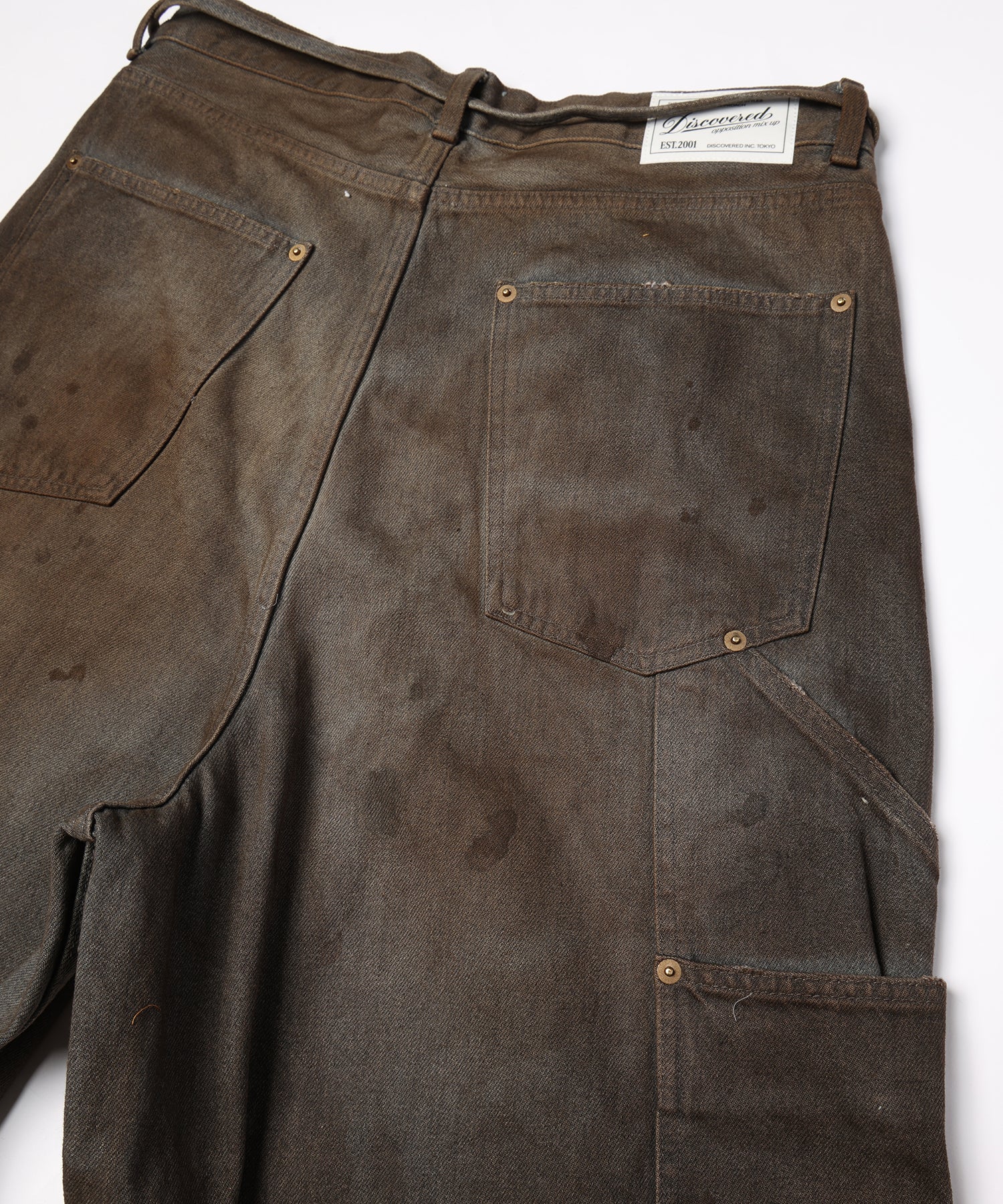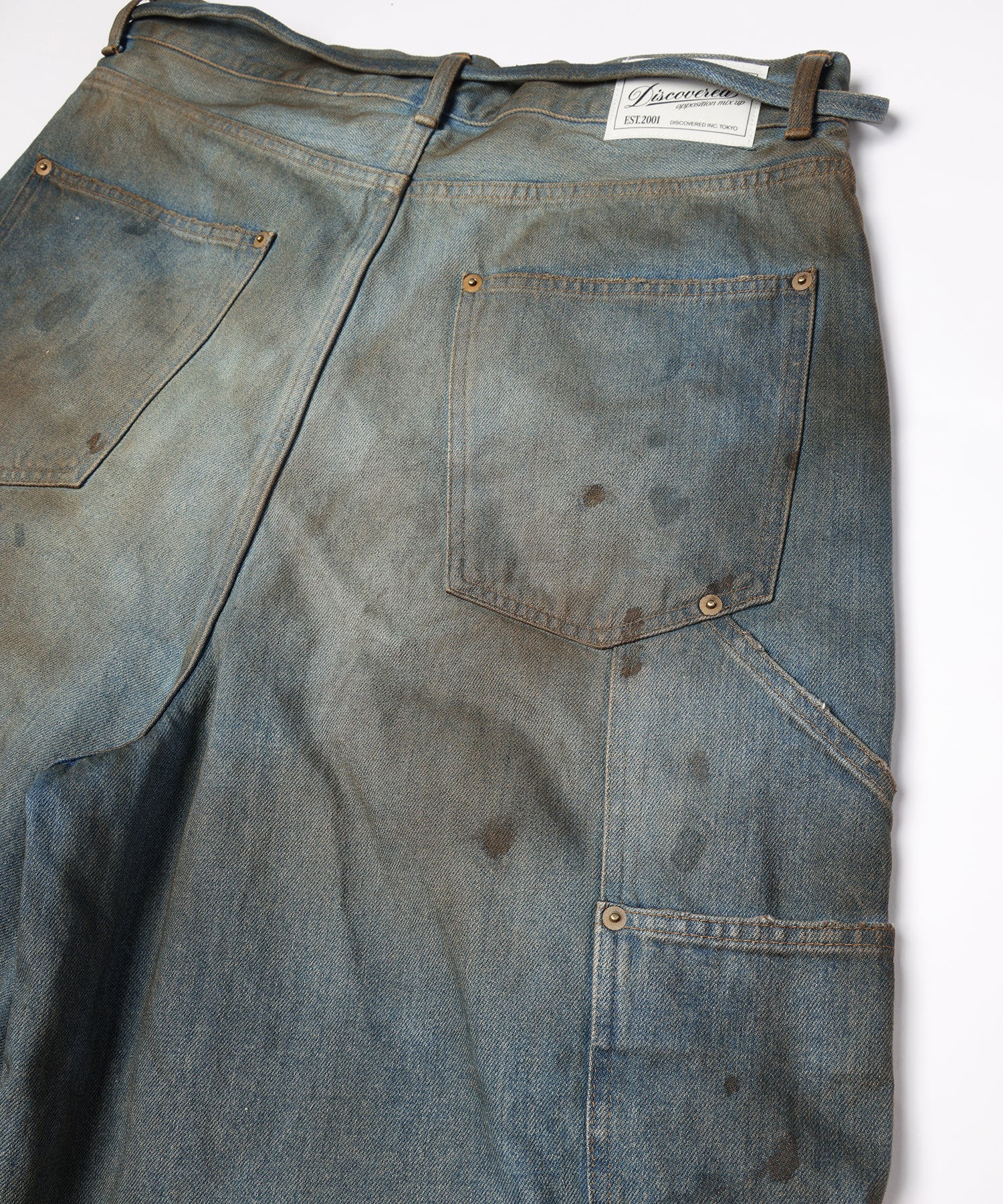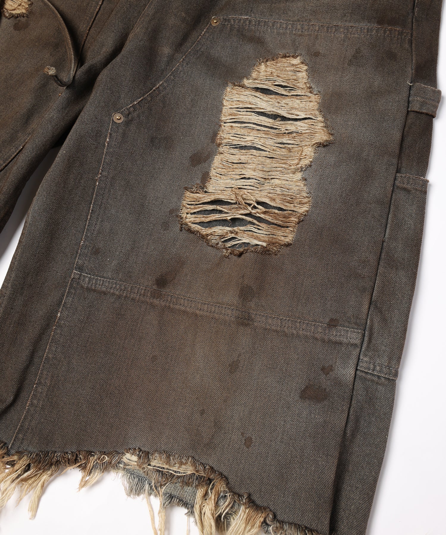 擦り、⽳あけ、オーバーダイ、油汚れなどワーク&ビンテージ感漂う、ハードな加工をを施し個性を高めました。