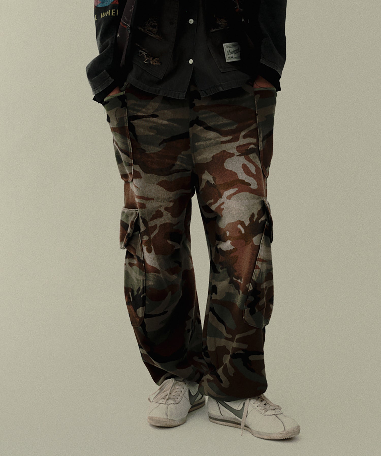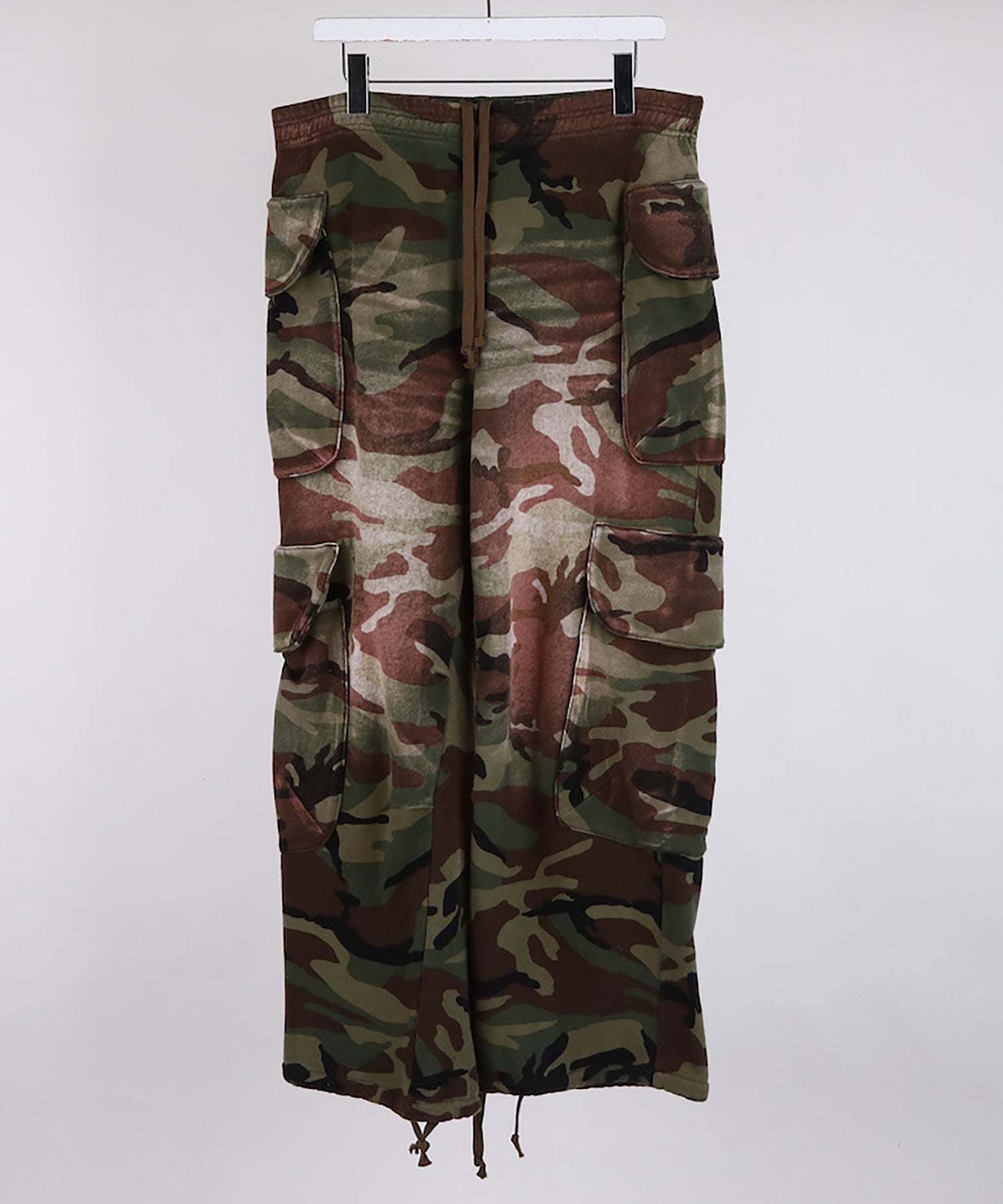 ボリューム感がありながらもドライタッチな裏毛を使用したワイドシルエットのスウェットカーゴパンツ。