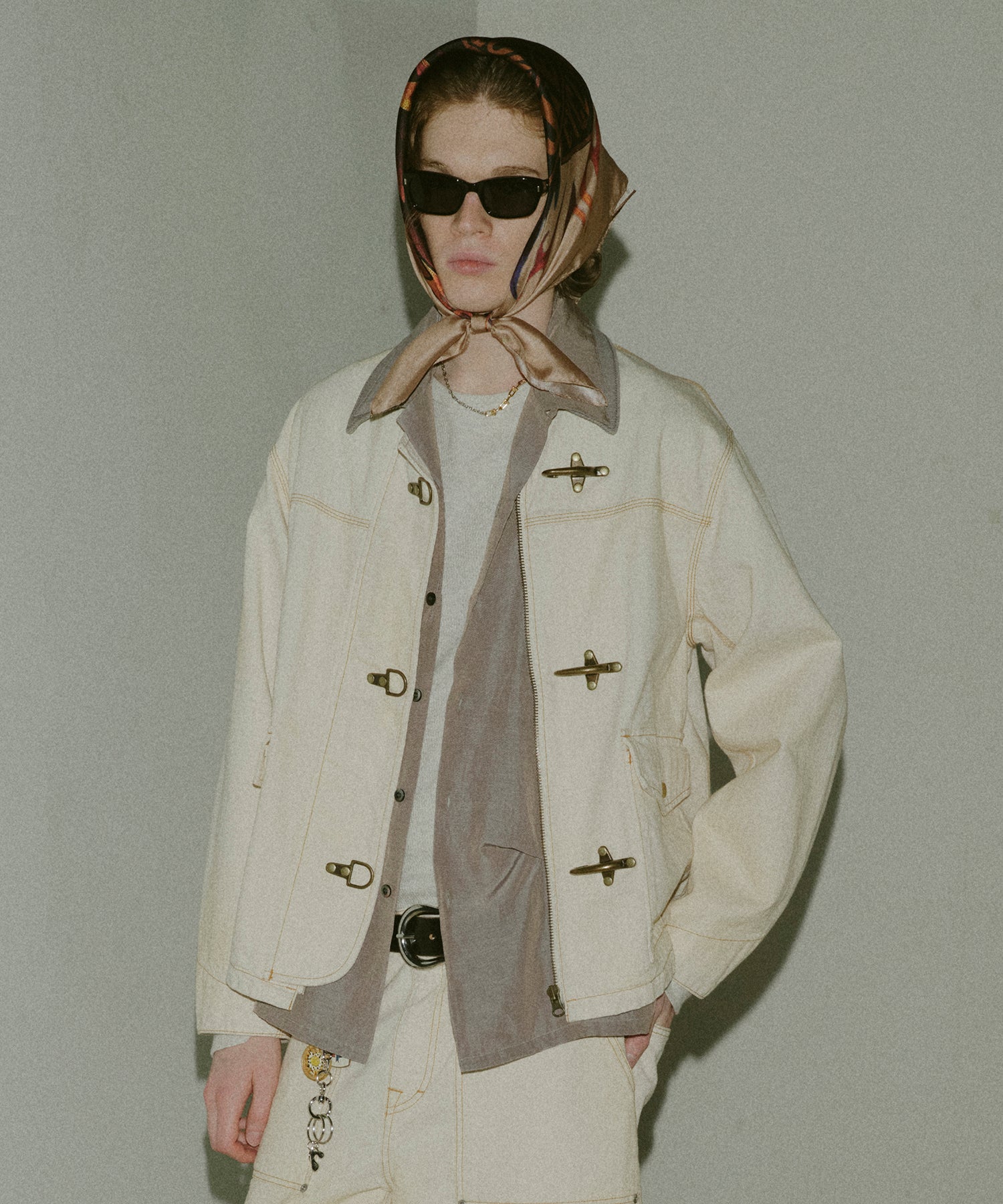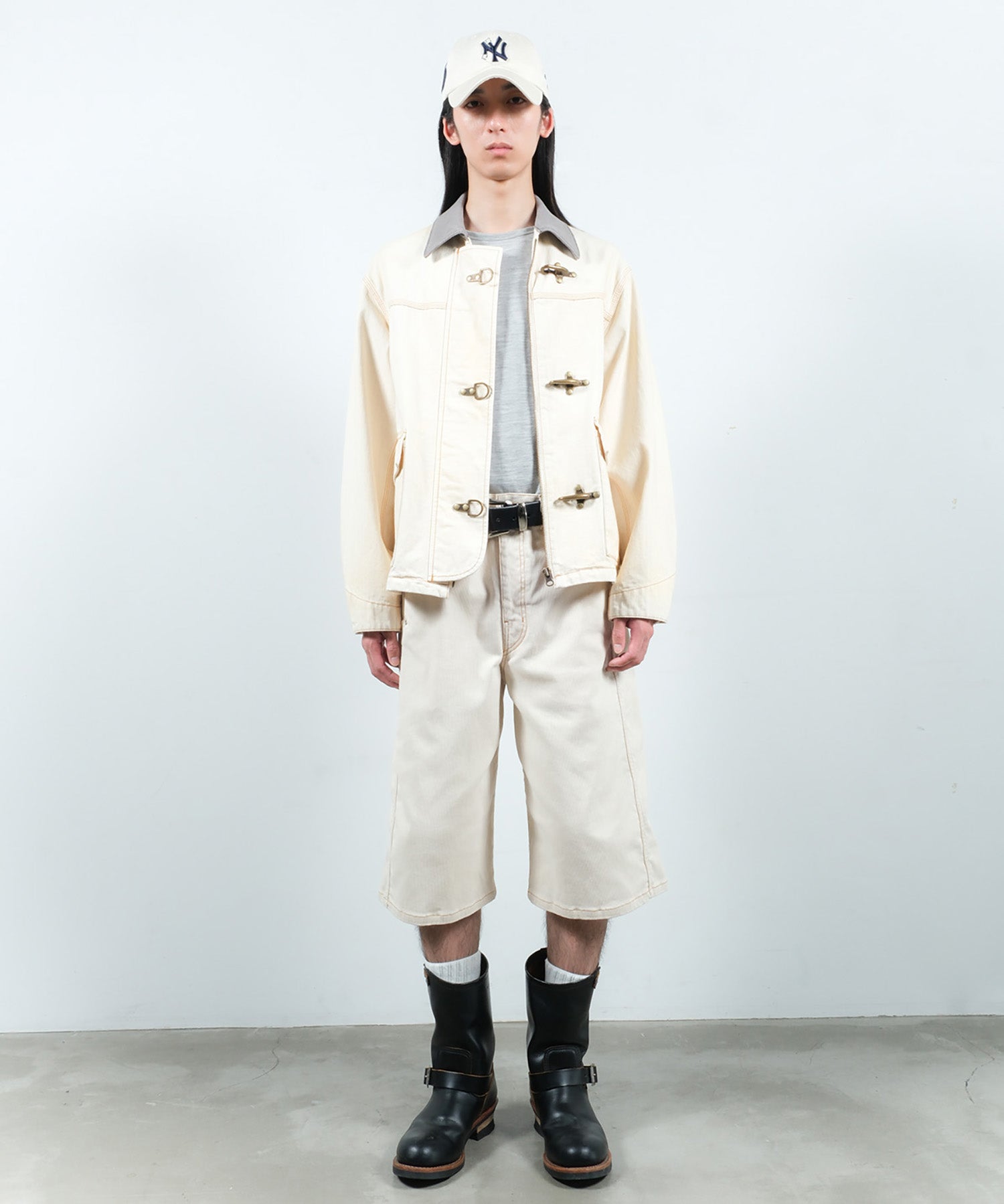 コンパクトの丈感、ワイドシルエットのパンツと相性は抜群。