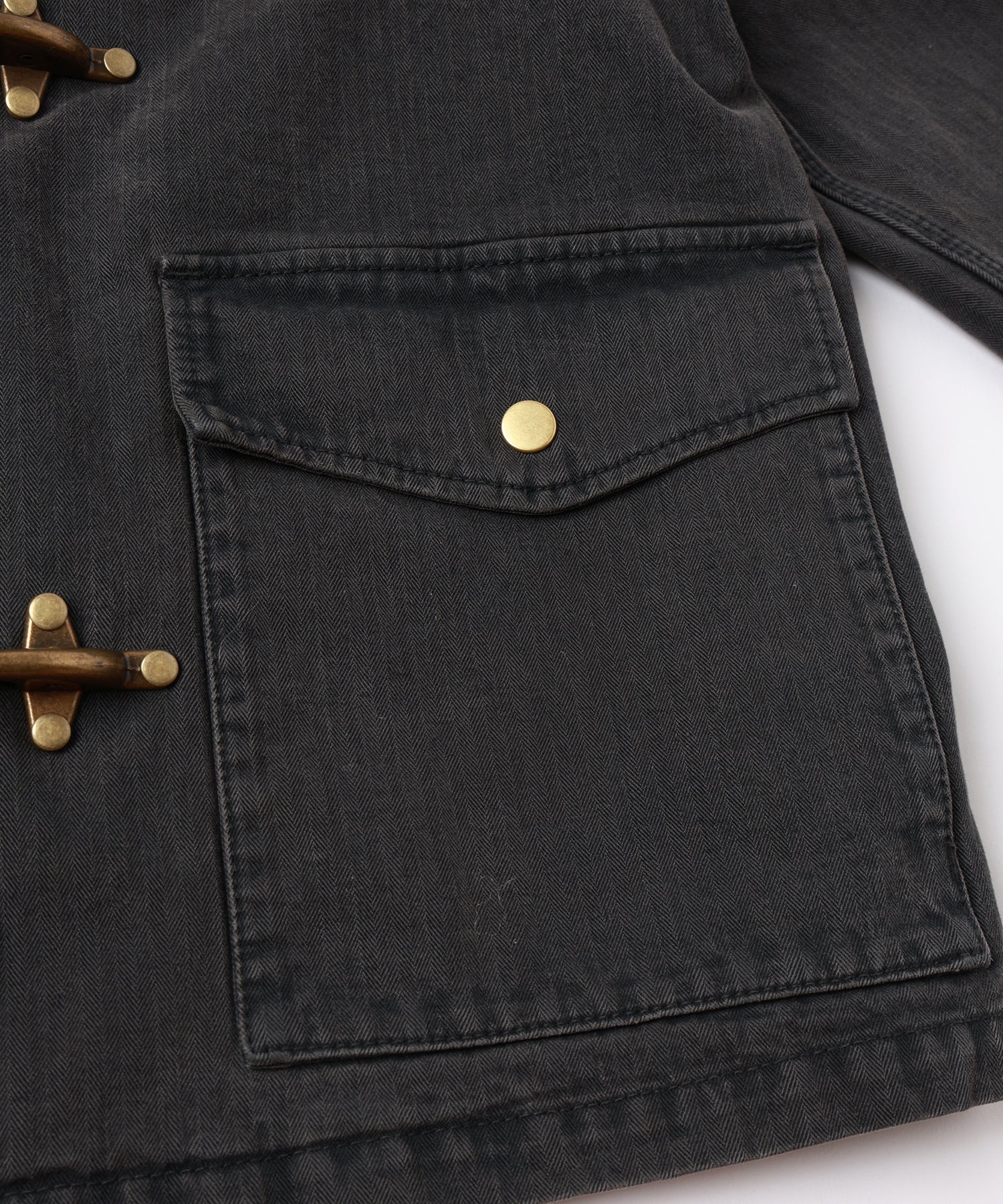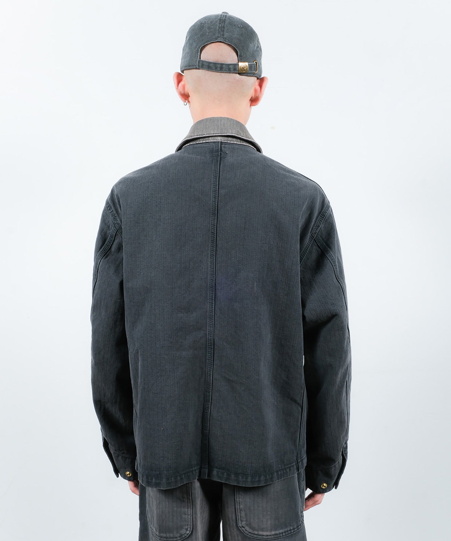 ジャストなサイズ感のジャケットとなっており、フロントには玉縁ポケットを配しております。