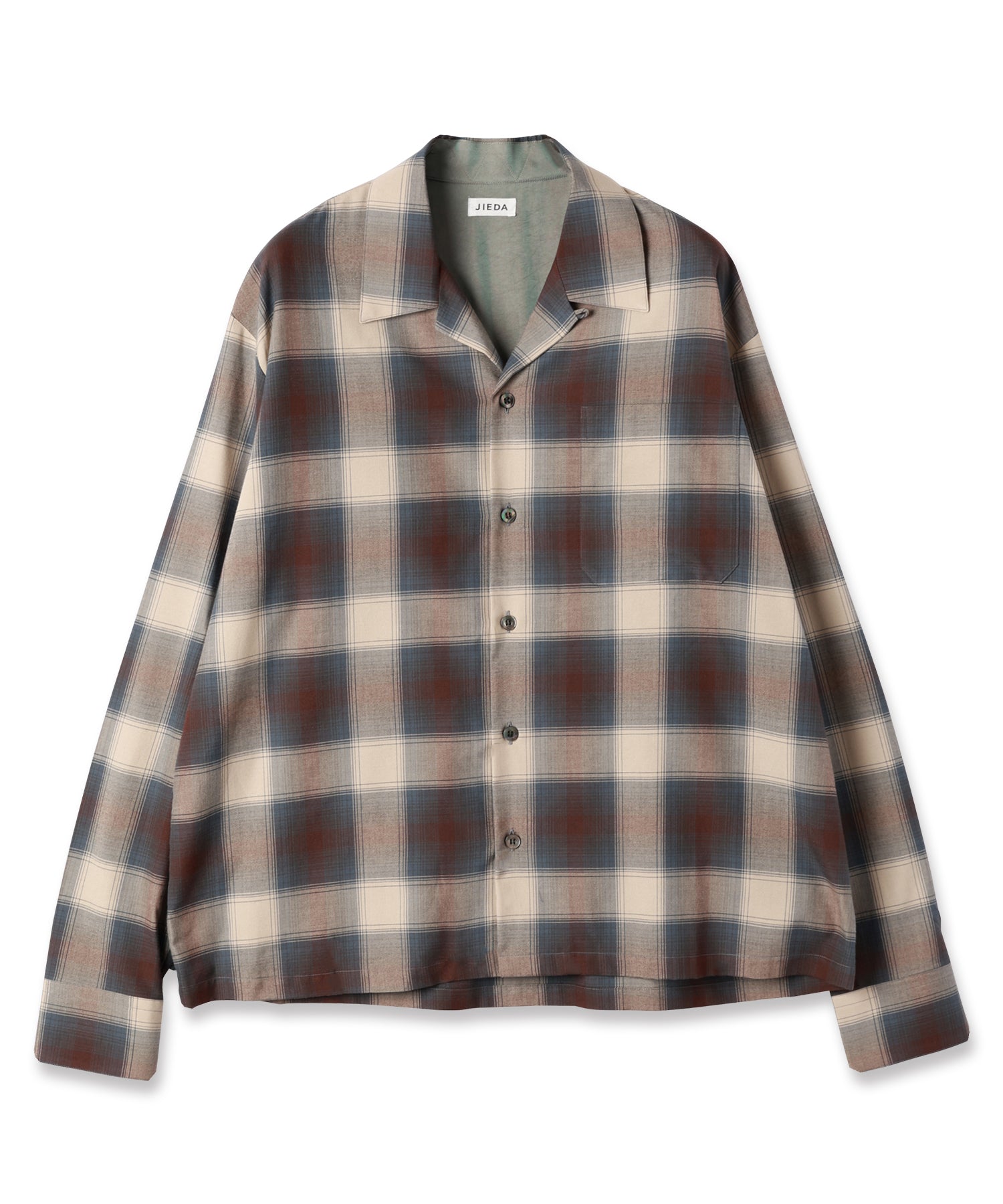 ステッチワークが目を引くオープンカラーシャツ。襟元のボタンで通常のシャツの様にも着れます。