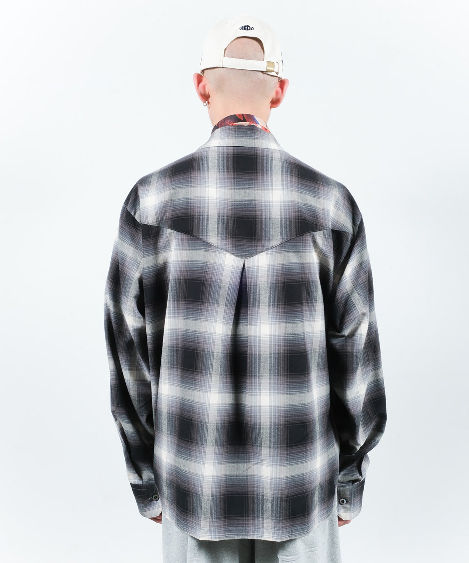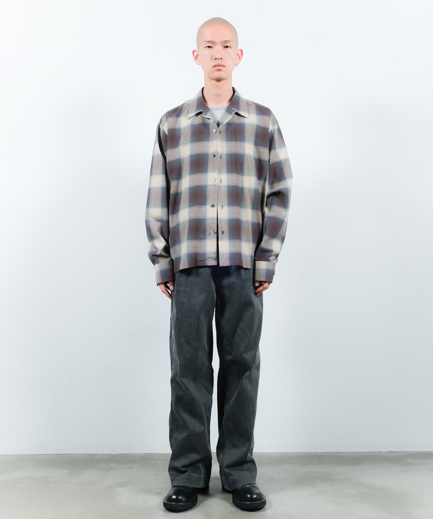 フロントとバックのハンドステッチがアシンメトリーデザインとなっており、ドレープ感のあるシャツとなっています。