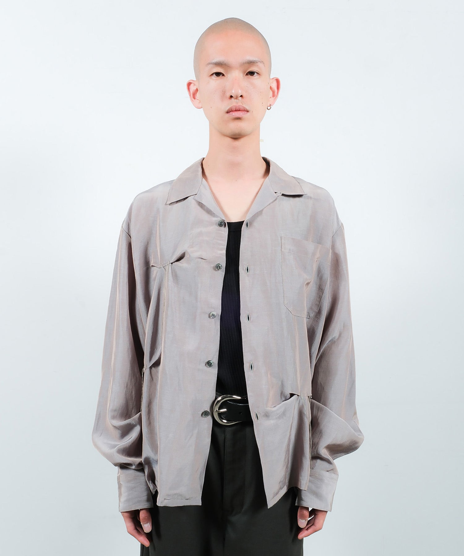 フロントとバックのハンドステッチがアシンメトリーデザインとなっており、ドレープ感のあるシャツとなっています。