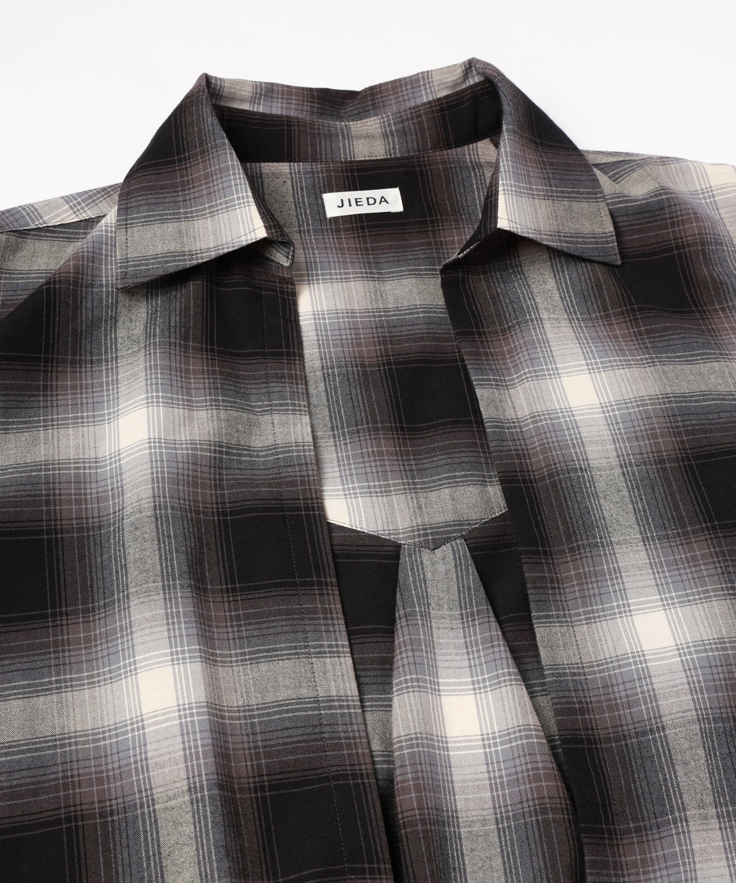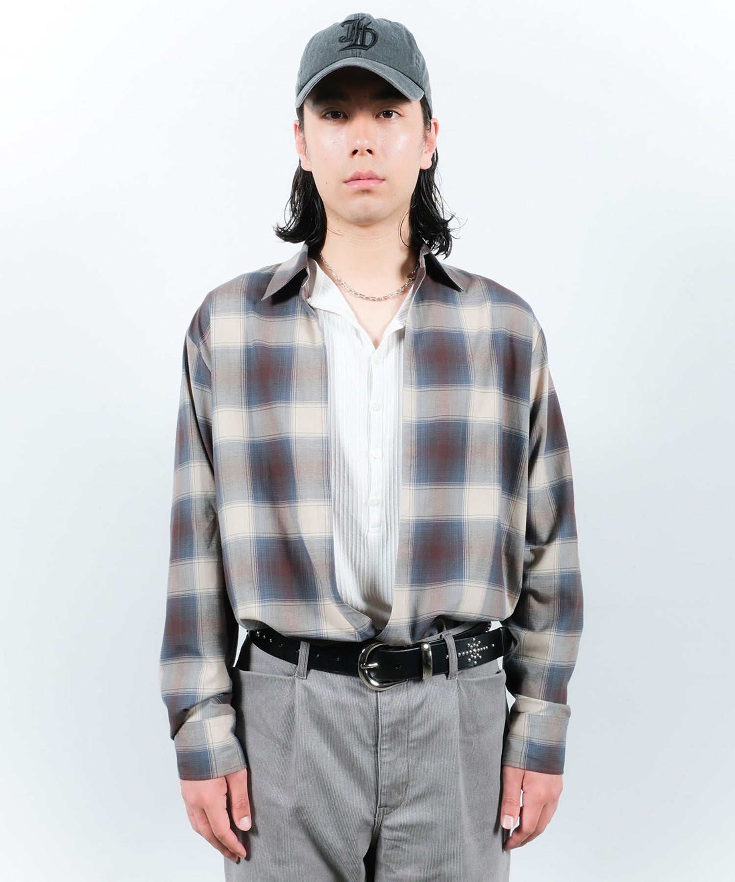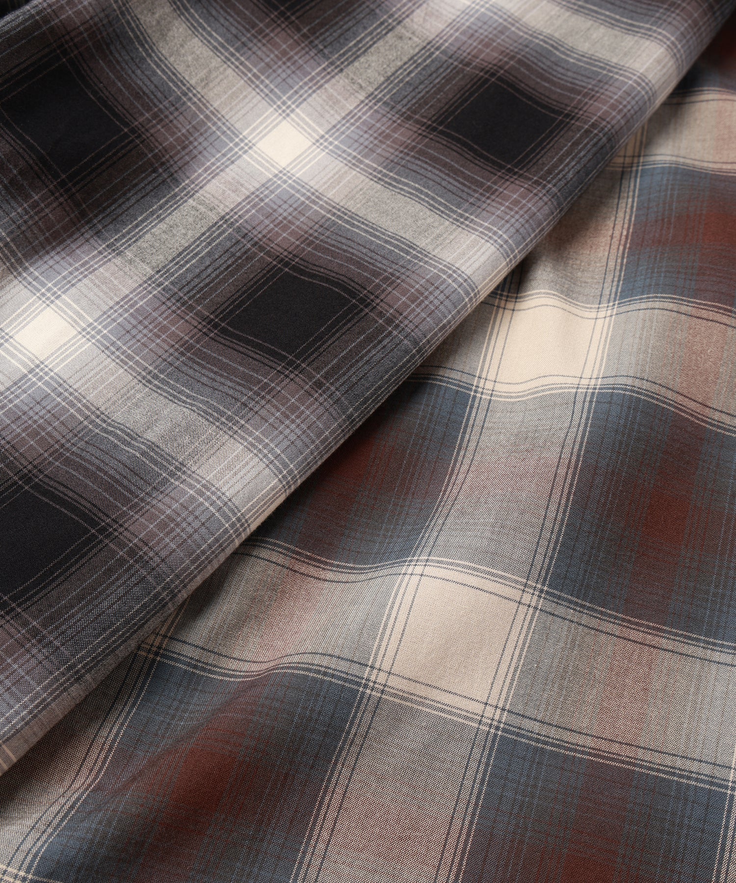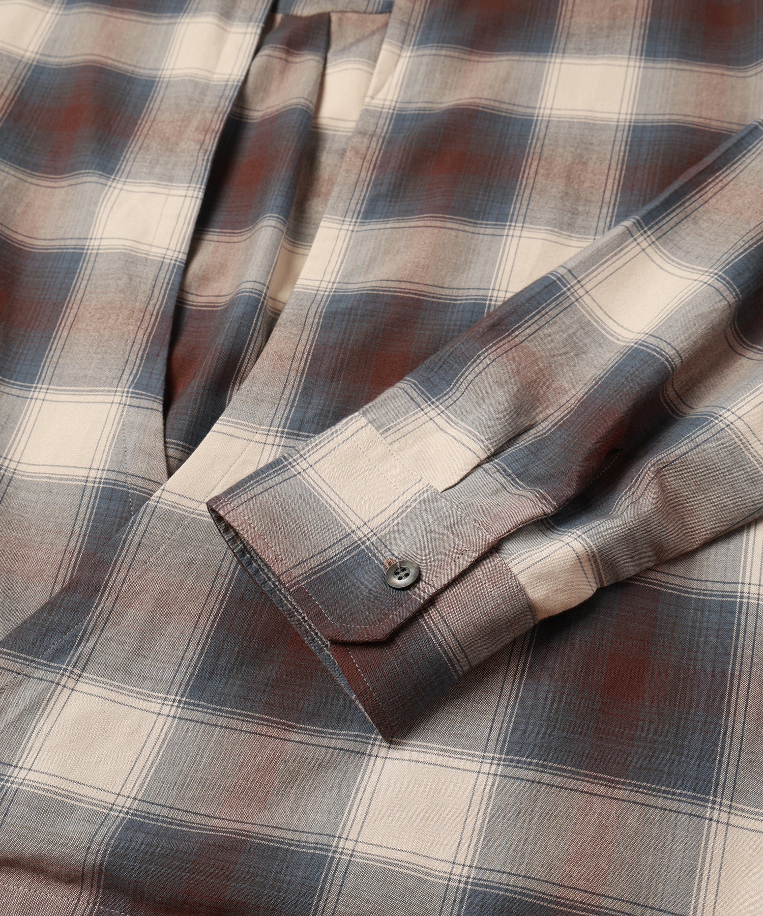 オリジナルのオンブレチェック生地を使用したスキッパーシャツ。