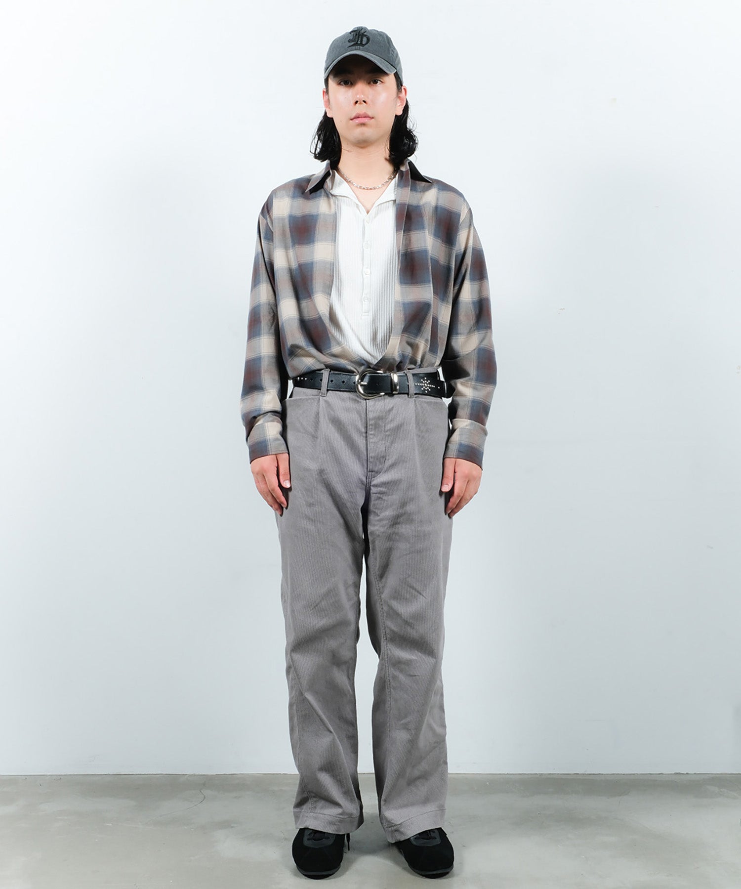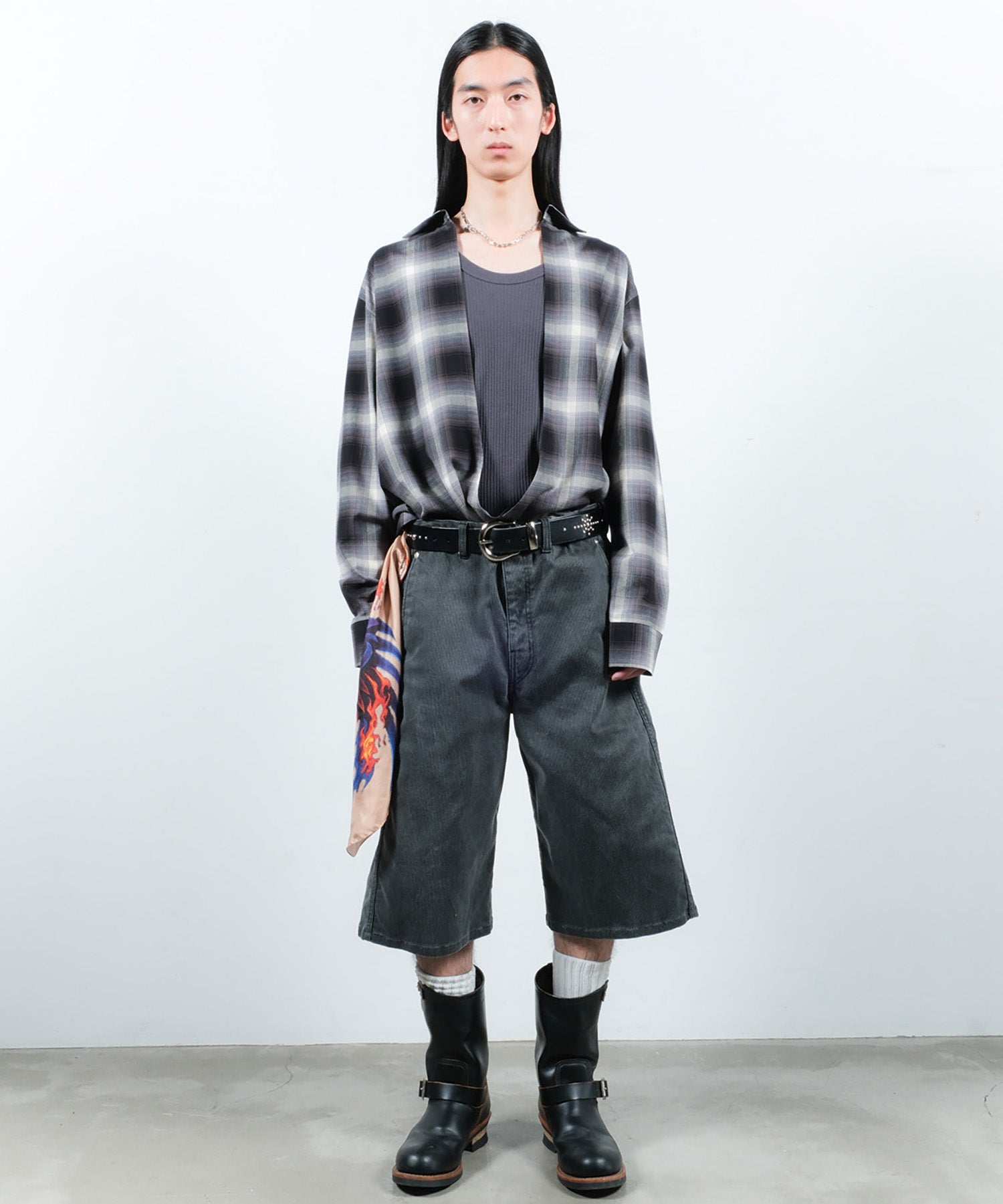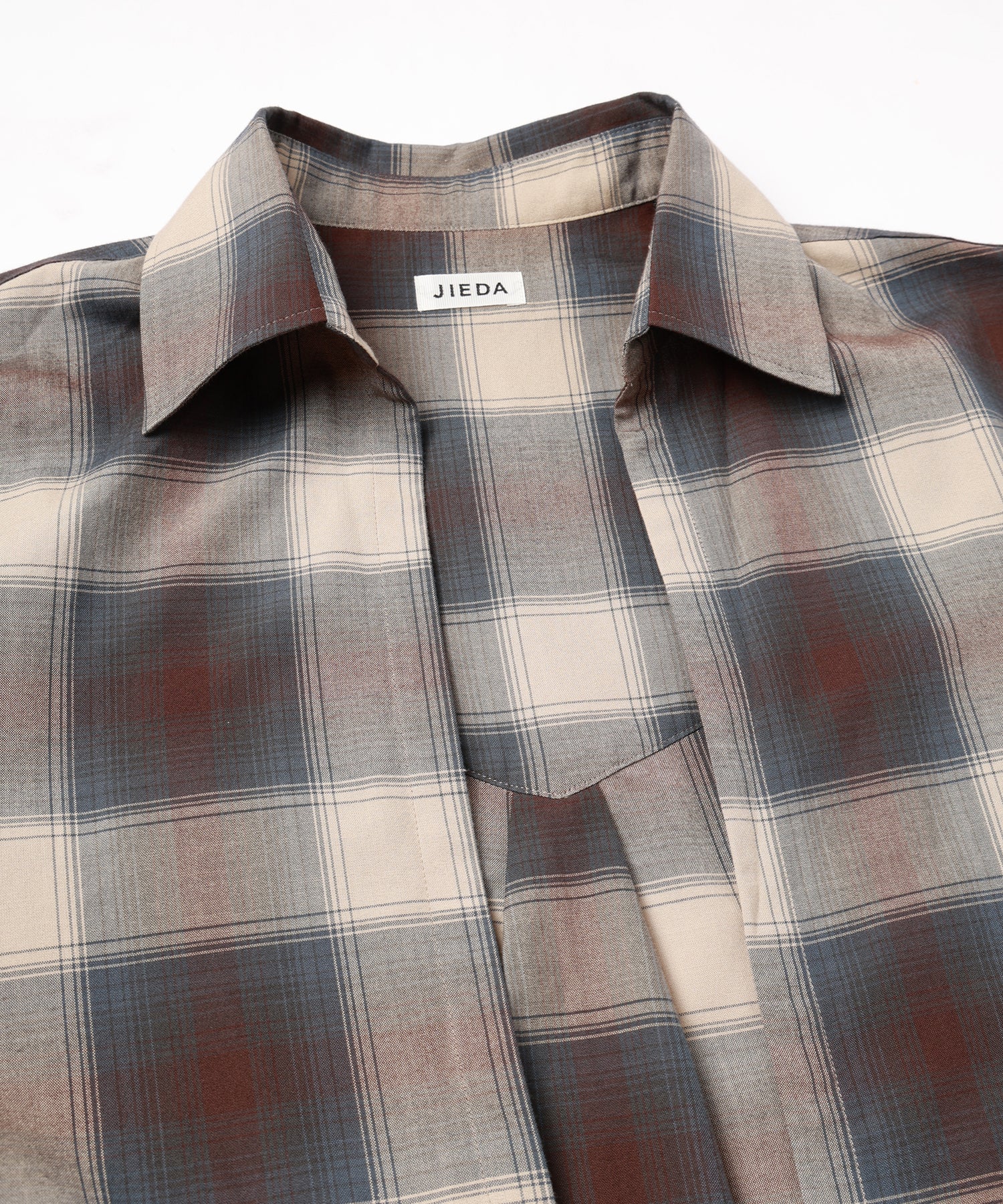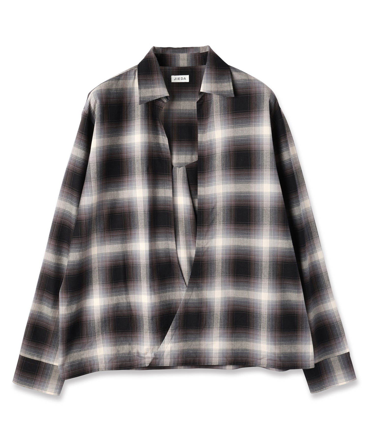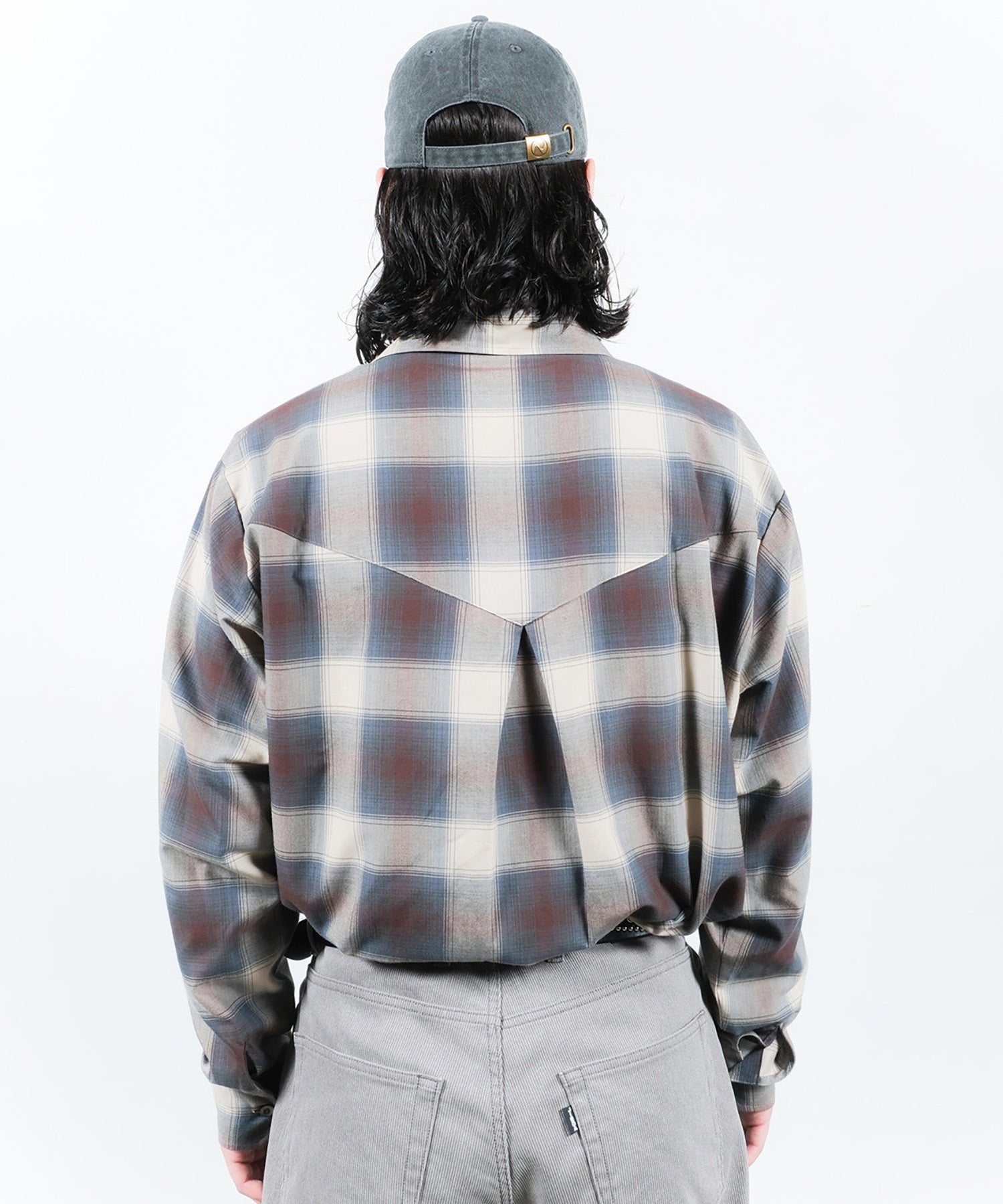 オリジナルのオンブレチェック生地を使用したスキッパーシャツ。
