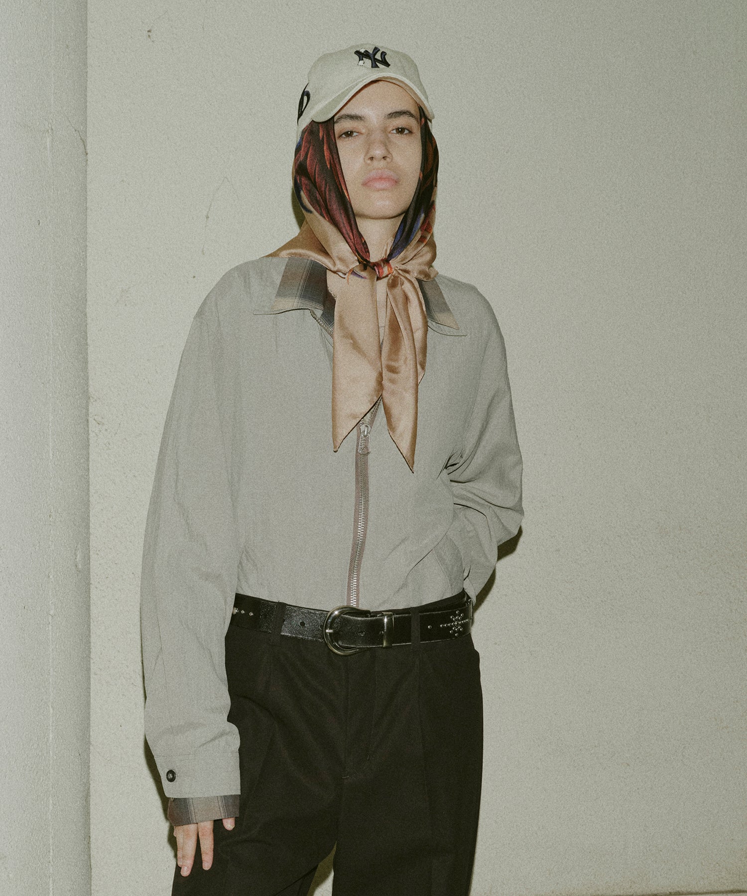 フロント部分をジップの前あきにすることで、モダンな印象に仕上げました。
