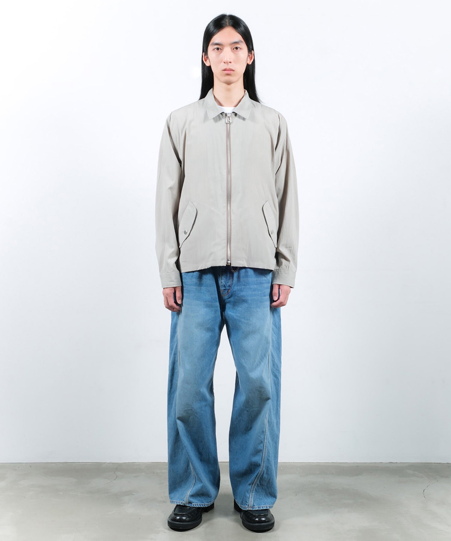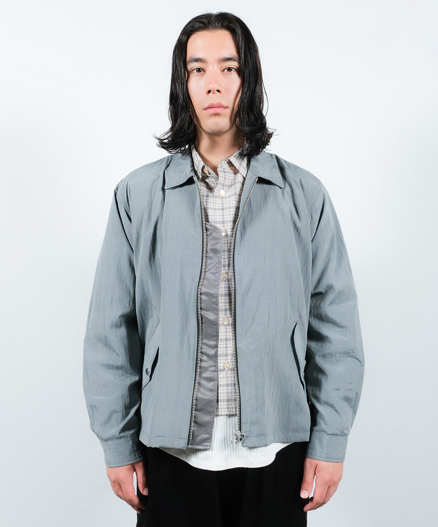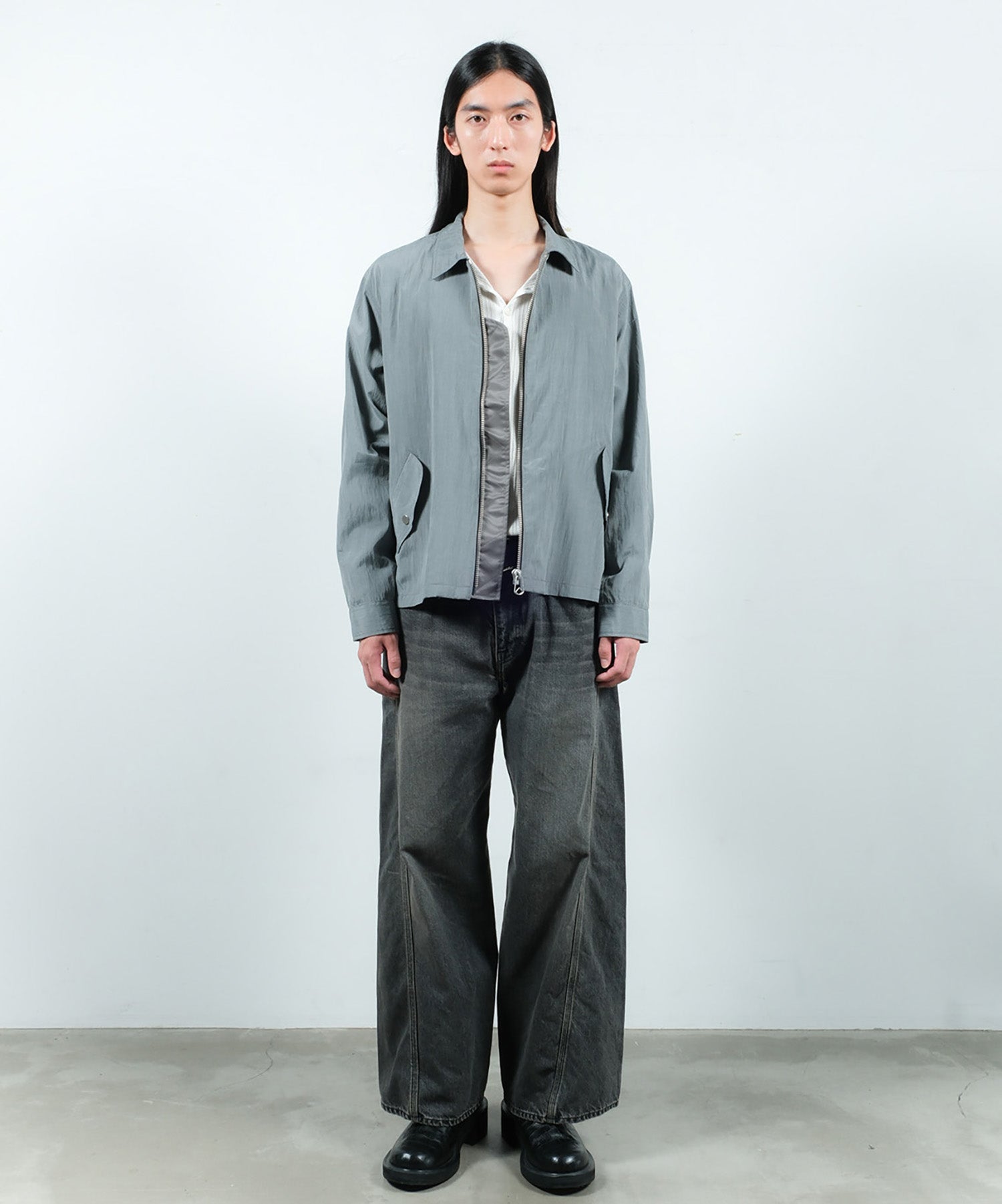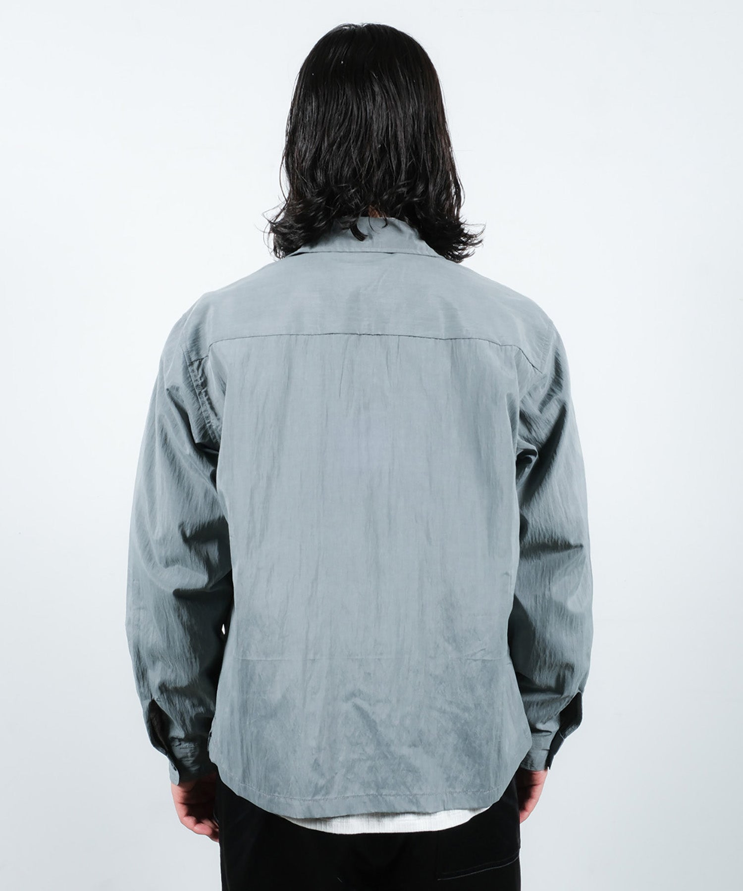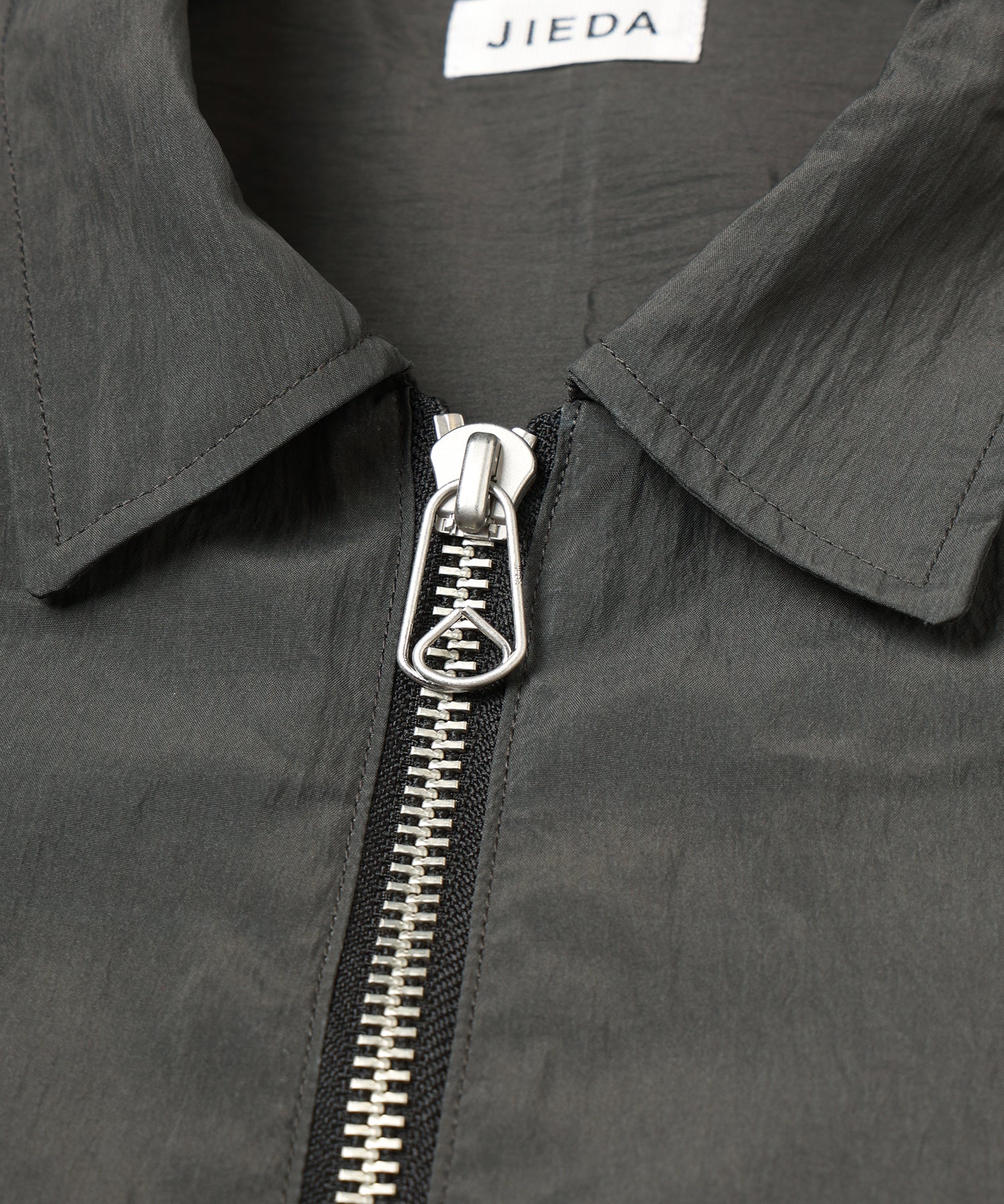 オリジナルの顔料コーティング生地を使用した、ジップシャツ。
