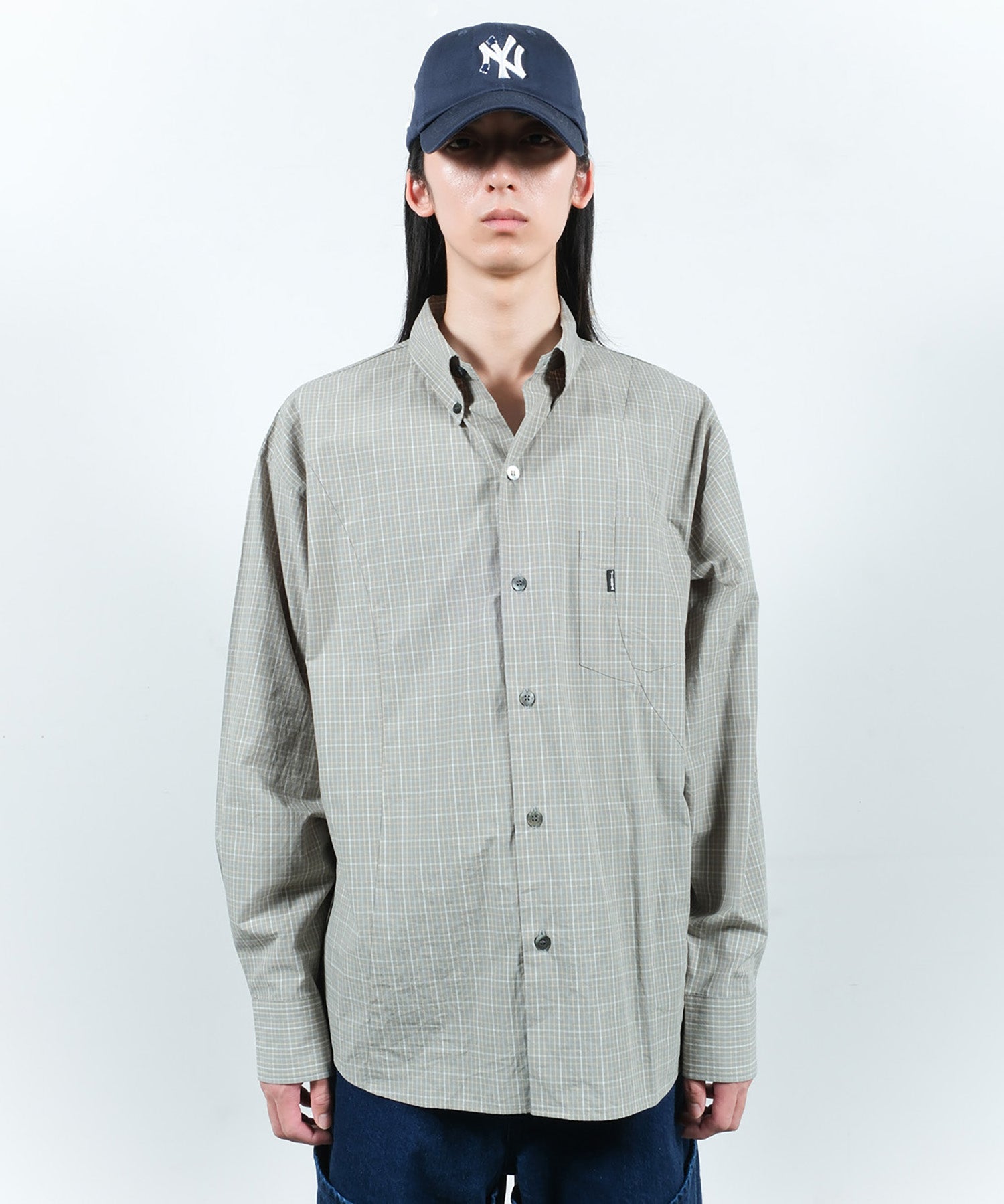 フロントのカッティングが特徴的なチェックボタンダウンシャツ。