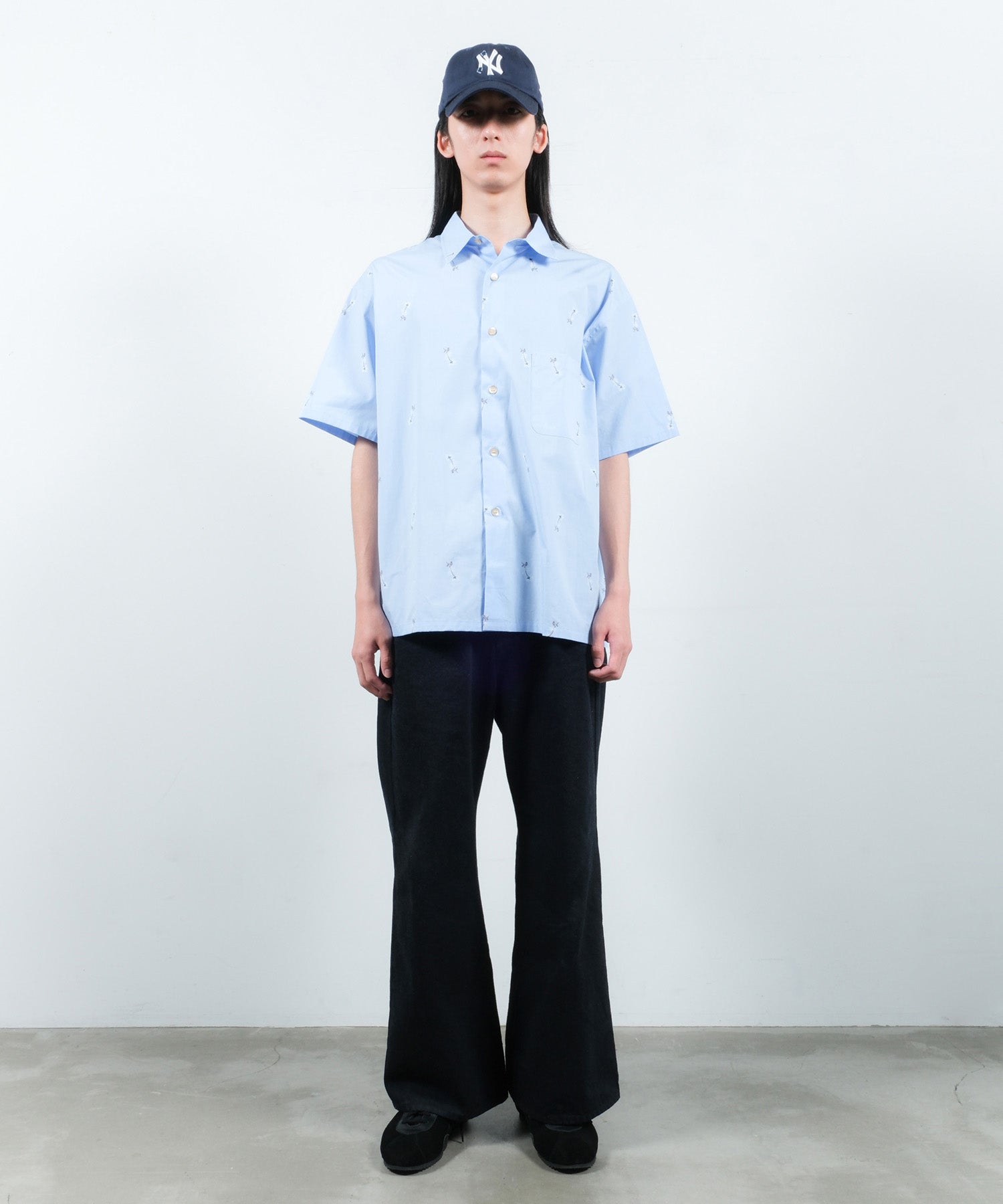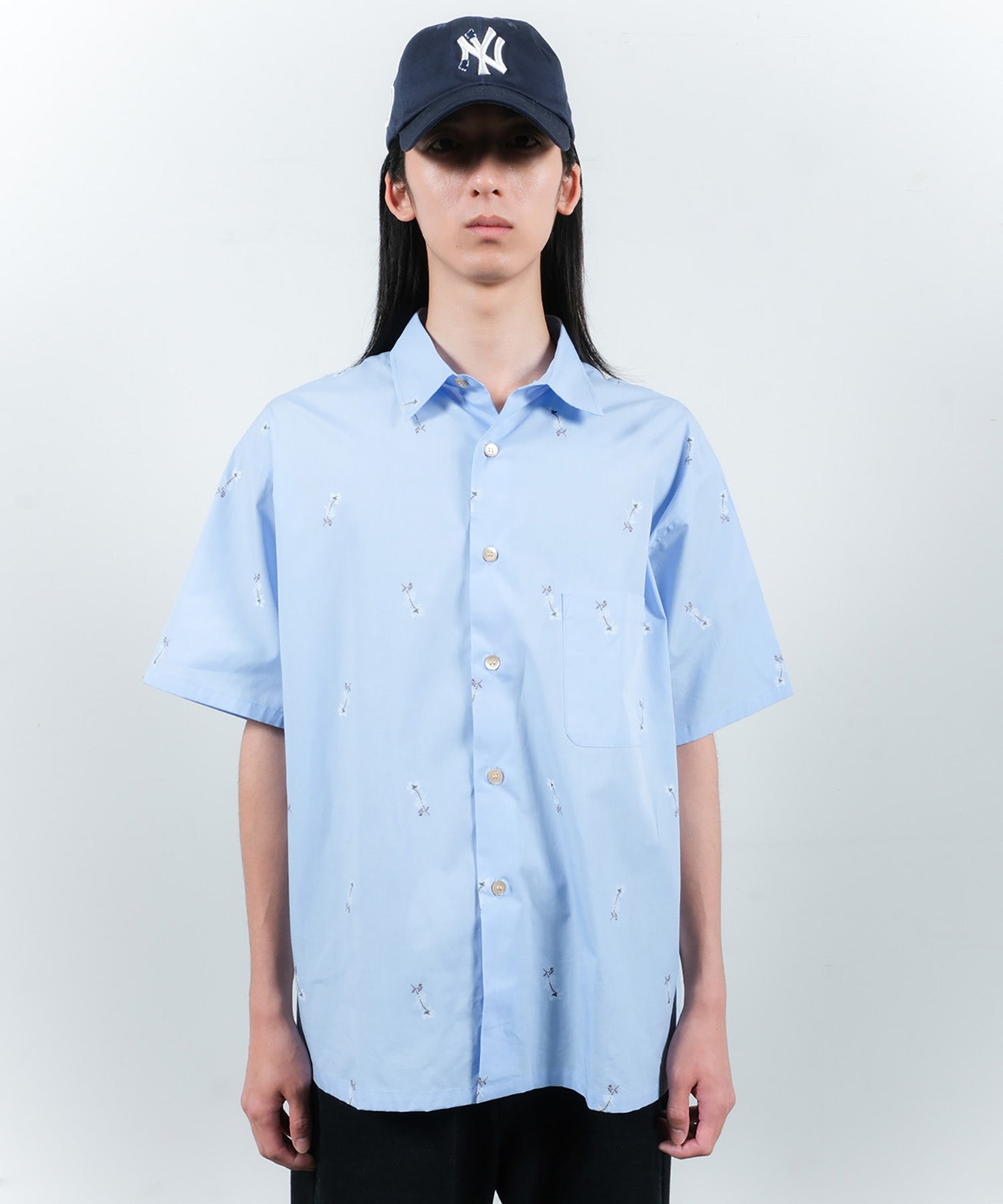 アイコニックな花柄の刺繍を施したショートスリーブシャツ。