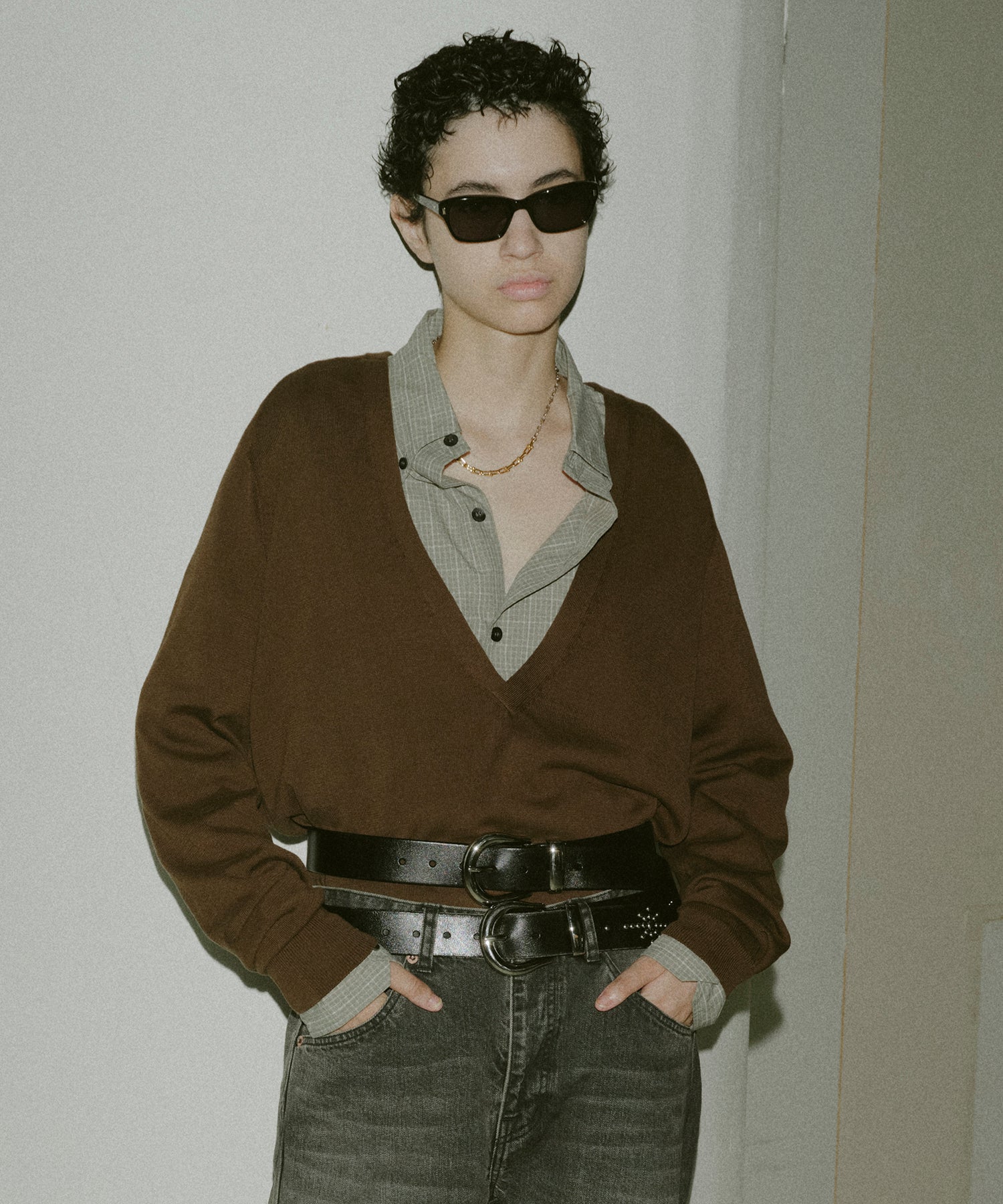 ドロップショルダーで身頃には程よくゆとりをもたせ、首元がすっきり見えるよう深めのVネックに設計し、