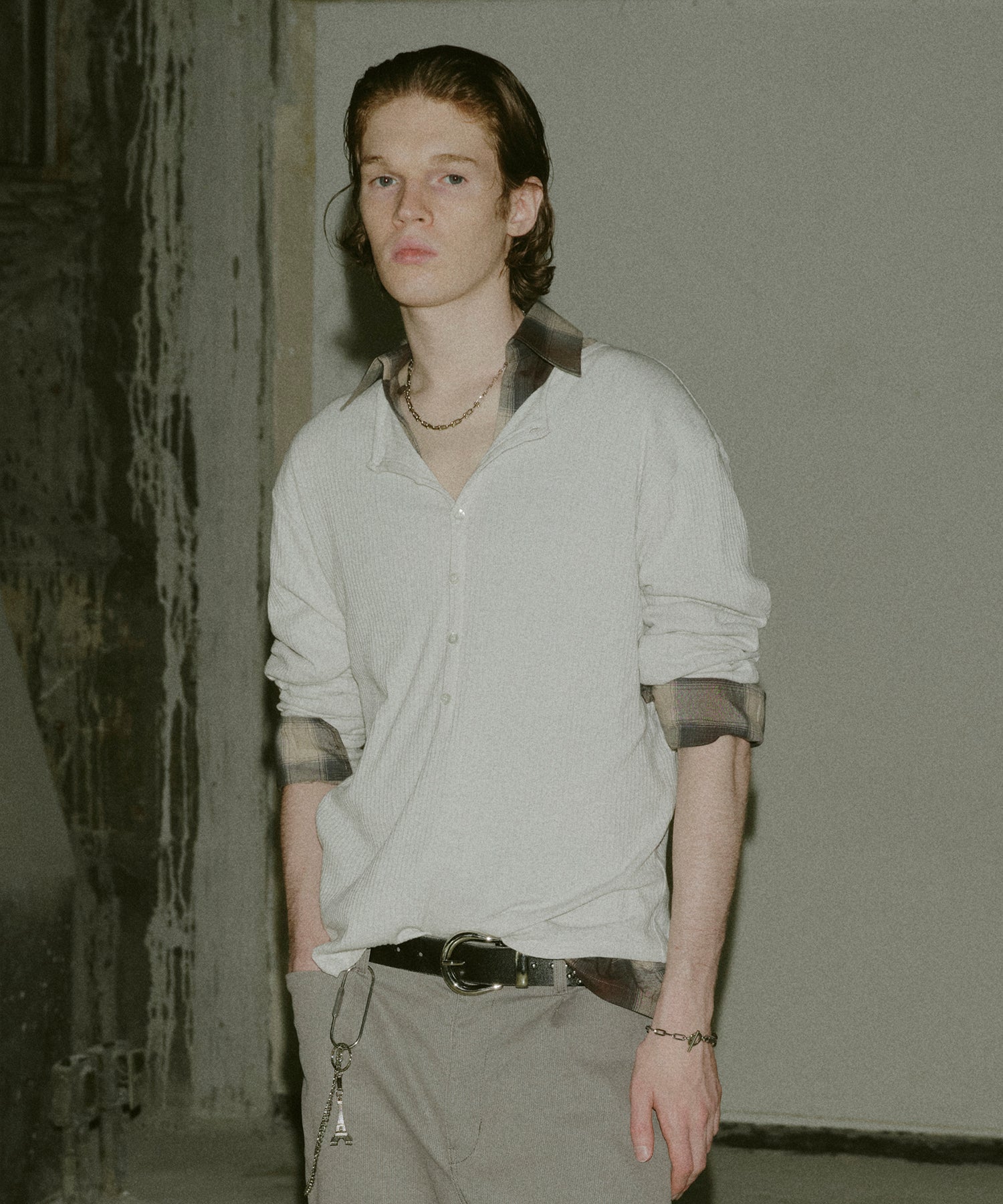 素材にはリブ素材を採用。柔らかい肌触りが特徴となっており、インナーや一枚で着用しても着回しのしやすいアイテムとす。