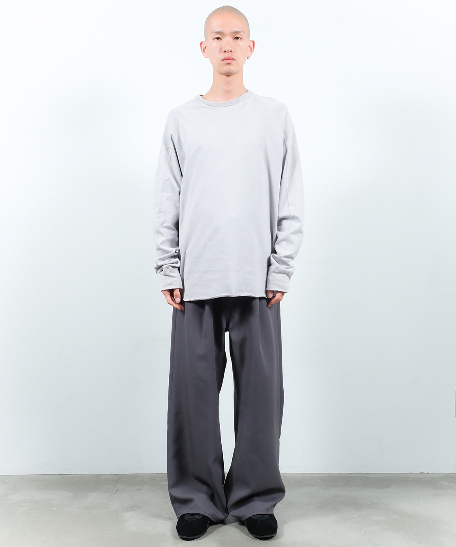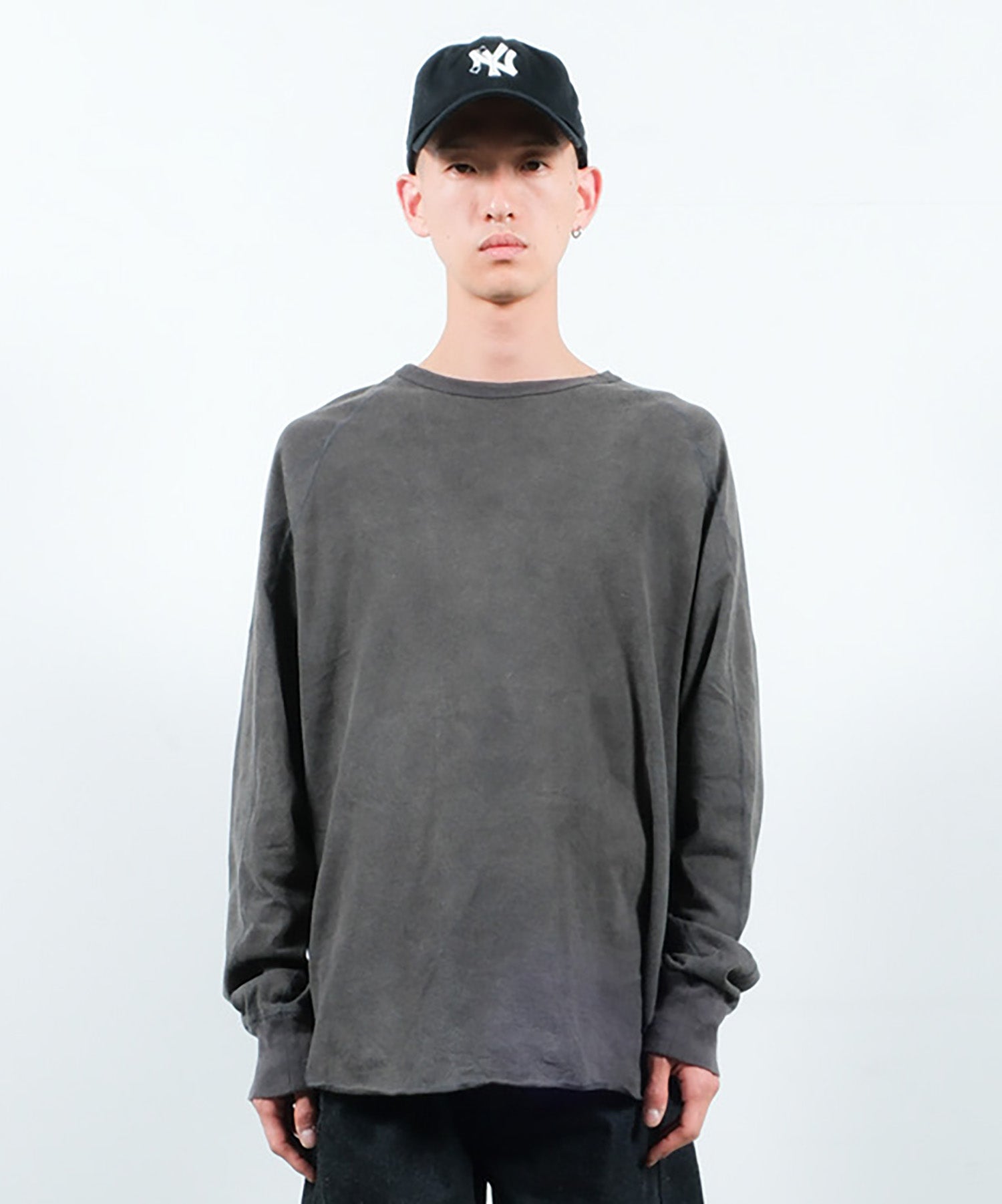 ラグランスリーブの袖に曲線的なカッティングを施し、程よくゆとりを持たせた、着合わせのしやすいアイテムとなっております。