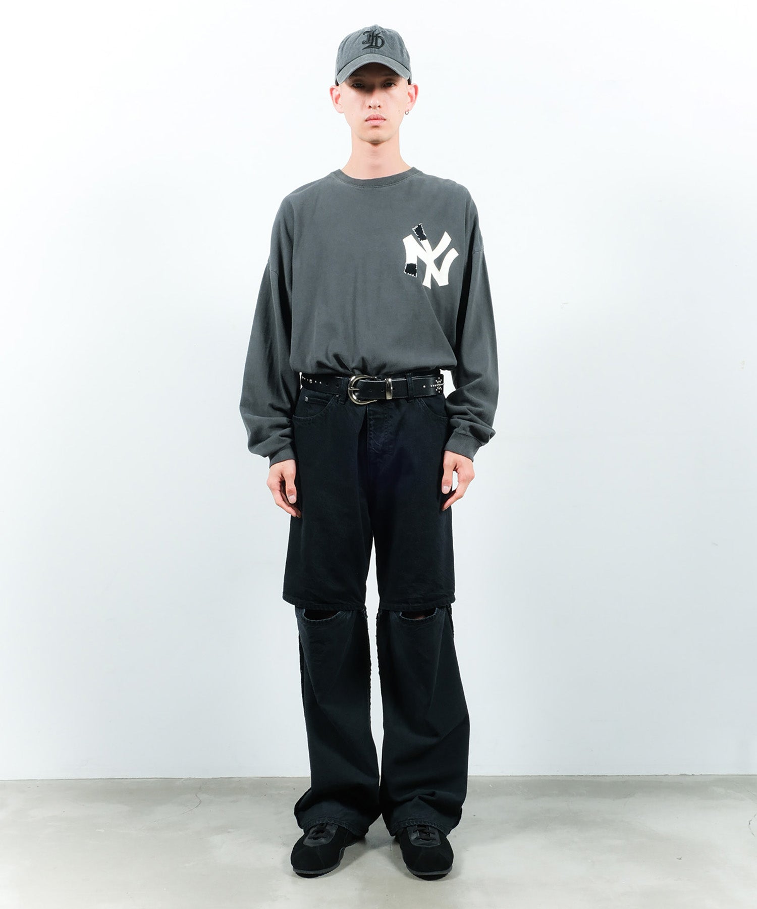 左胸に「NY」刺繍を施したピグメントロングスリーブTシャツ。