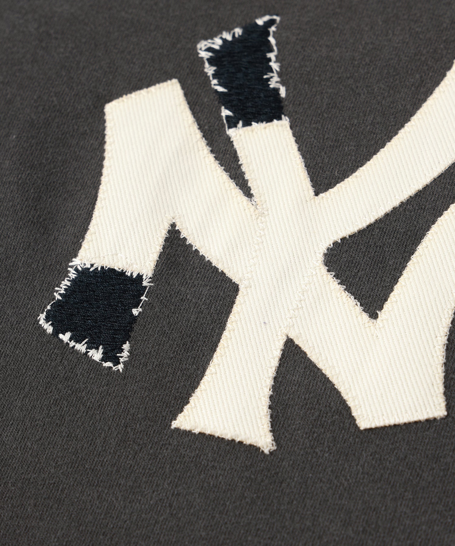 ヴィンテージらしさを表現するため、ヴィンテージアイテムなどで見られる文字の剥がれをワッペンと刺繍の技術で表現しております。