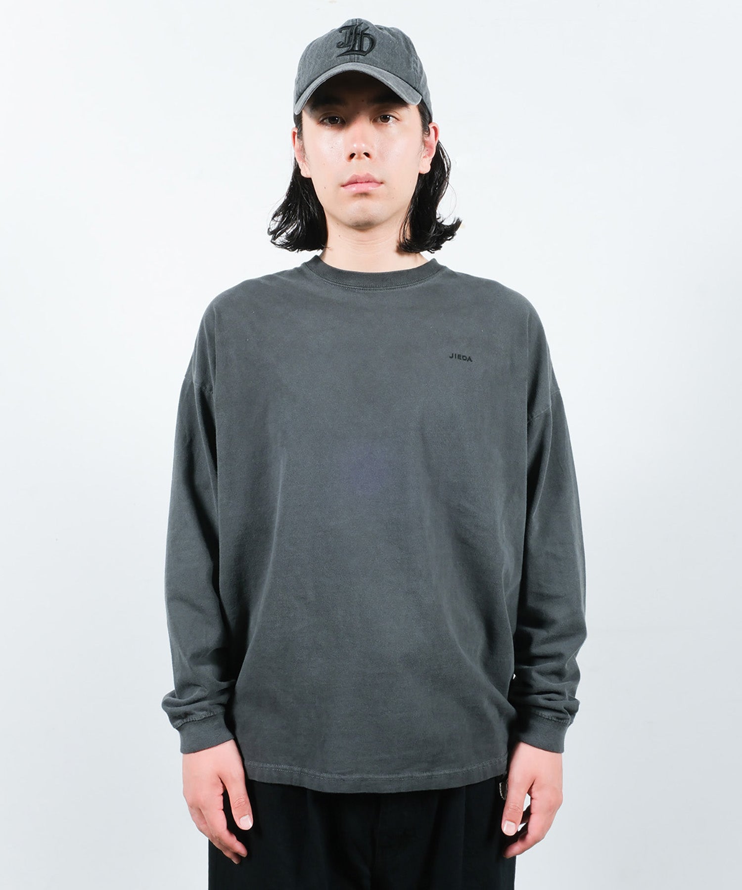 ブランドロゴ刺繍を施したピグメントロングスリーブTシャツ。