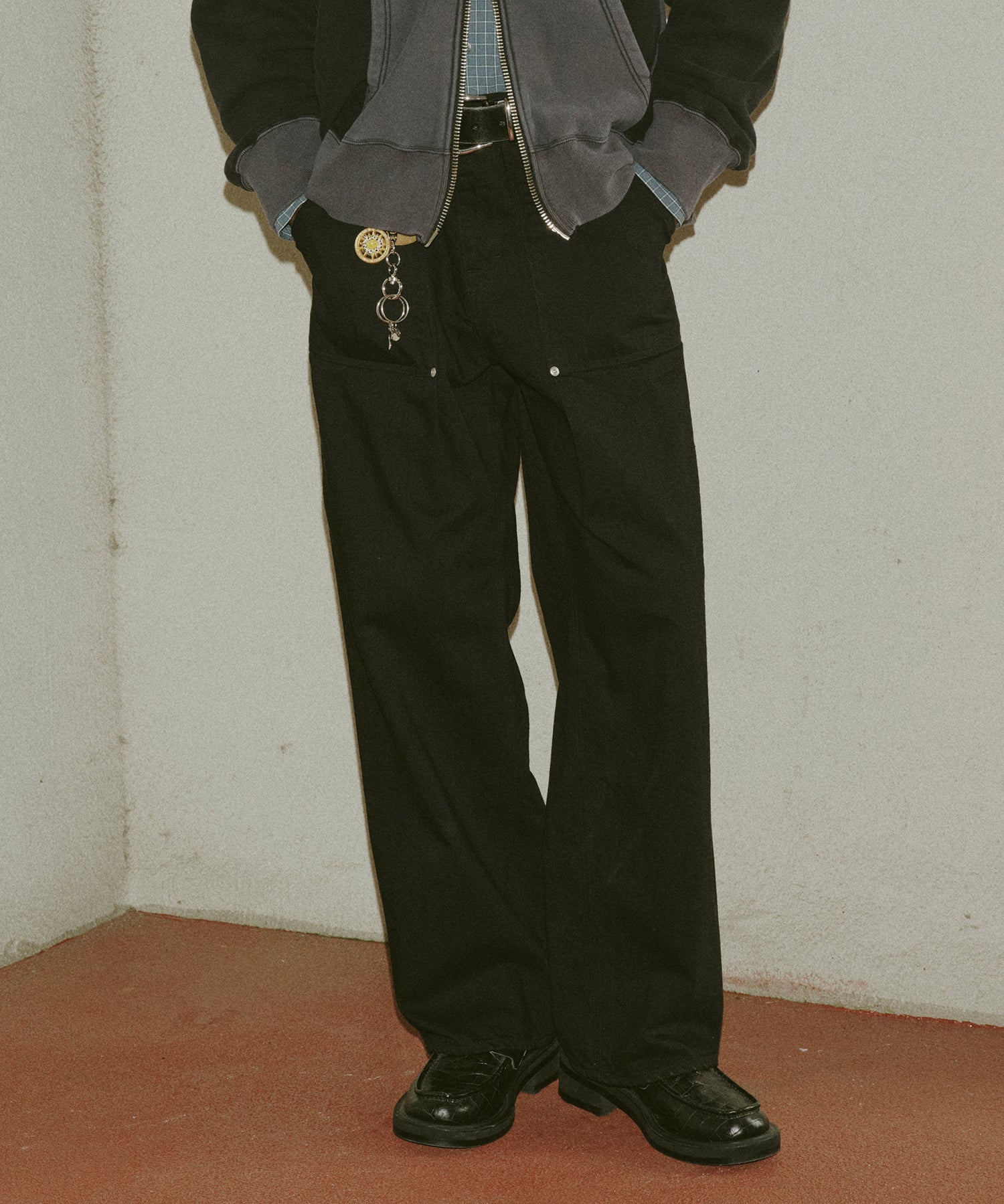 ワイドストレートのリラックスフィットシルエットとなっており、生地にはワンウォッシュ加工を施しております。