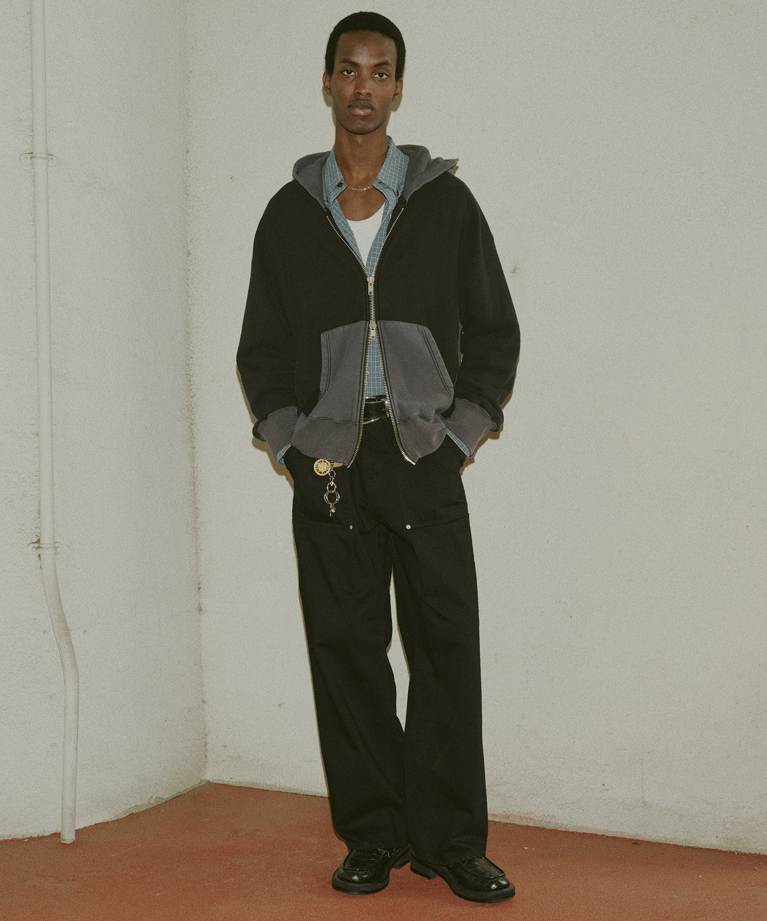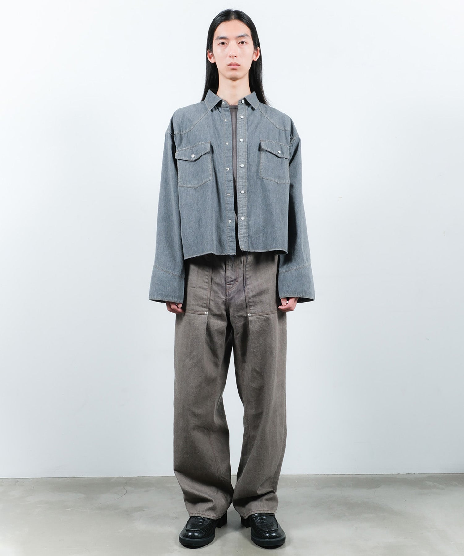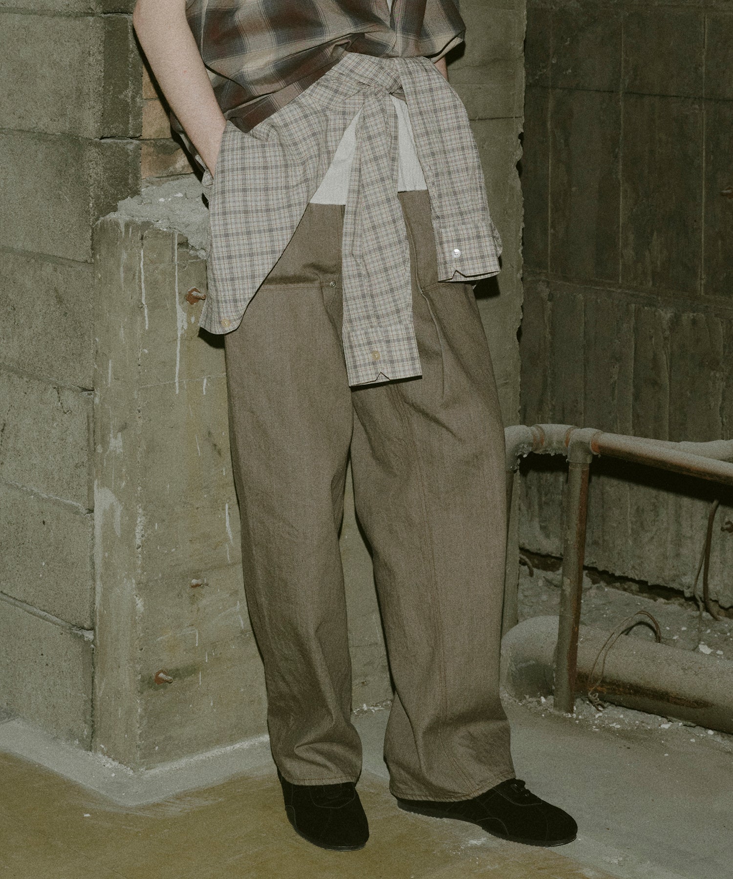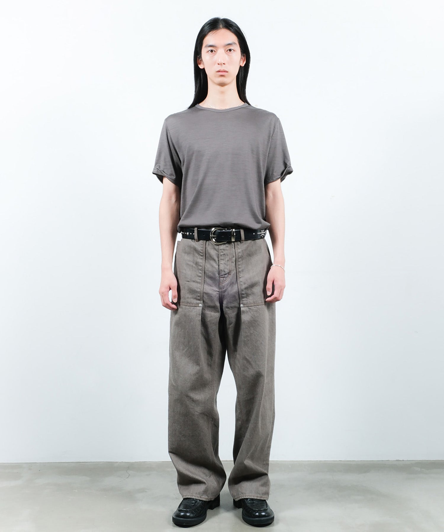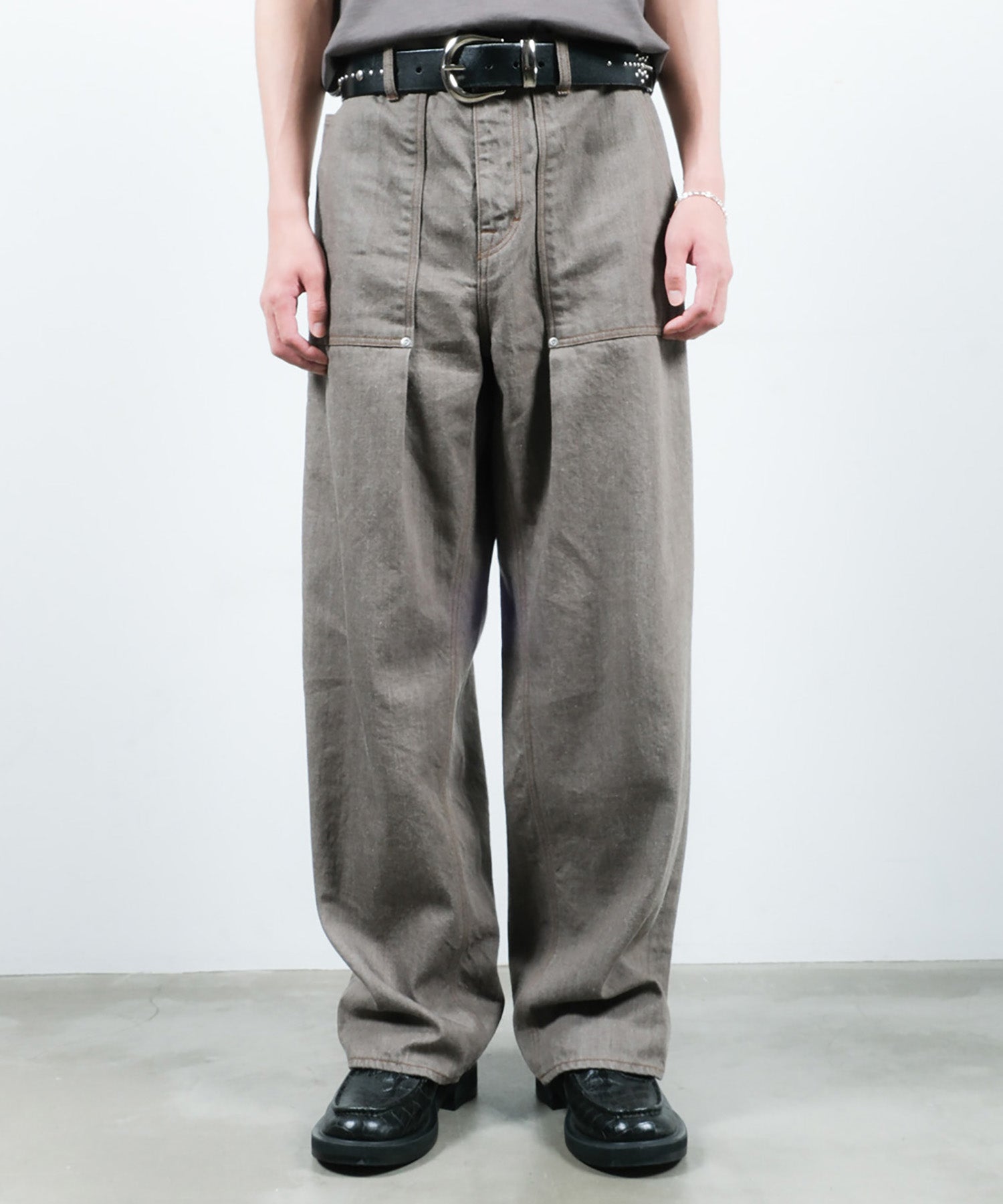 ワイドストレートのリラックスフィットシルエットとなっており、生地にはワンウォッシュ加工を施しております。
