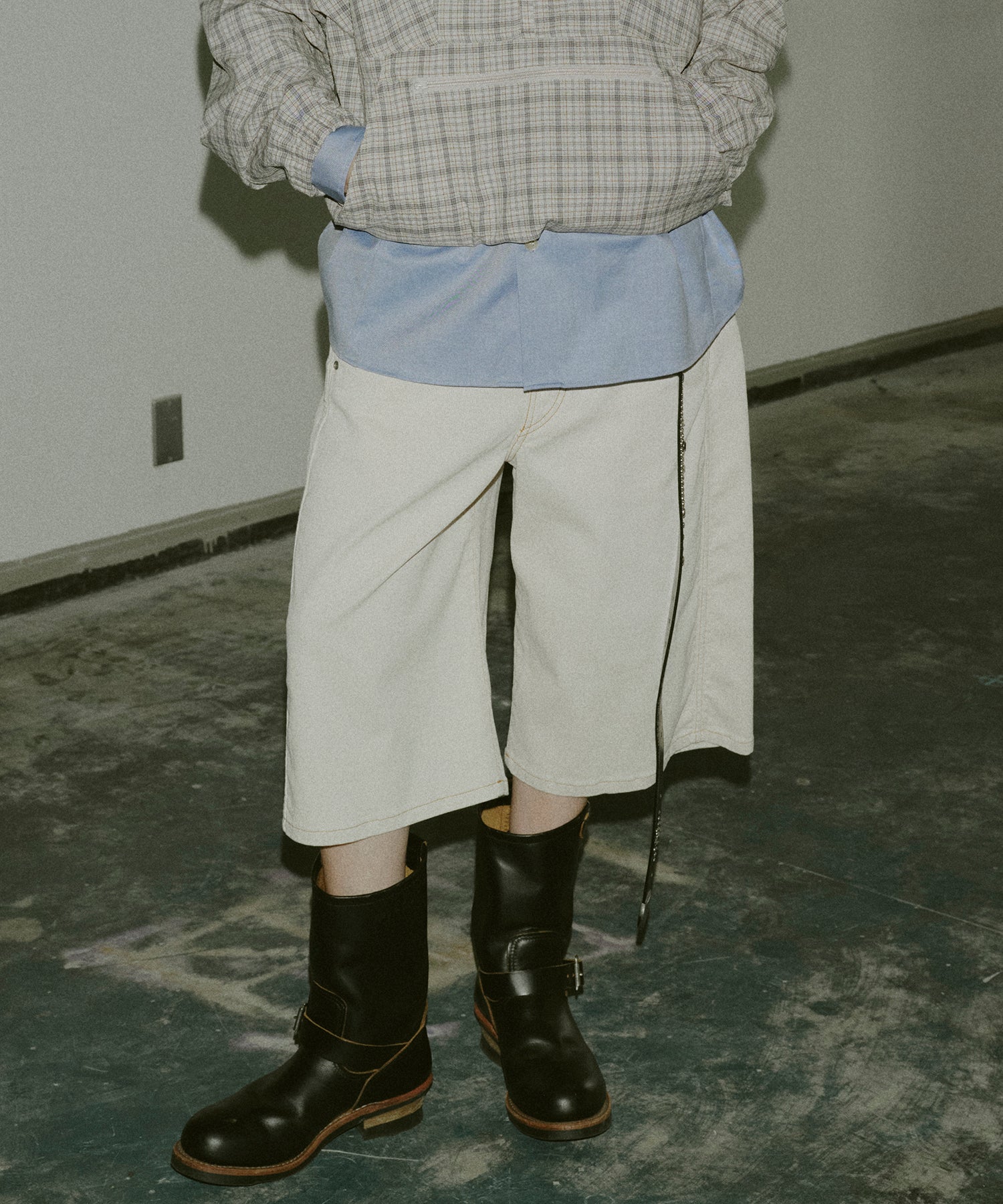 ワイドストレートカットのシルエットで、膝下丈のリラックスフィットが特徴です。