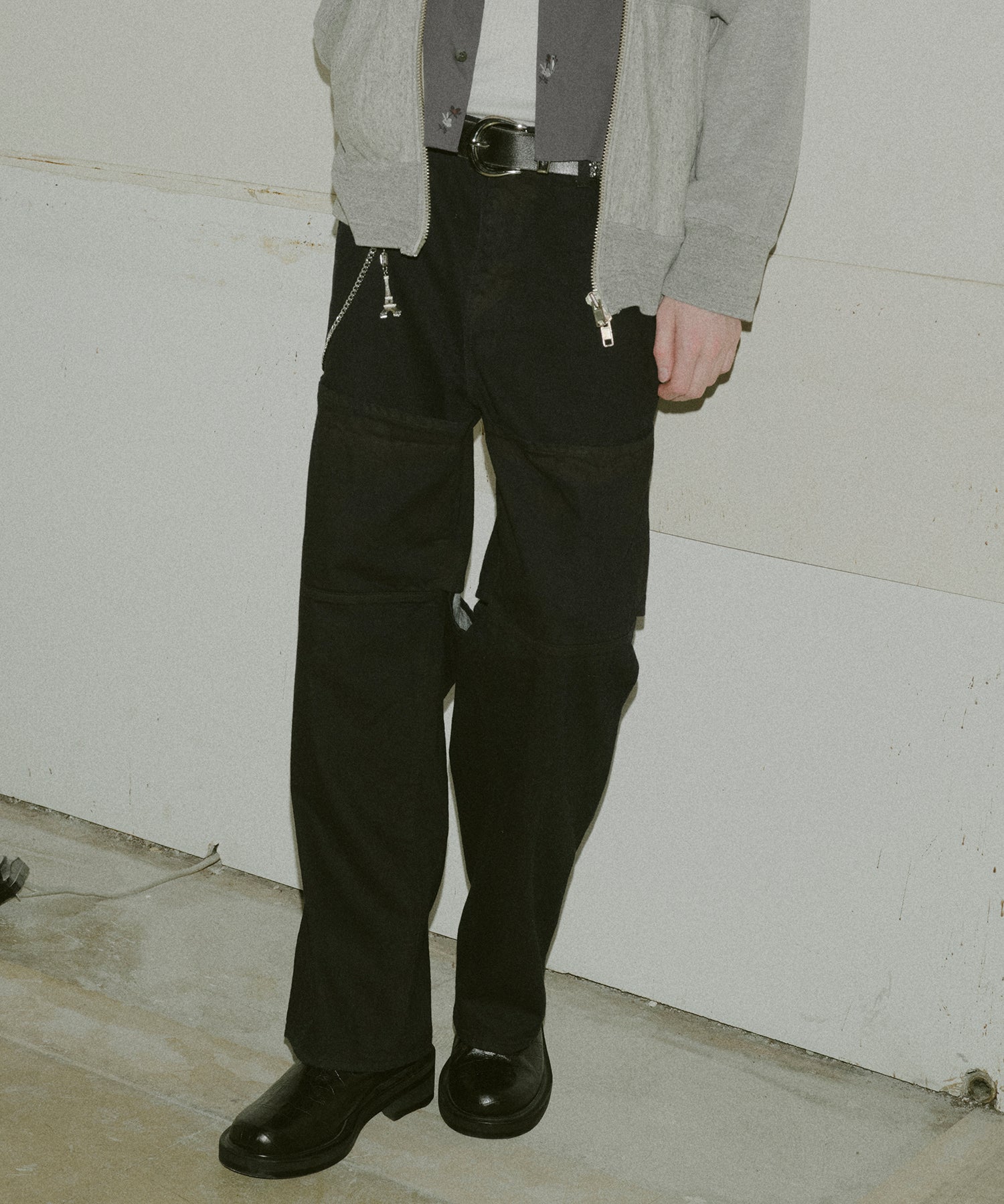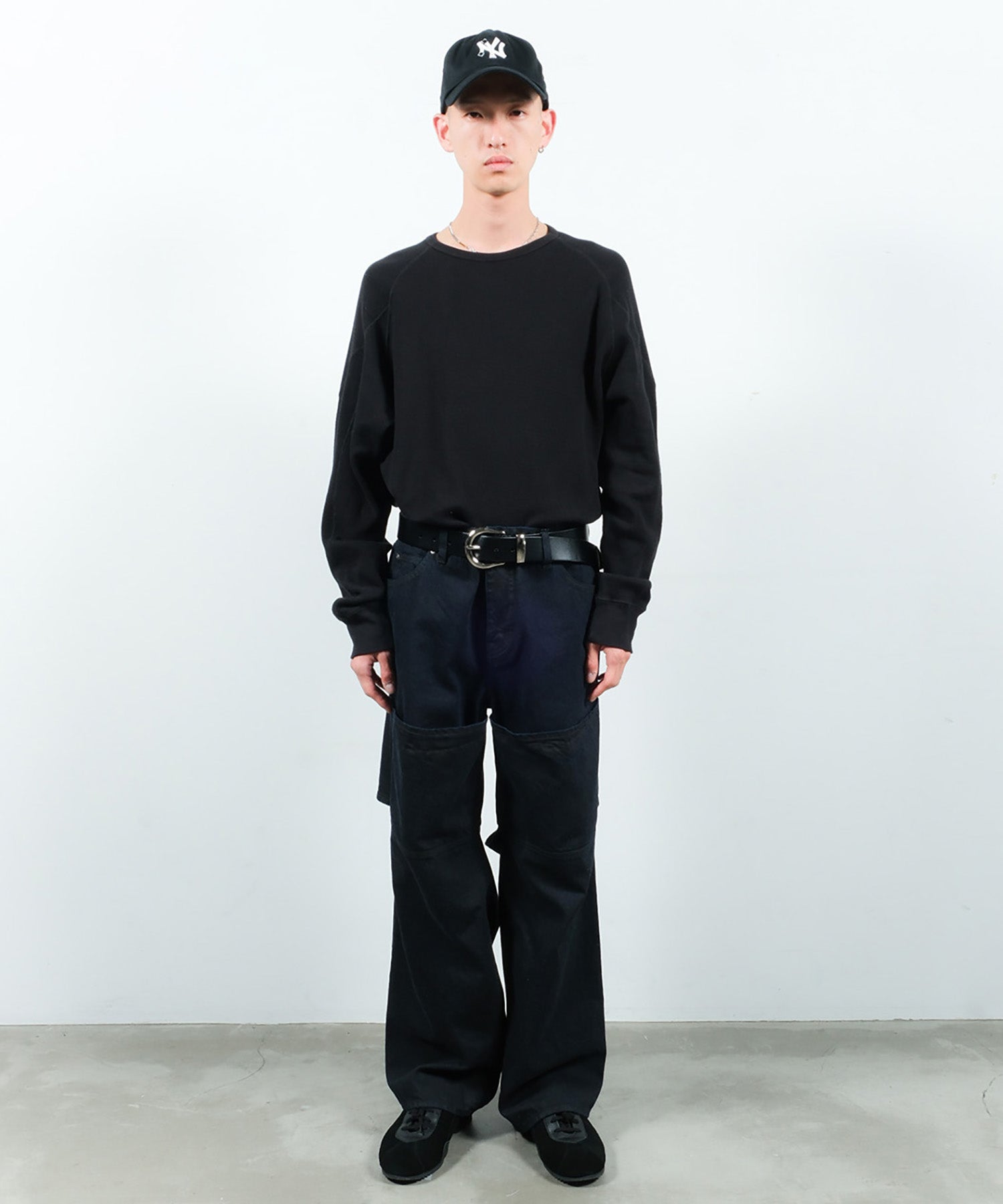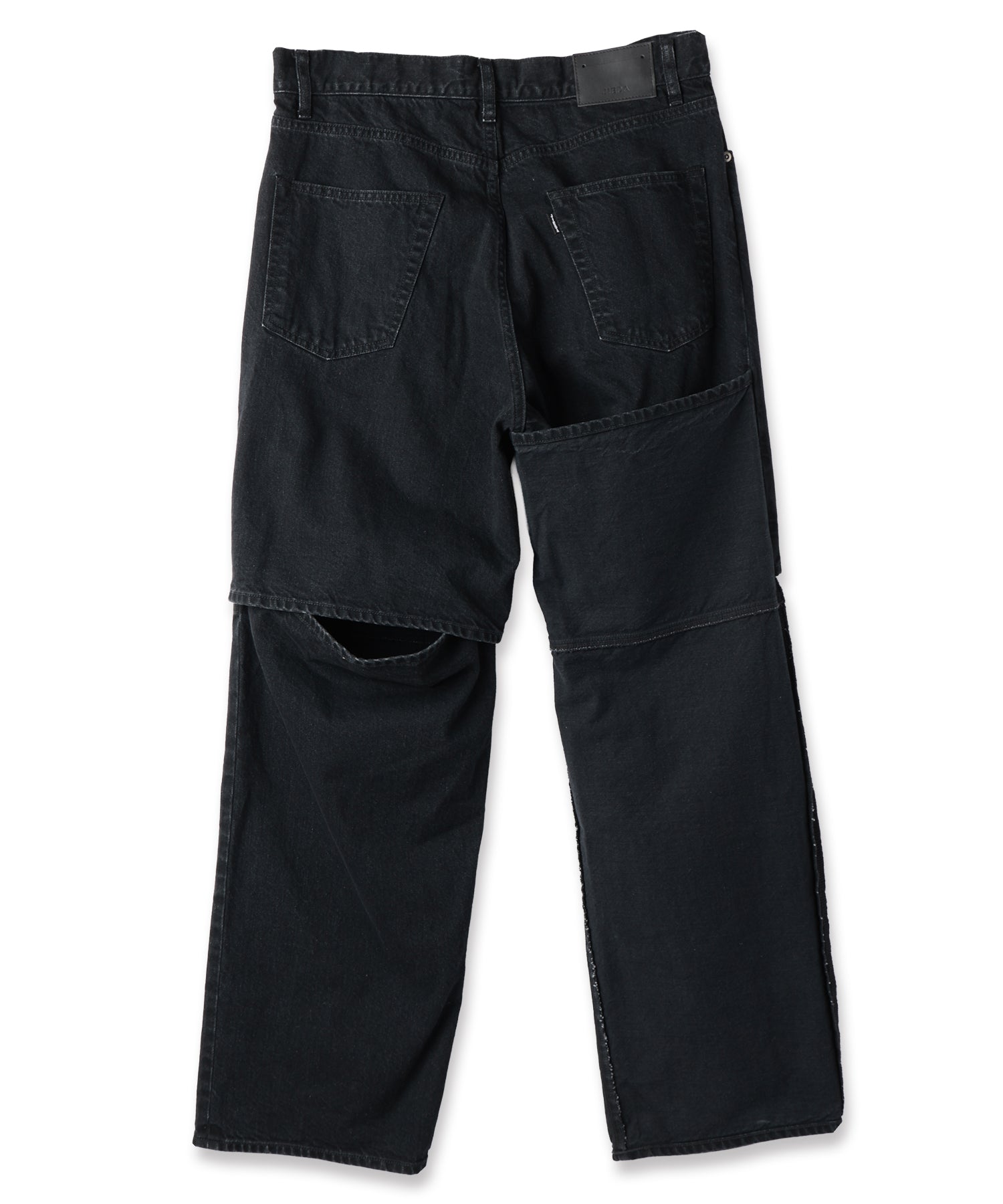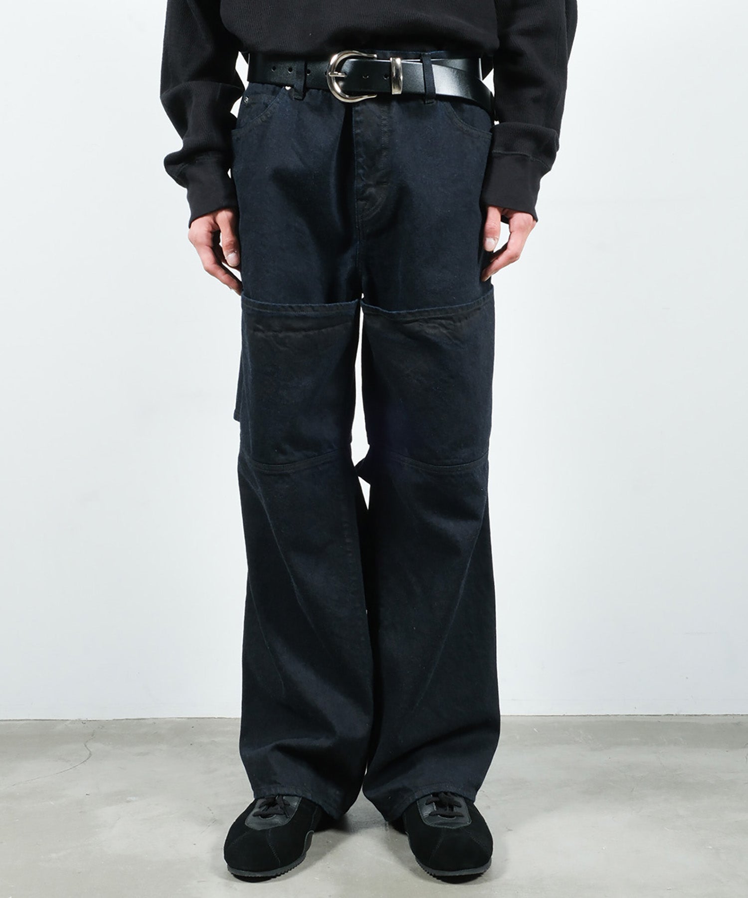ルーズフィットのストレートシルエットとなっており、裾を裏返して穿ける仕様となっています。