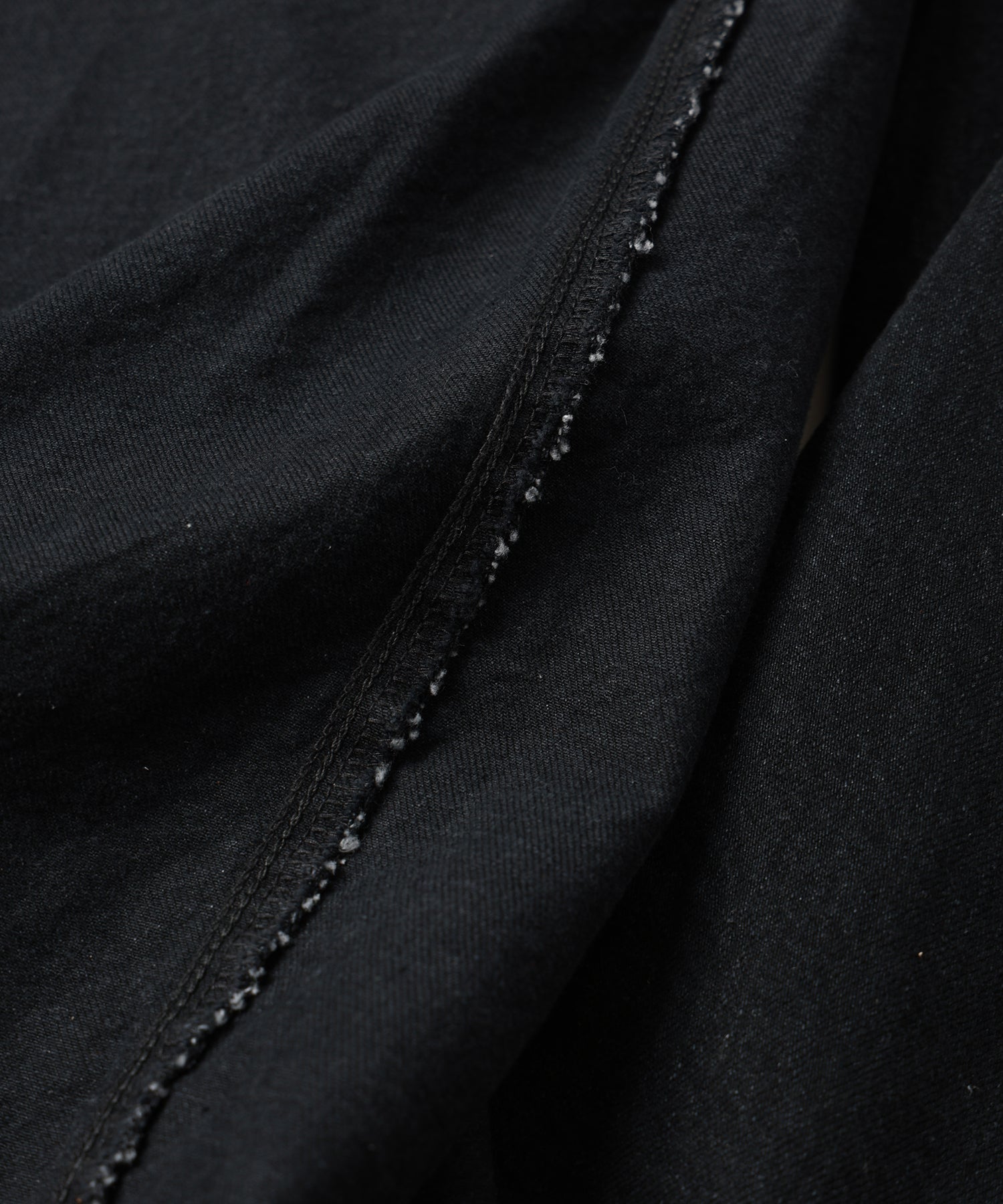 インディゴデニムの上にブラックの顔料コーティングを施しているので、