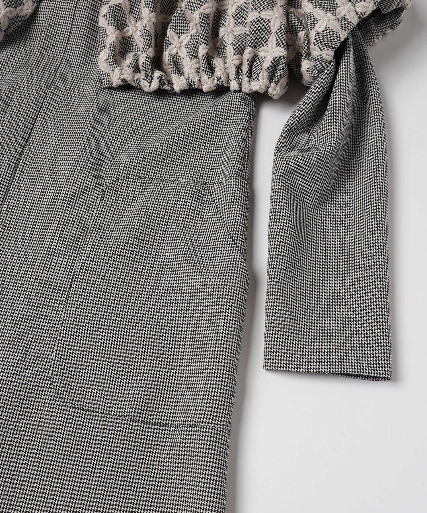 刺繍生地と千鳥格子の生地の切り替えがデザインのアクセントになった切り替えデザインが特徴です