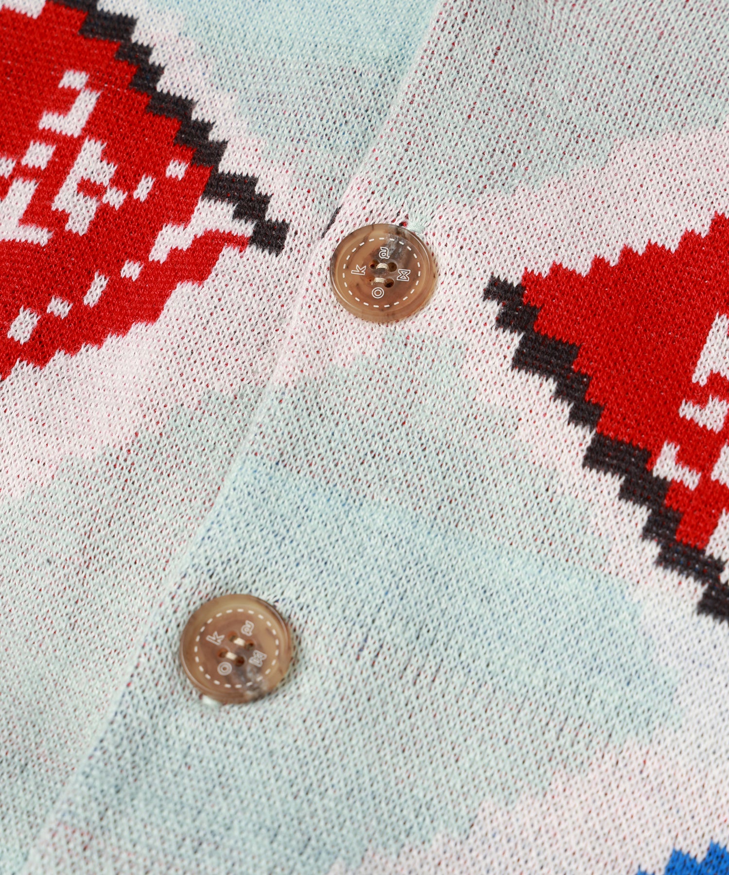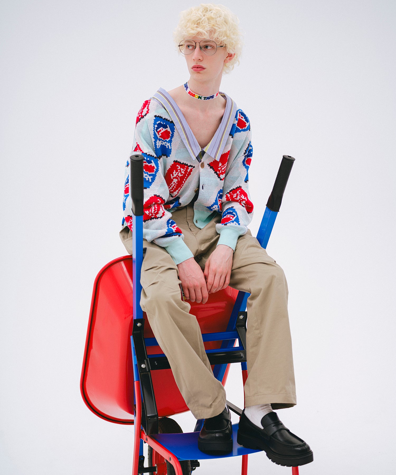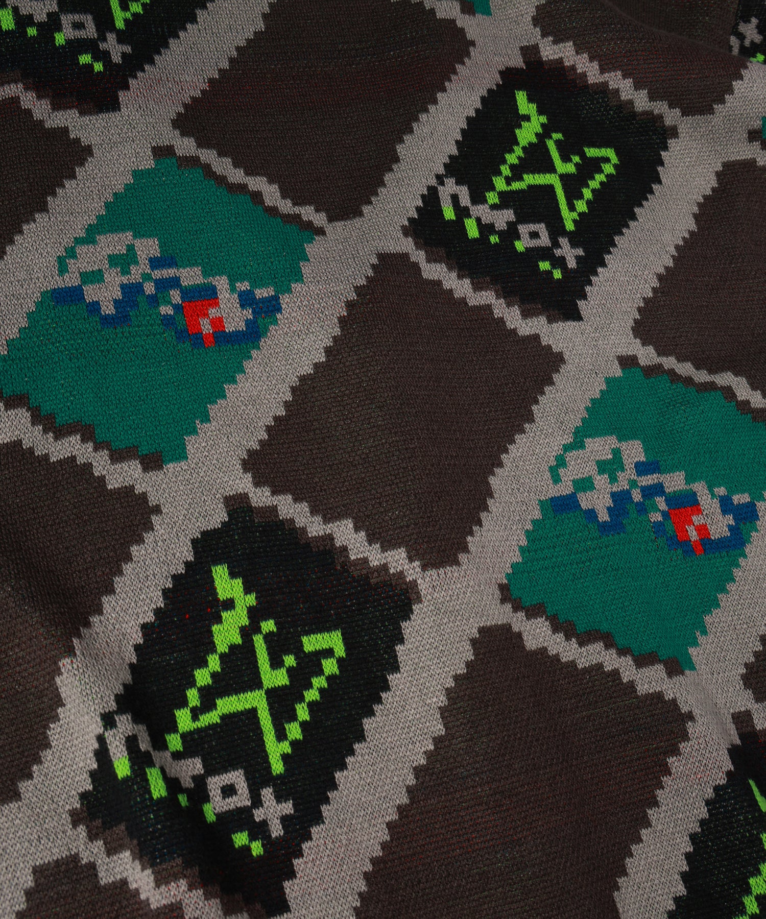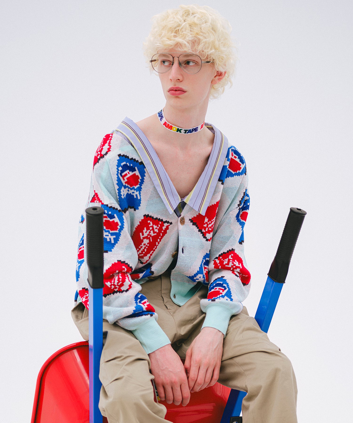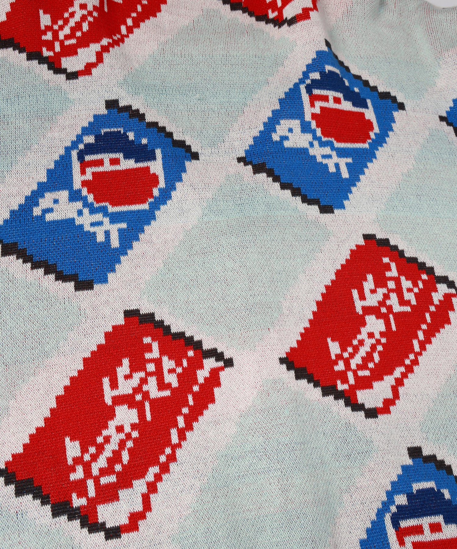 モチーフはニット特有のアナログ感がありポップな柄に仕上げました。
