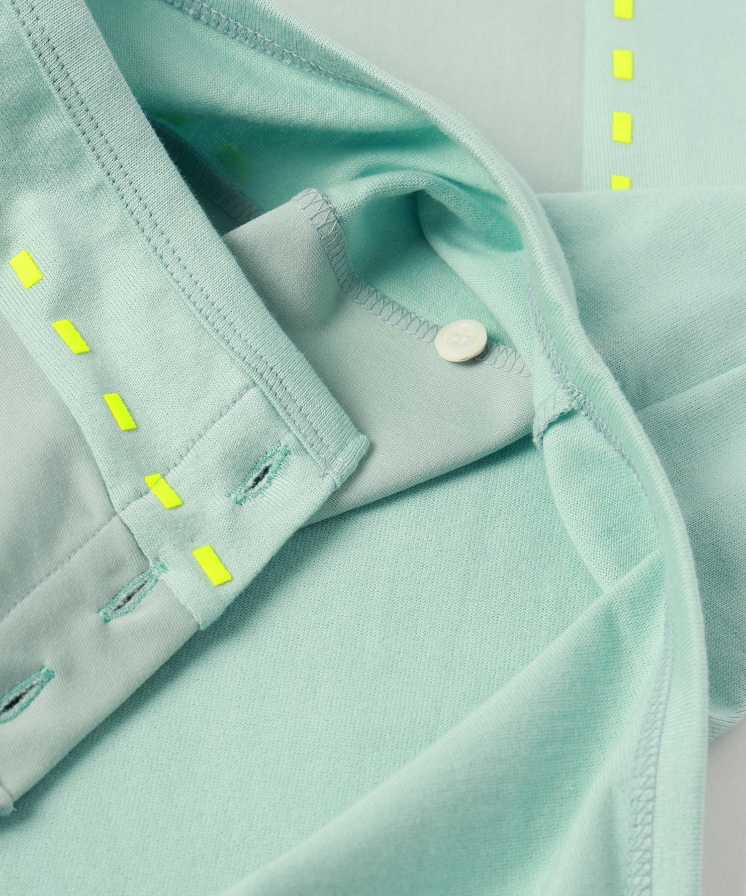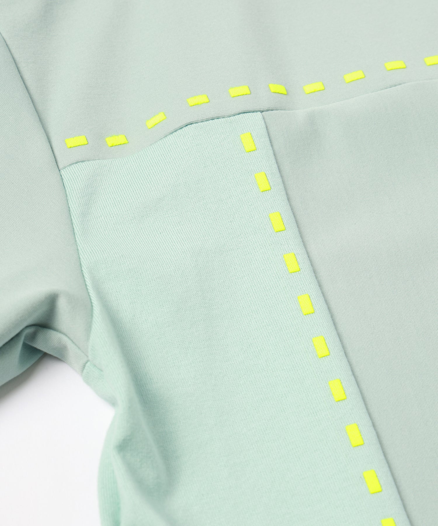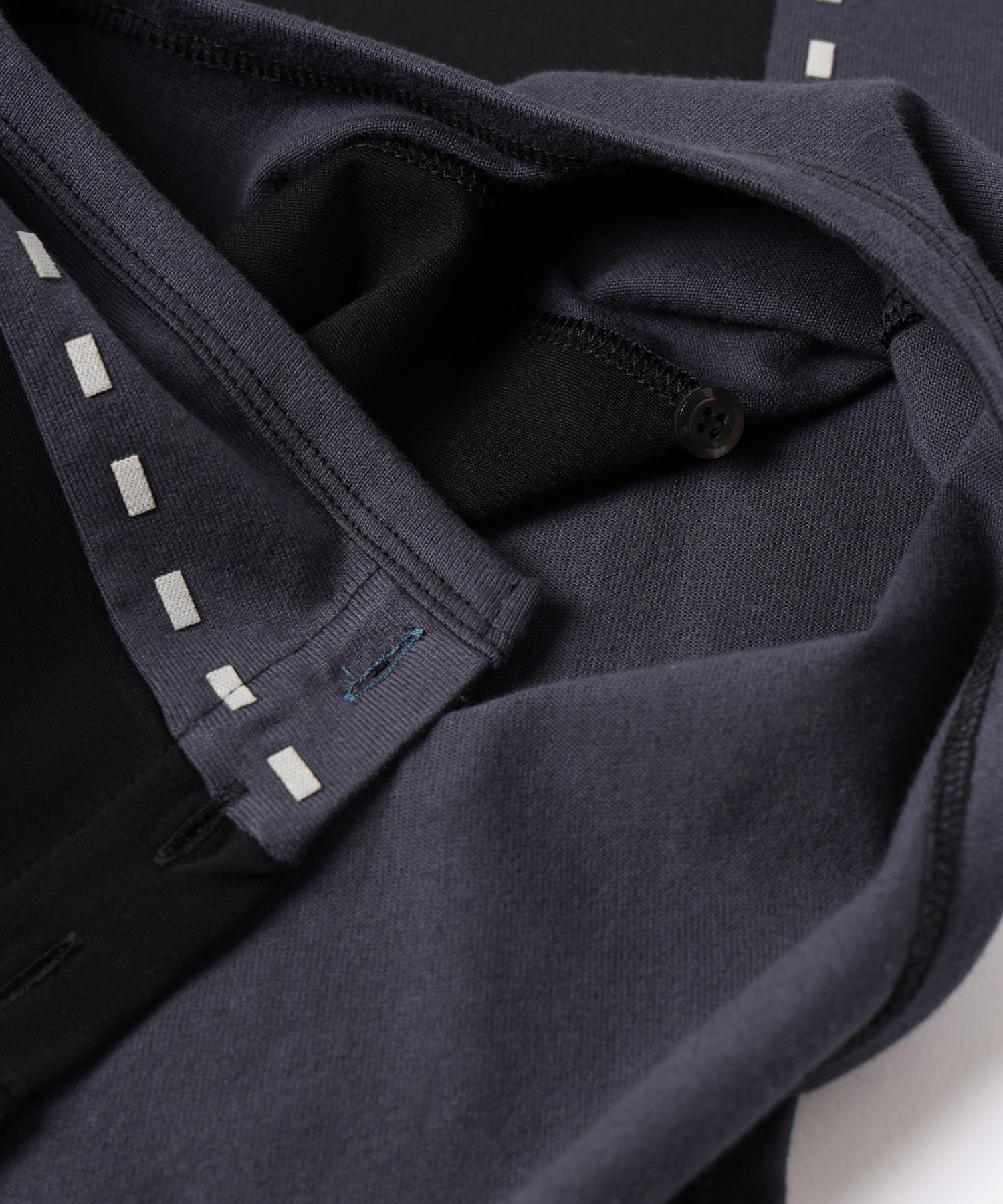 生地は30/2度詰め天竺とヴィスコースを使用のソフトな風合いのストレッチポンチの切り替えました。