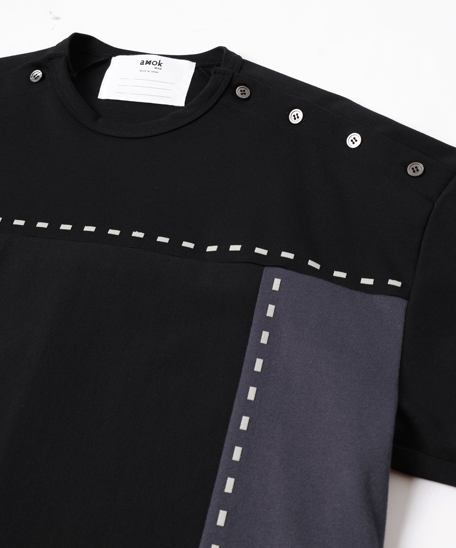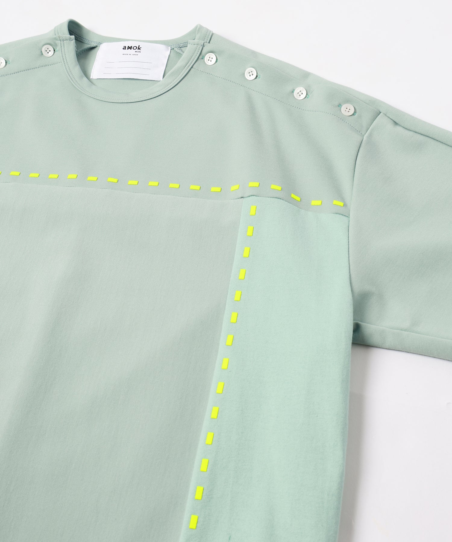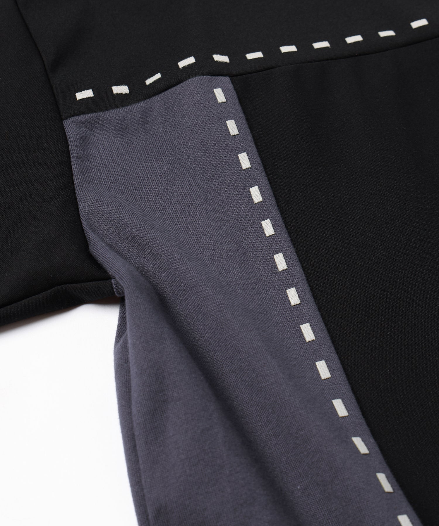 生地は30/2度詰め天竺とヴィスコースを使用のソフトな風合いのストレッチポンチの切り替えました。