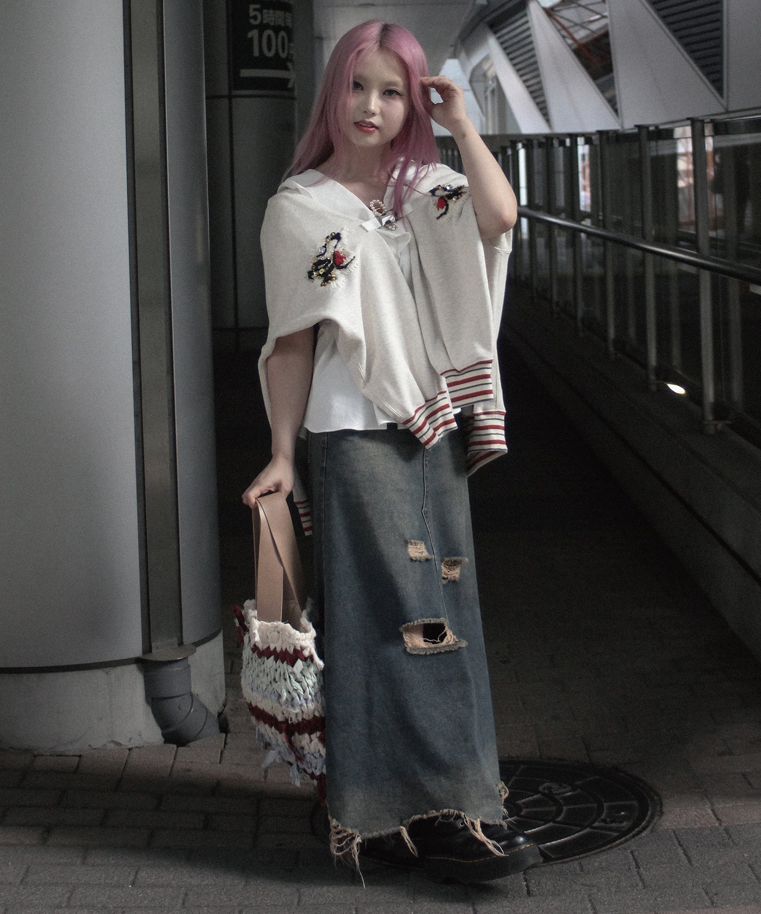 2つのアイテムを融合させた服を中心に、それぞれ別の着方を持ち、大きくフォルムが変化する仕掛けを閉じ込めています。