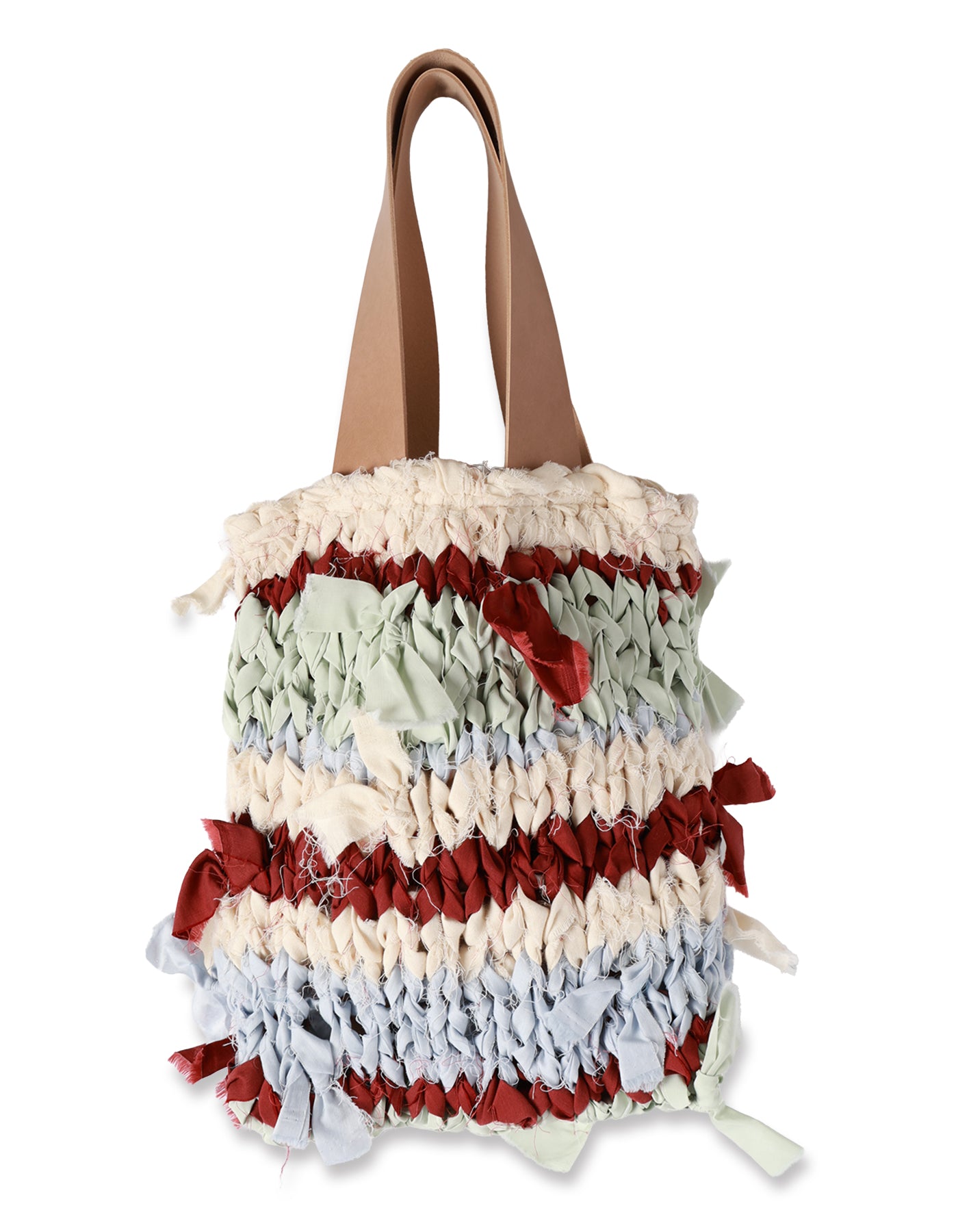 ハンドクラフト感のあるハンドバッグ。