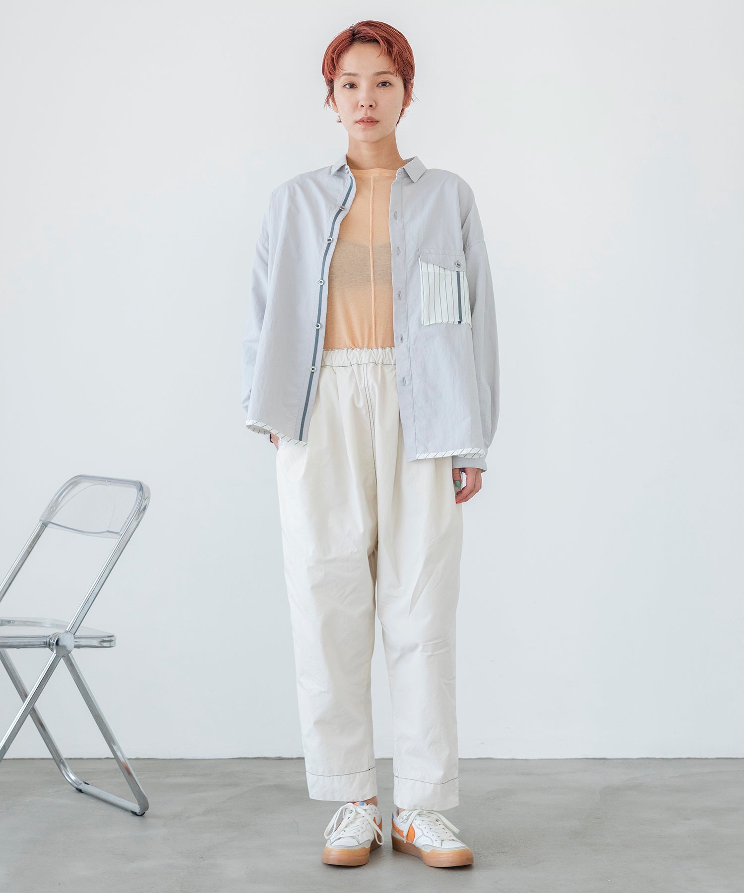 たっぷりしたシルエットとコンパクトな襟でリラックス感がありつつクリーンなムードを高めました。