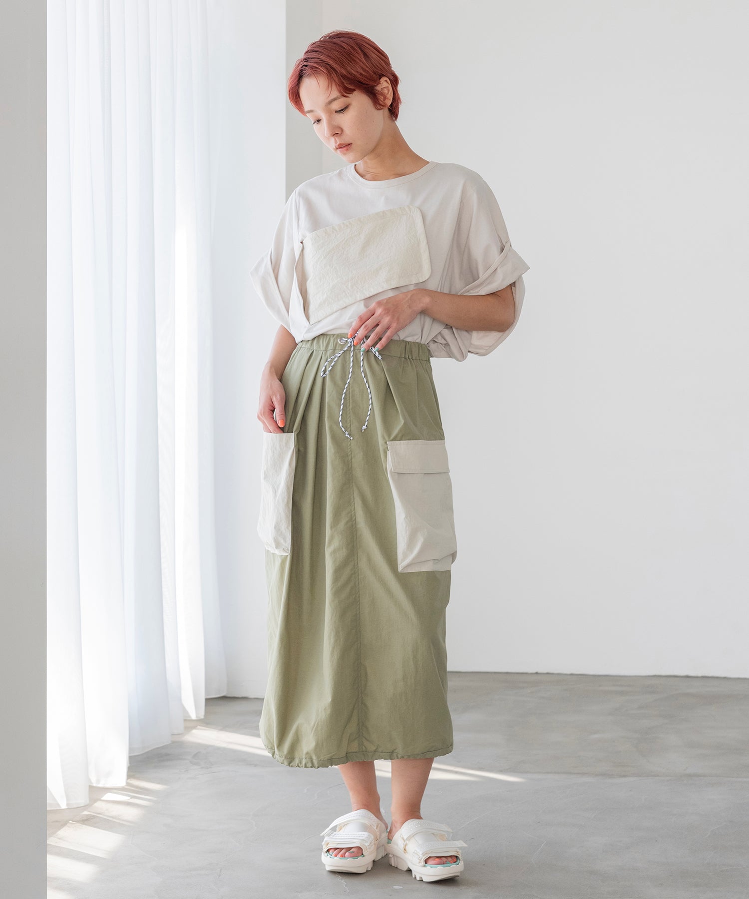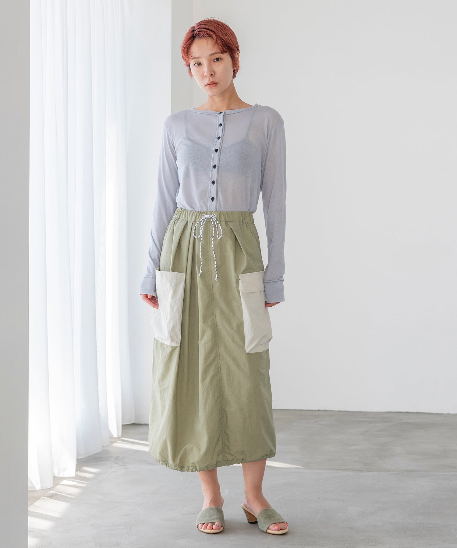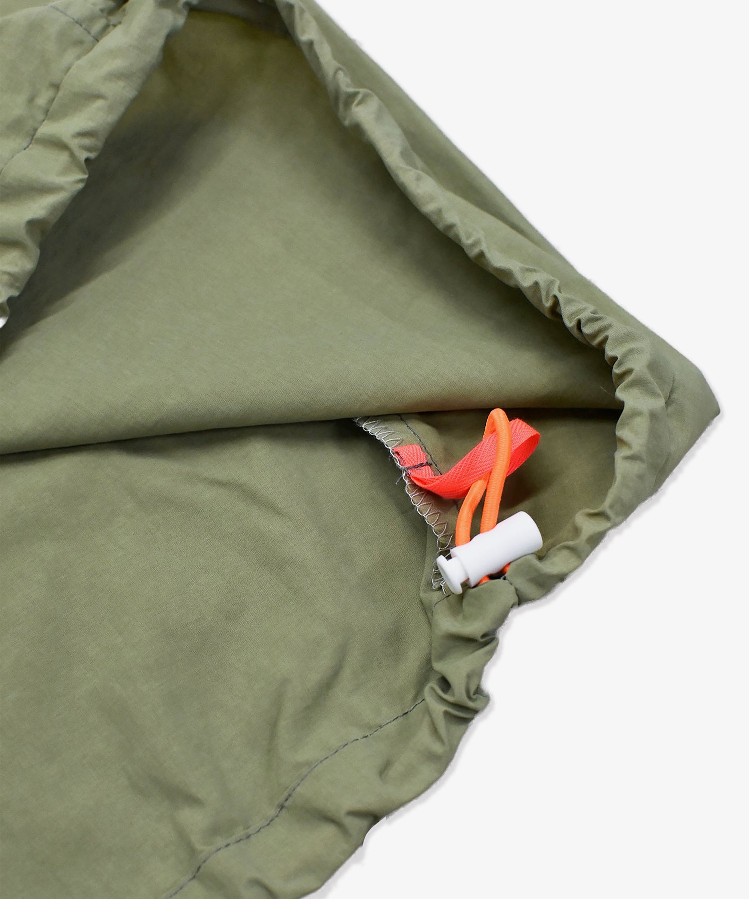 裾にはゴムコードが通っていて丸みを帯びたシルエットに調整可能です。