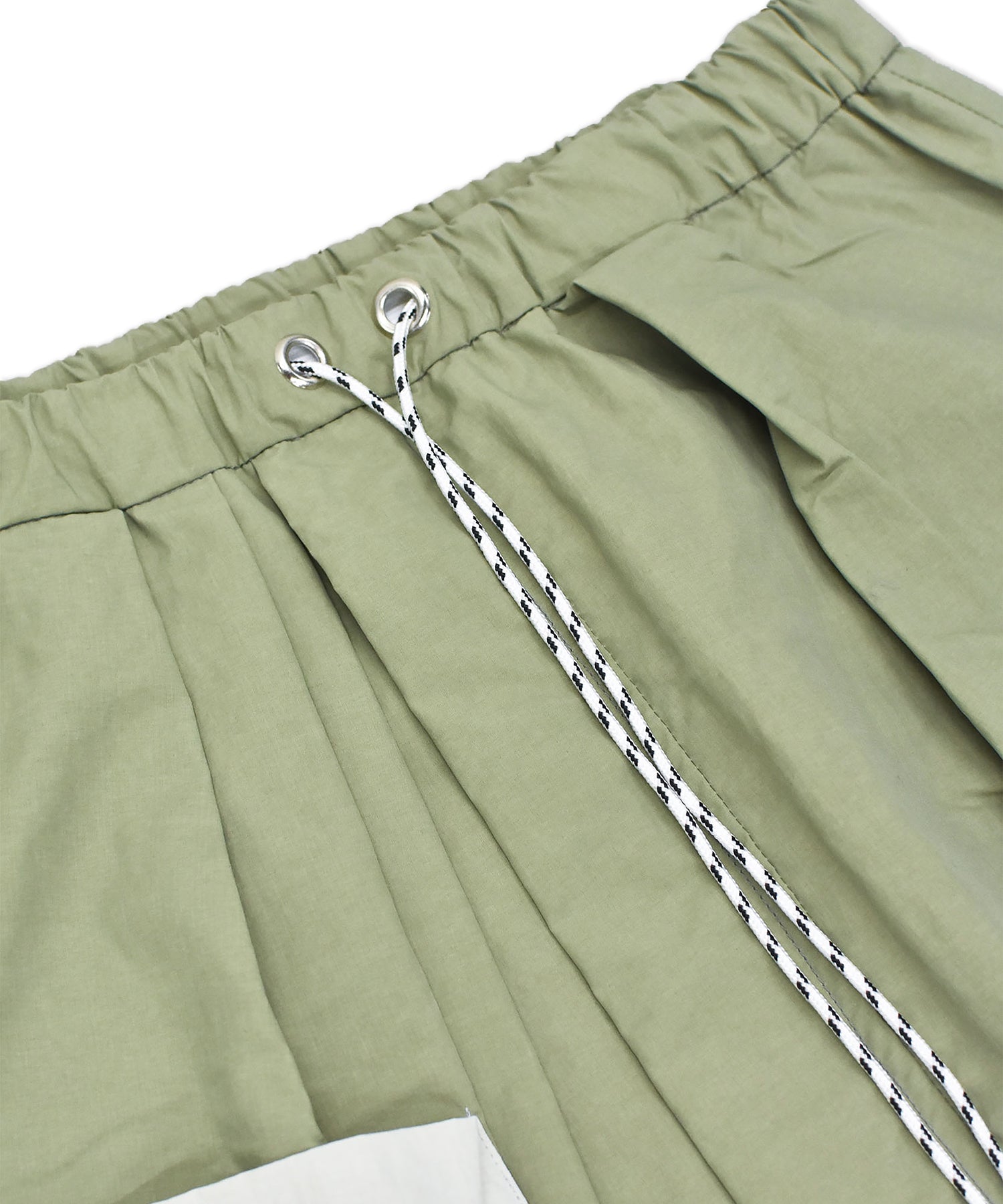 ウエストにゴムとコードが通っていてウエストを調整できます。