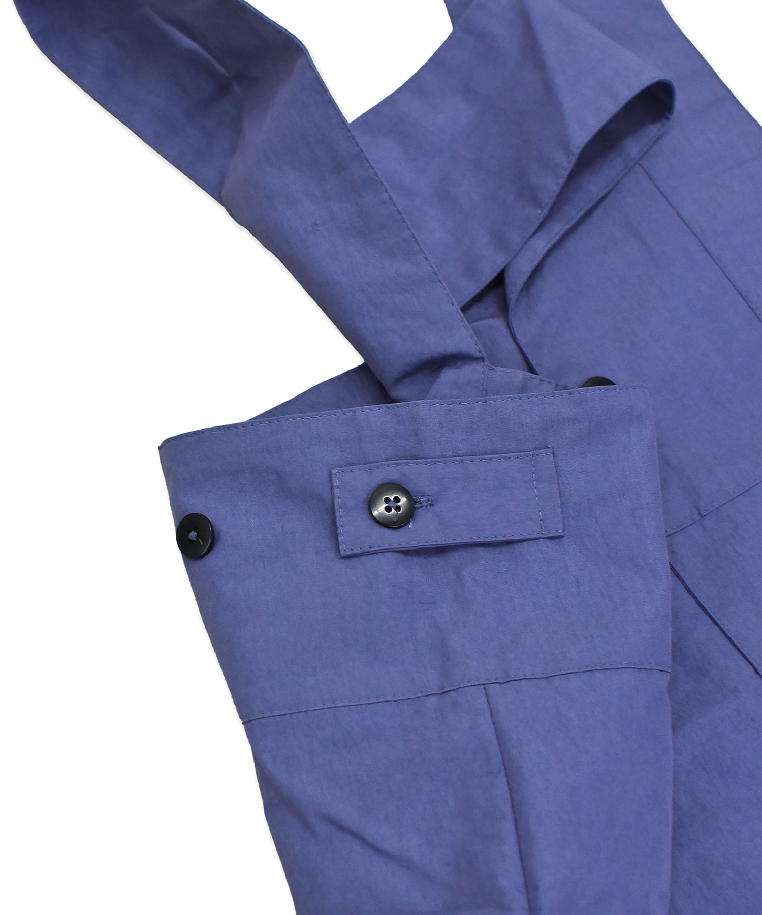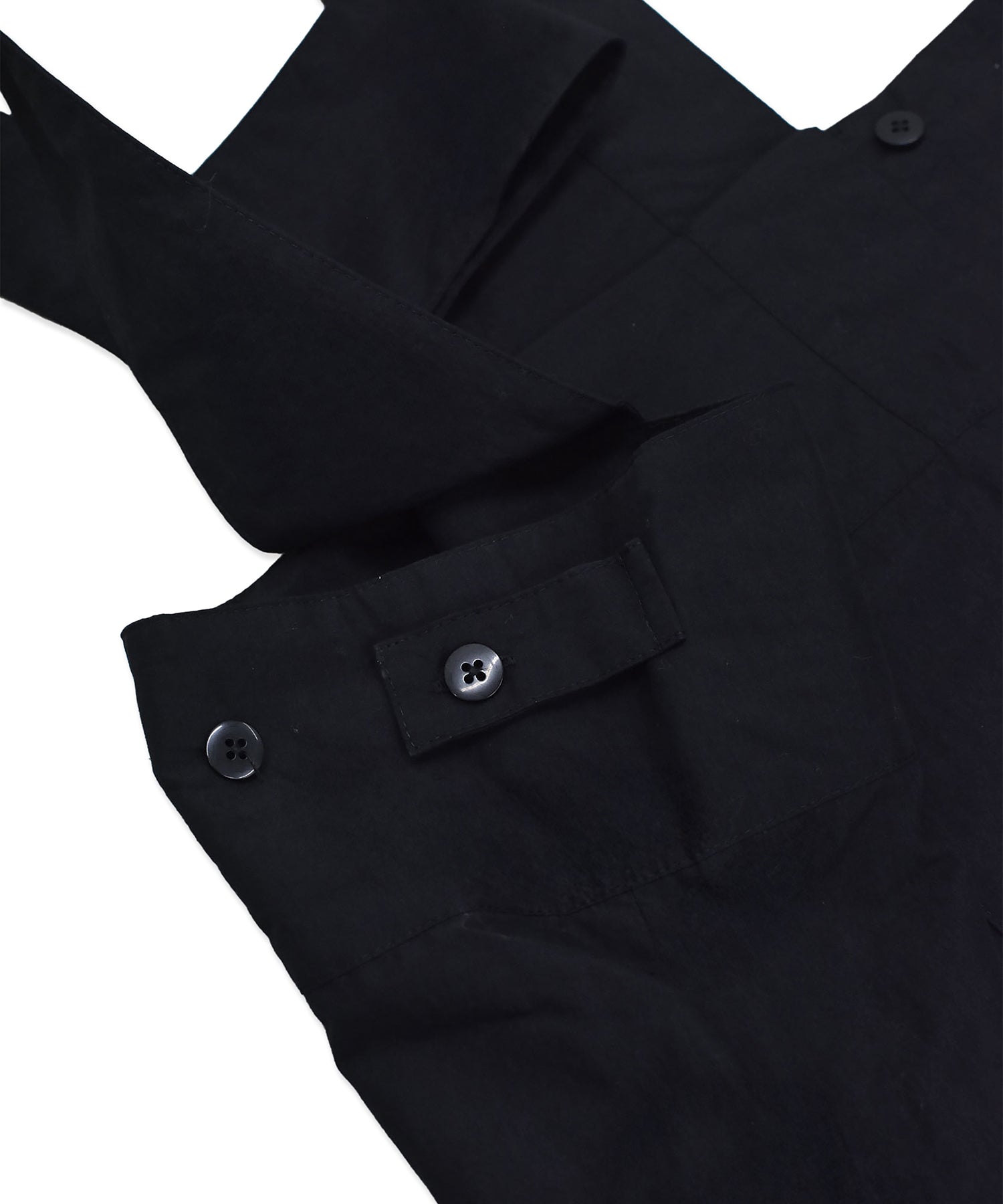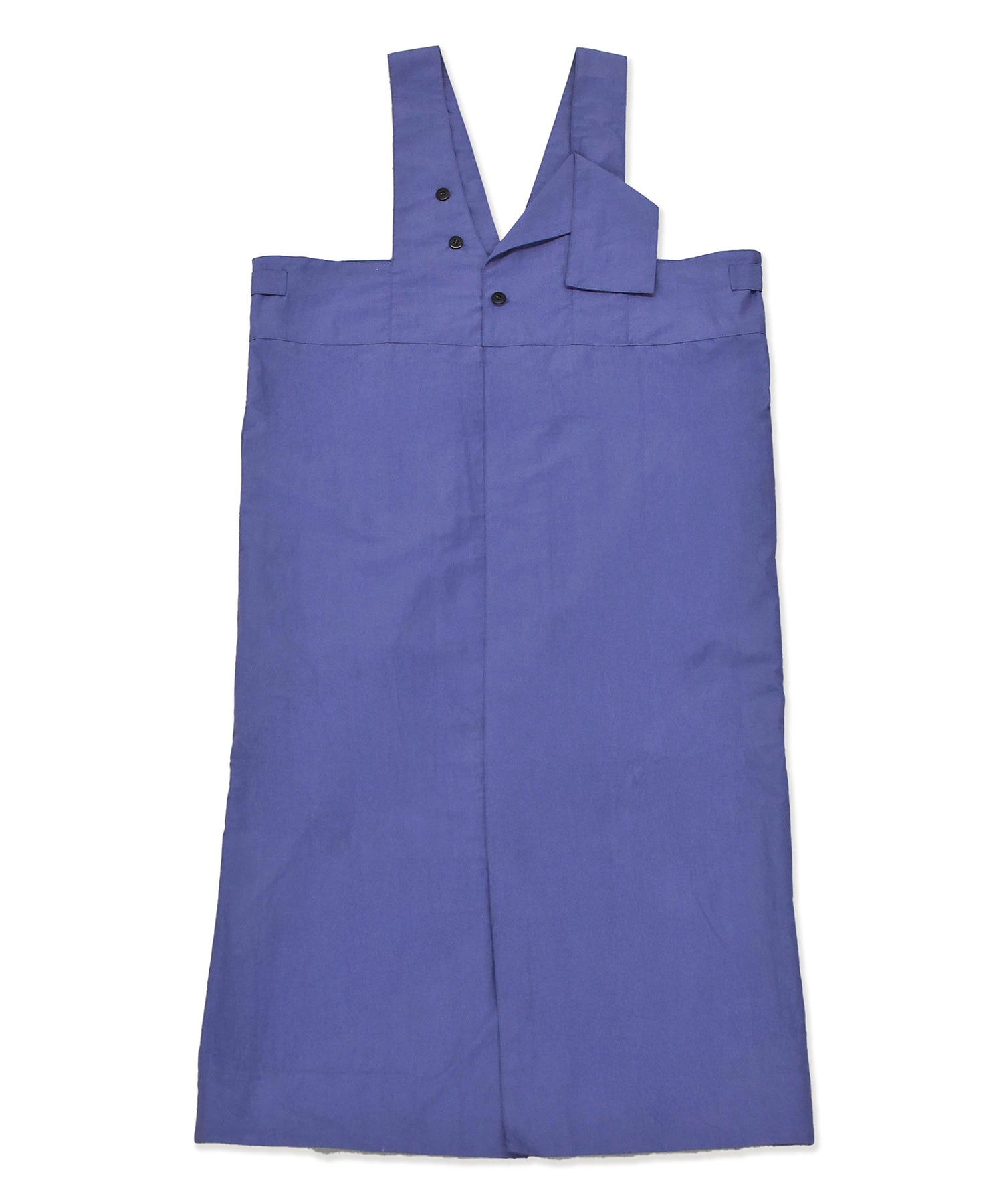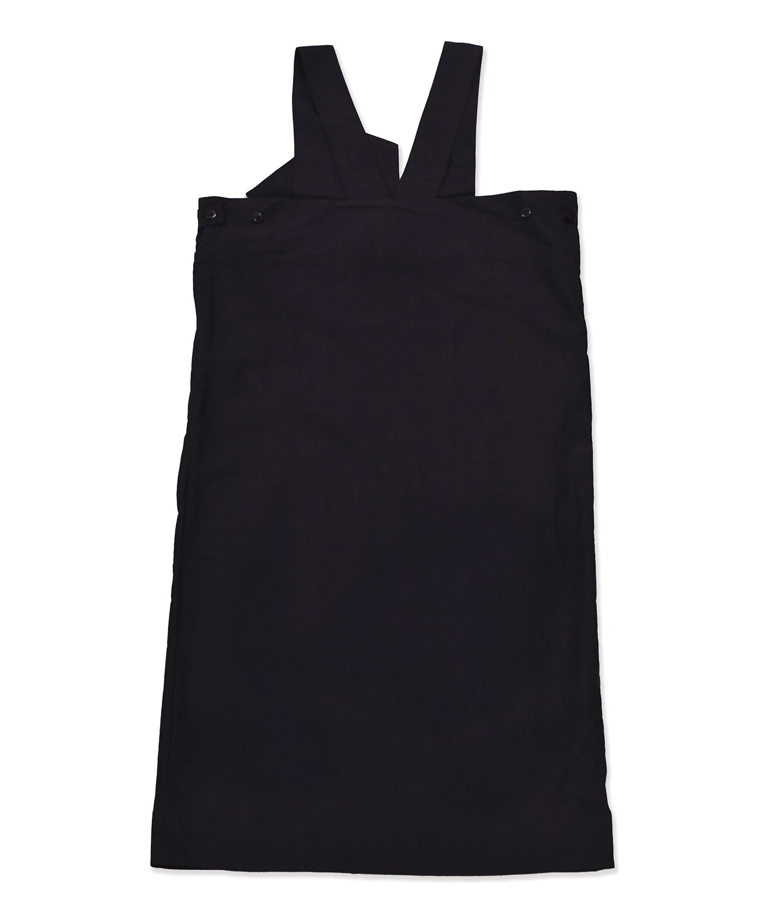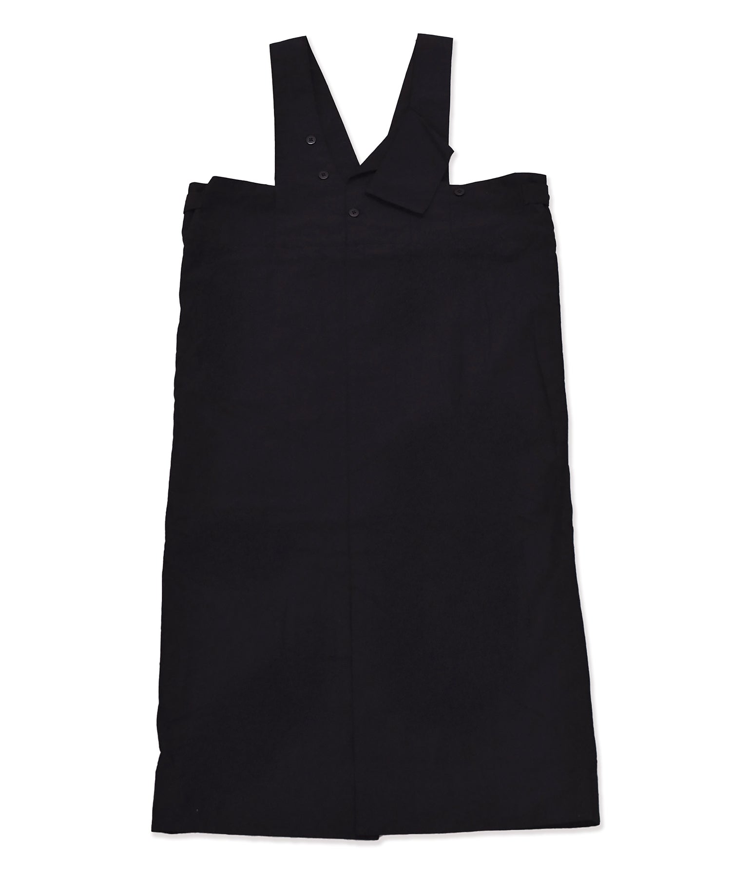 フロントのスリットとベルトのディティールが作るジグザグなフォルムがポイントのジャンパースカート。