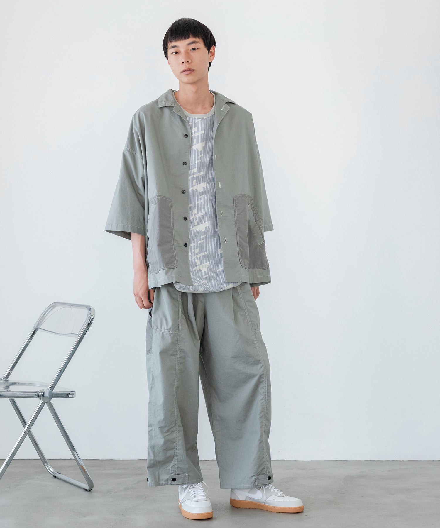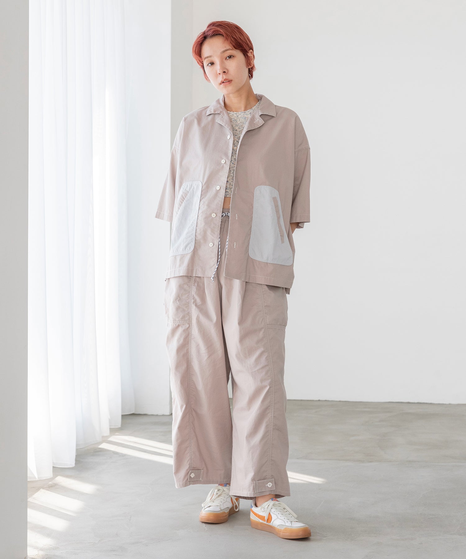 同素材のシャツジャケットとのセットアップもおすすめです。