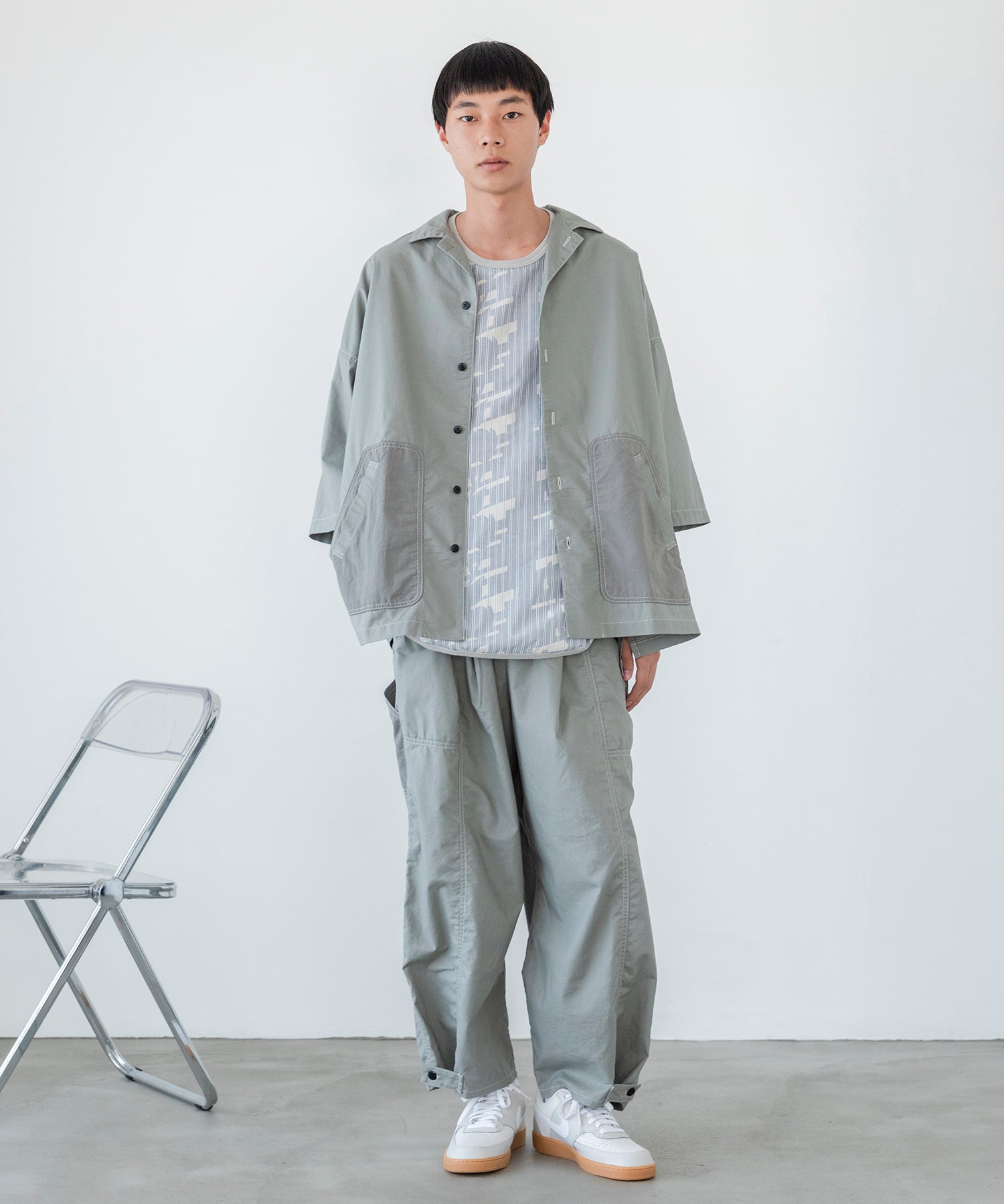 生地はシリコンを含浸していて軽い反発感あり、古着っぽい雰囲気の中に整ったムードも漂います。