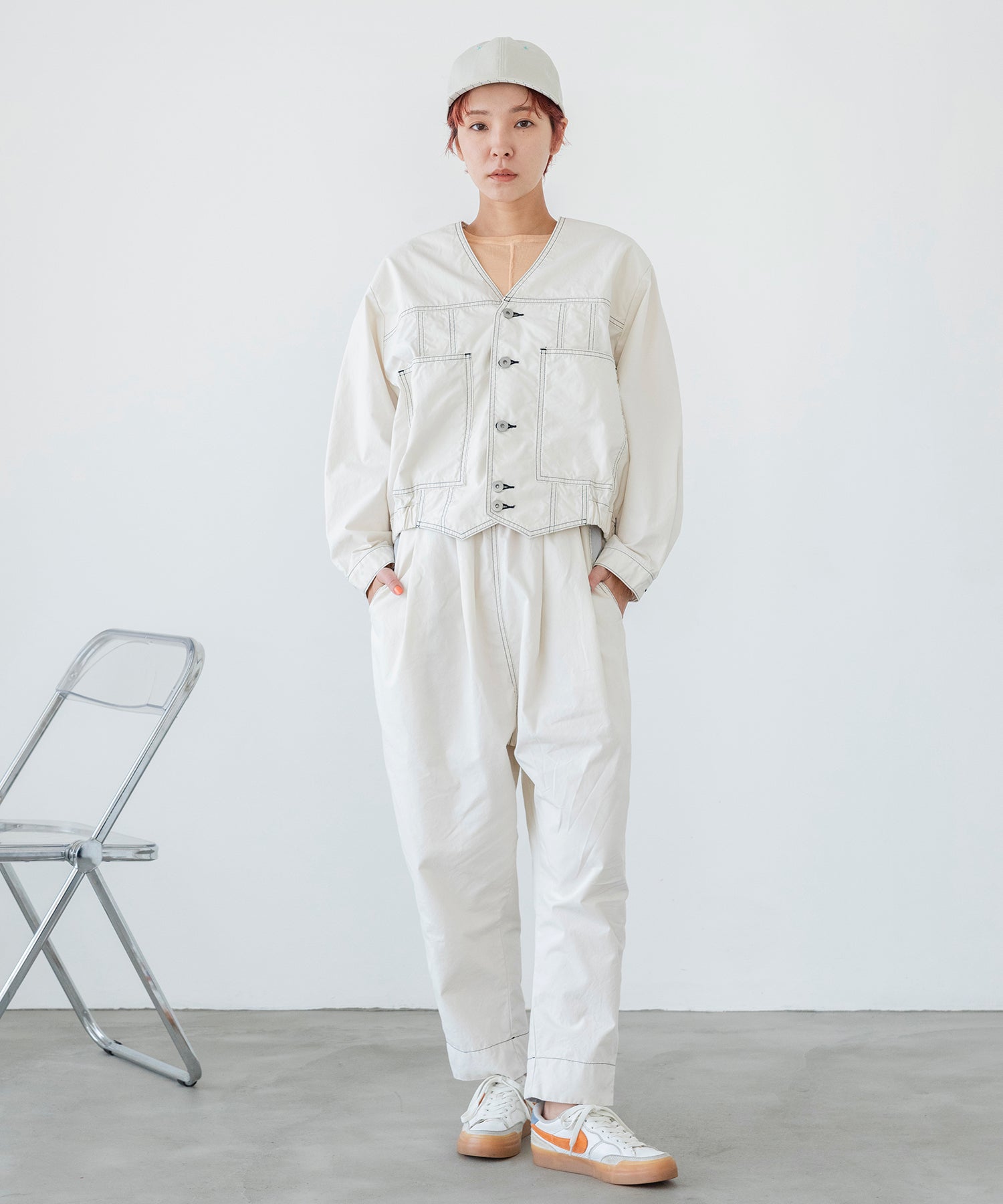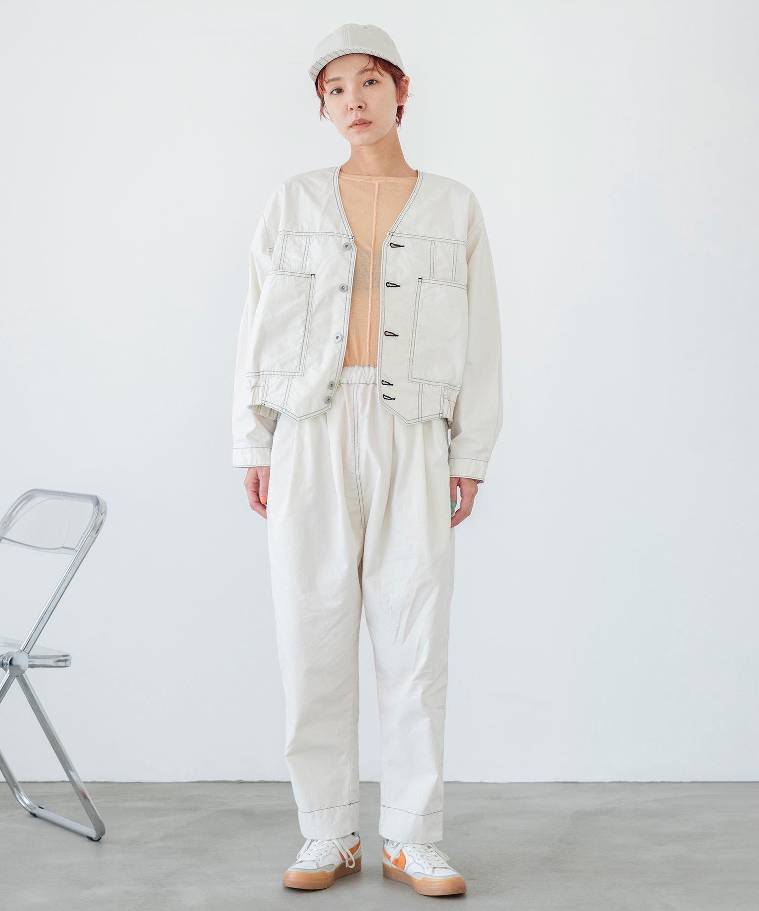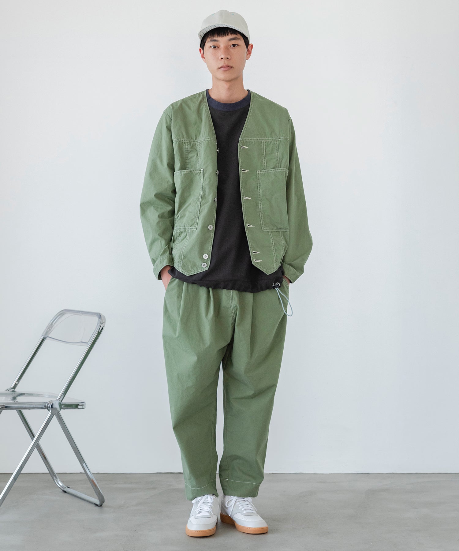 同素材のブルゾンとのセットアップもおすすめです。