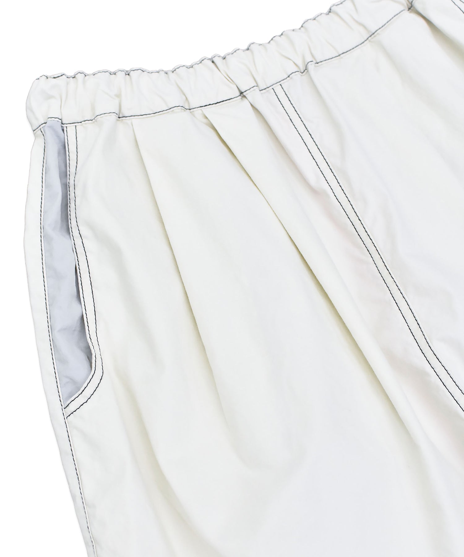 フロントのポケットとウエスト、裾裏にはナイロン素材を使用し、デザインアクセントに。