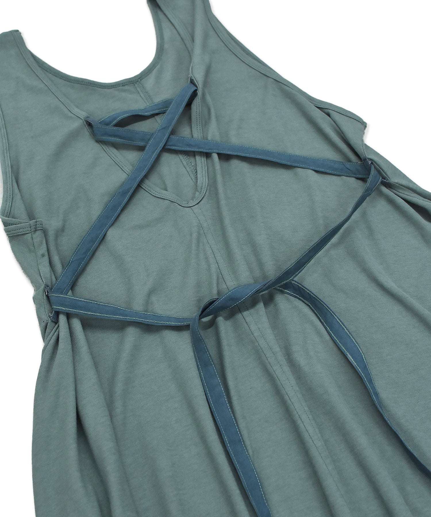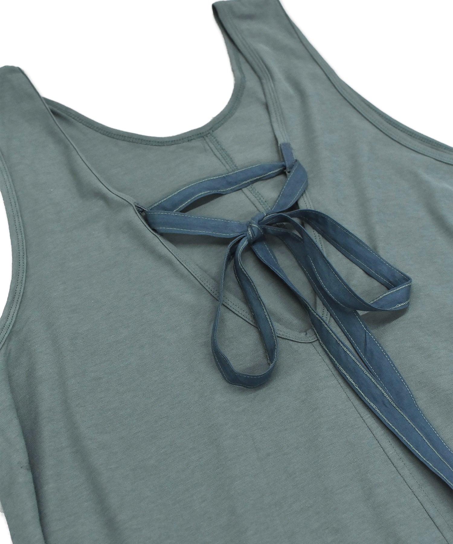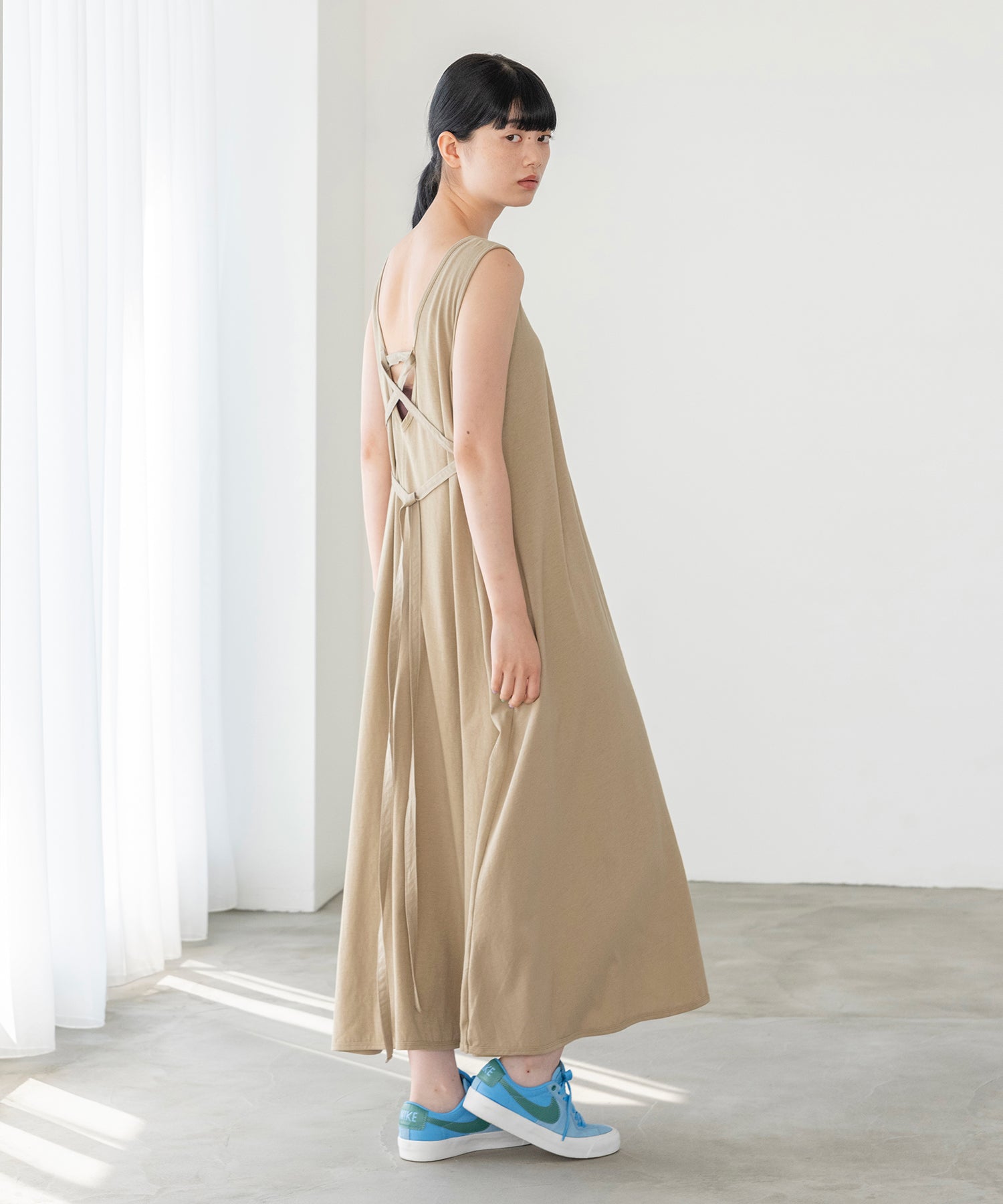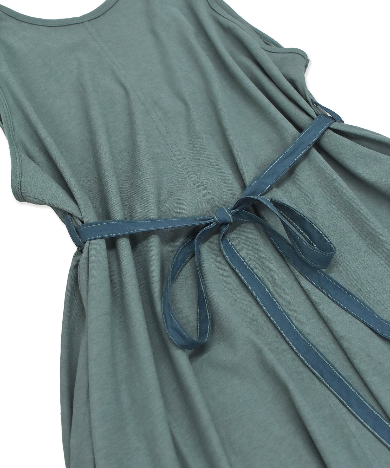 脇のループも利用して編み上げたり、はたまたウェストのループにだけリボンを通したり、とシルエットを変えられます。