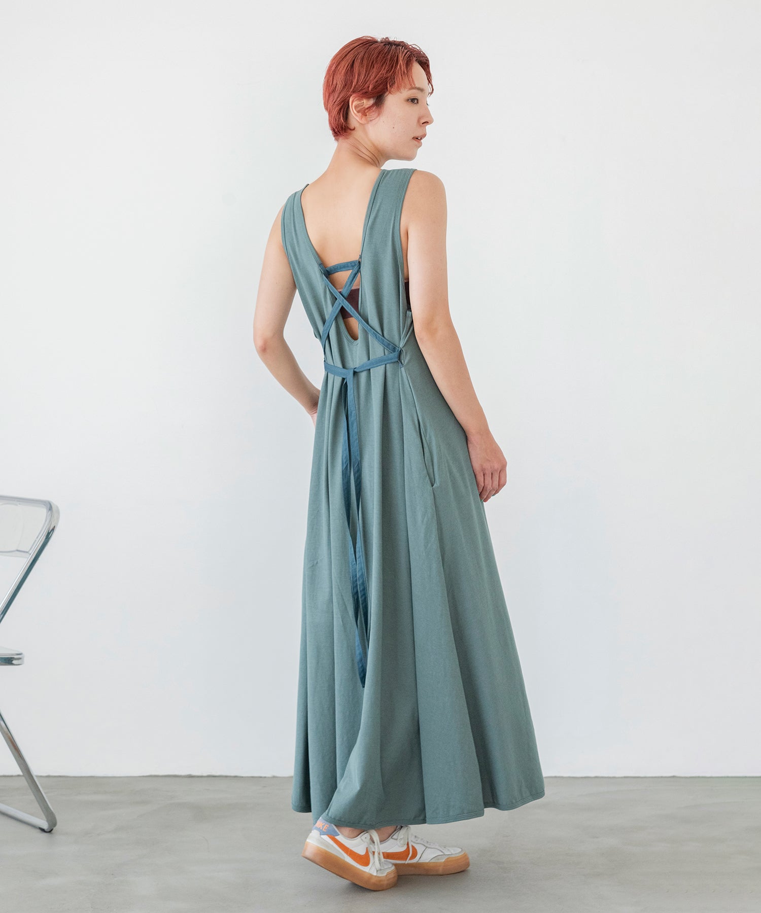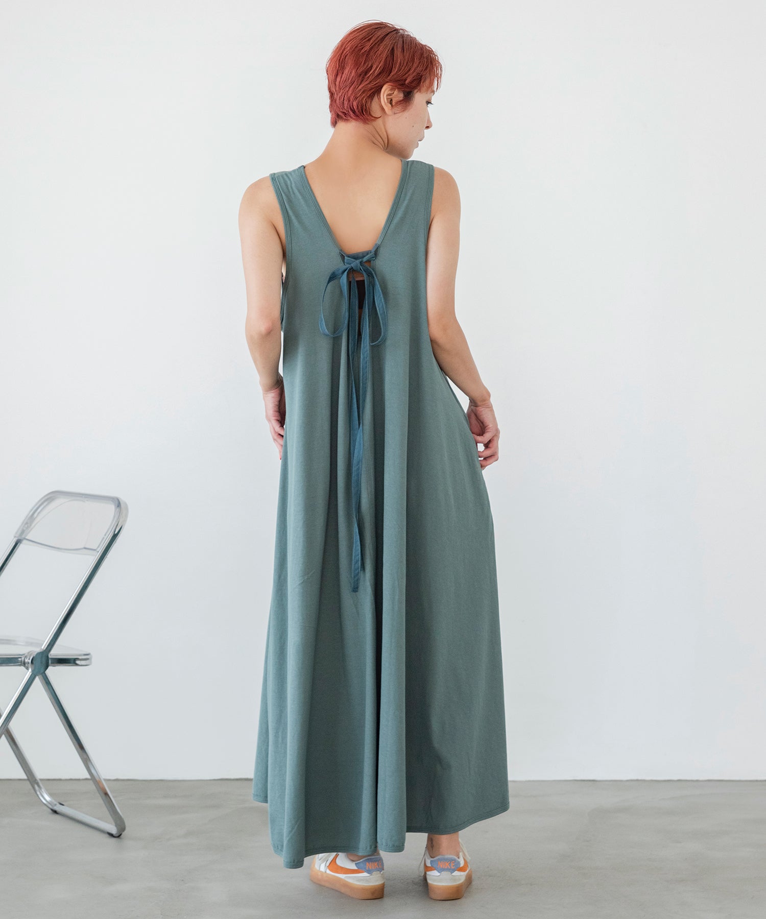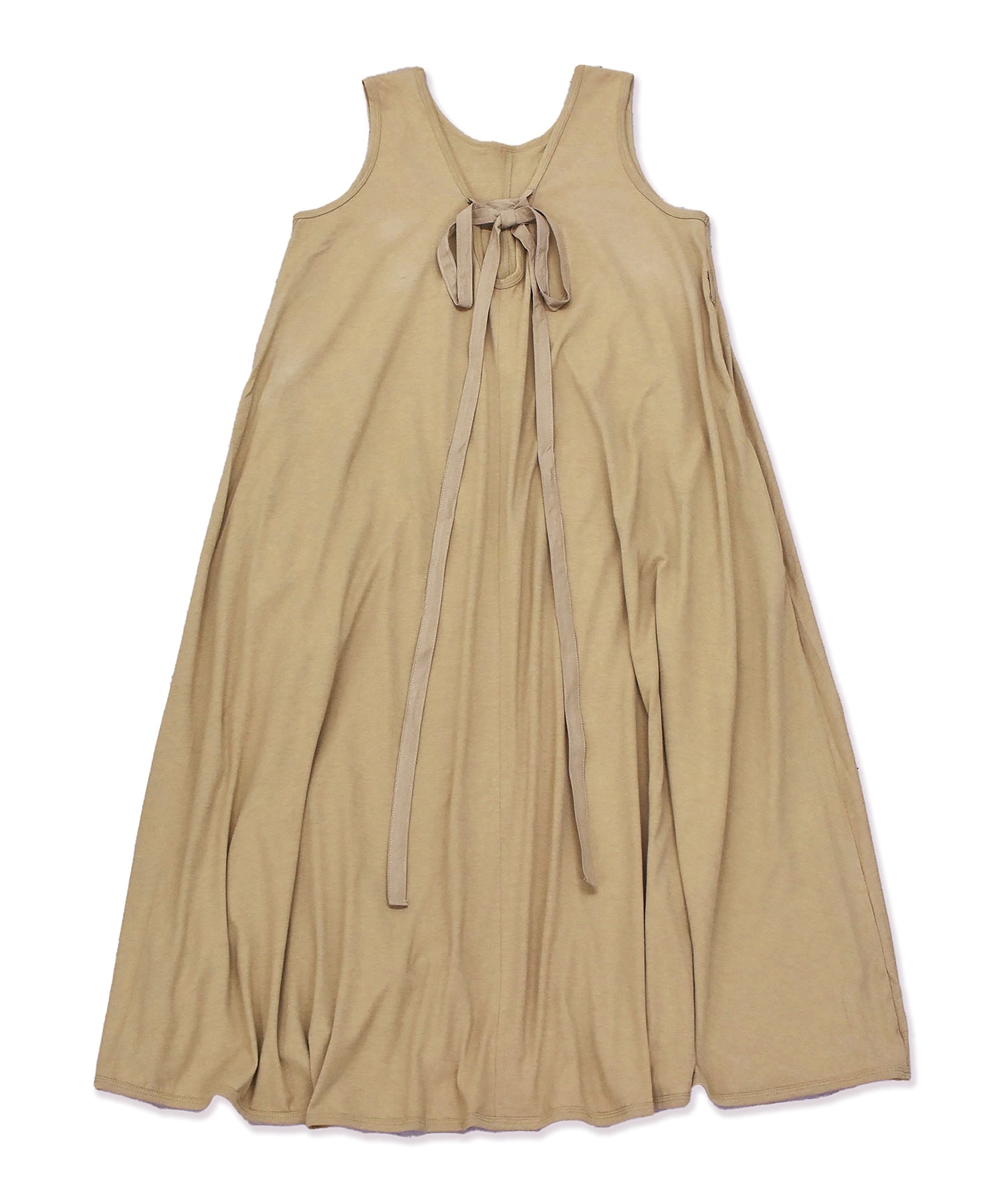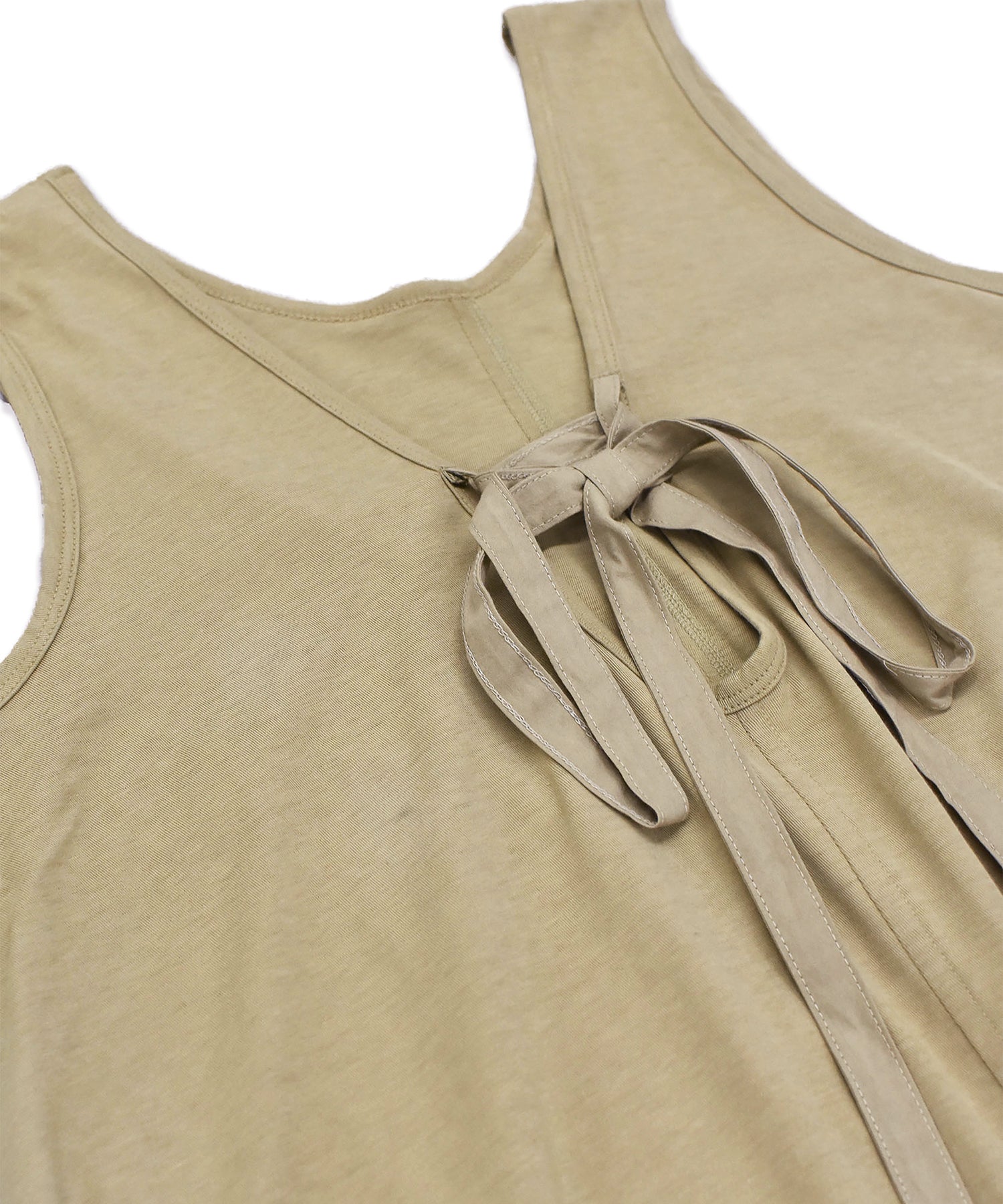 背中のあきにはリボンを通せるようになっており、一回だけ通してリボンを長く垂らしたり、