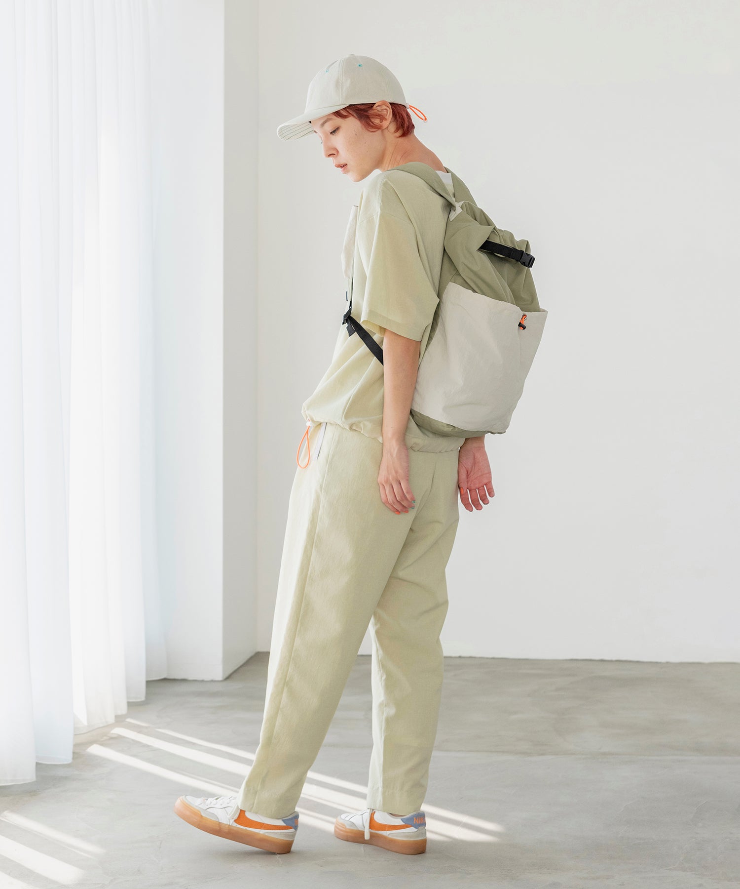 フロントにアウトドアのリュック同様、2本のチェストベルトを備え、ずれることもなく安心して背負え、身体への負担も軽減してくれます。