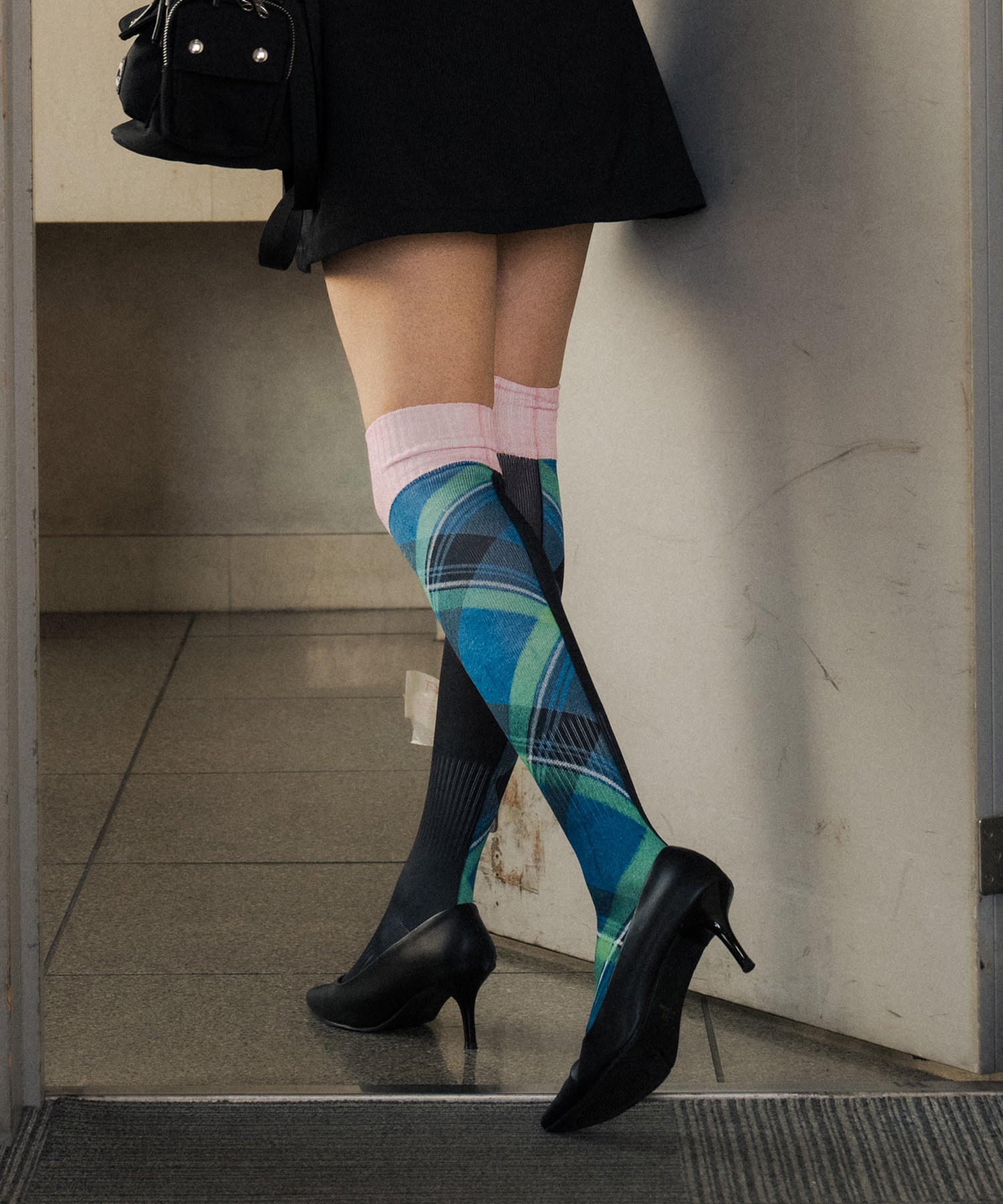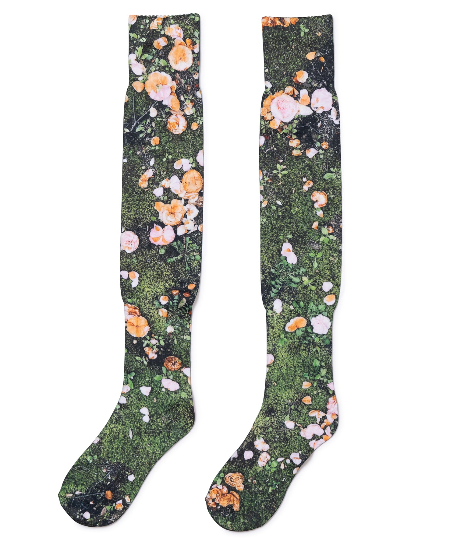 ダイレクトに転写プリントが施されたロングソックス。