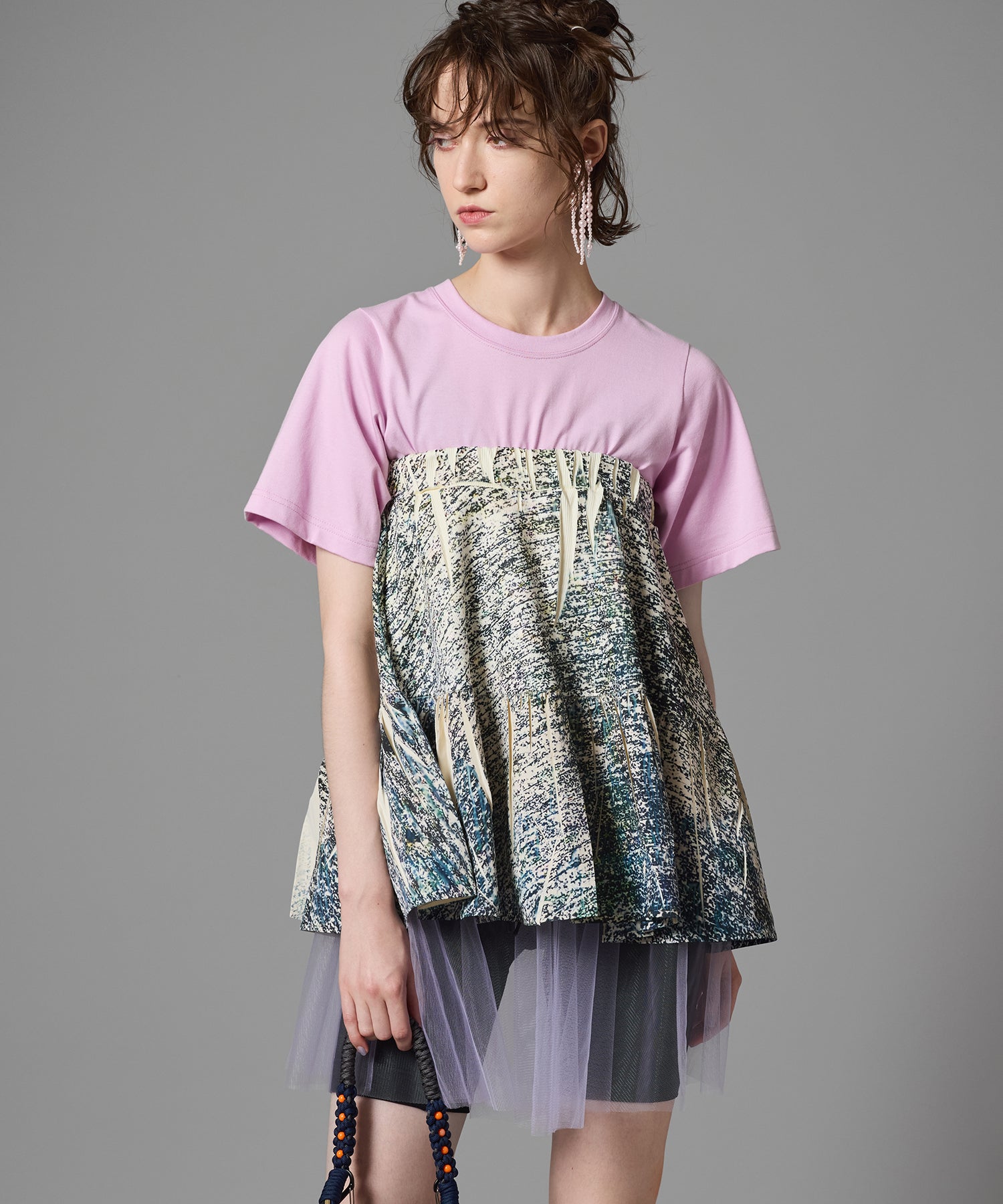Tシャツにチュールスカートがドッキングしたカットソー。