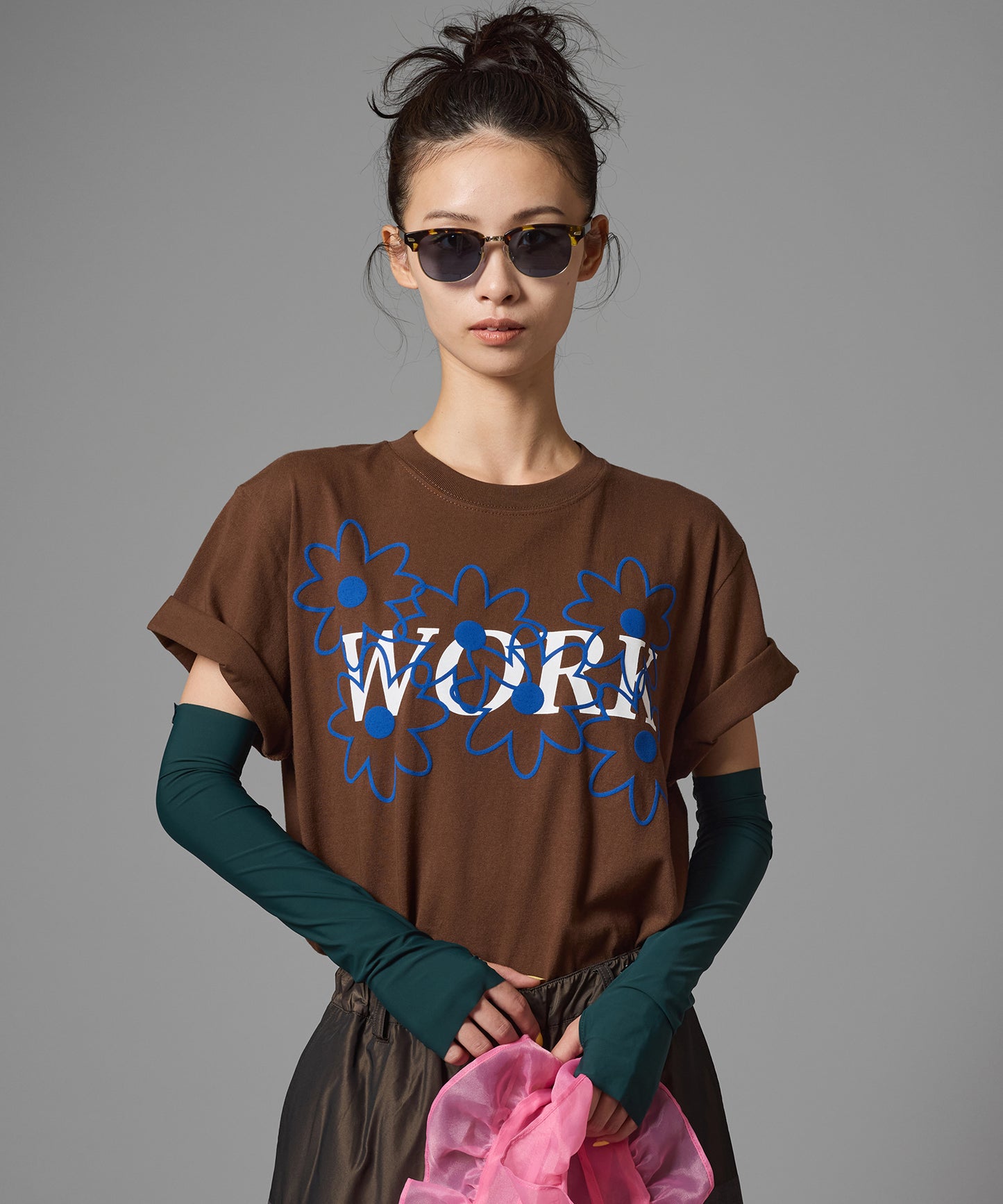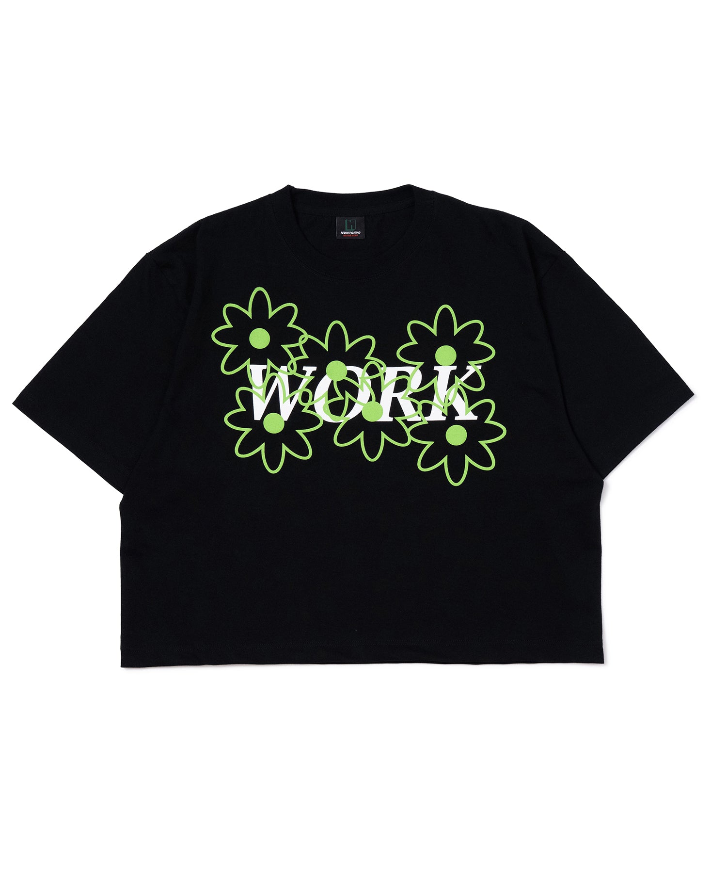 フロントには今期のテーマにもある'WORK'とフラワーモチーフの組み合わせ。