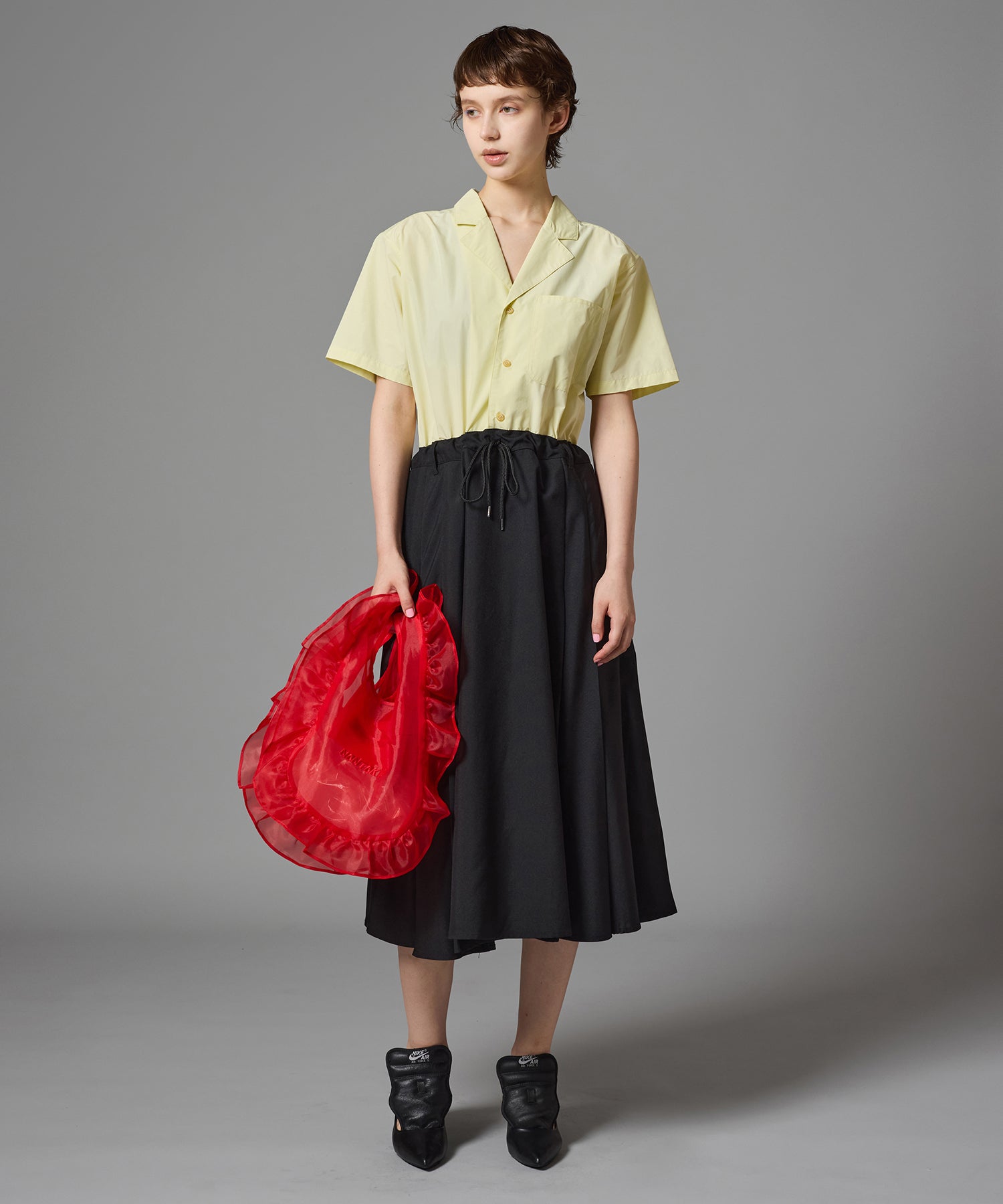 シャツとスカートウエストでドッキングされているので、1着でコーディネートが決まる1枚です。