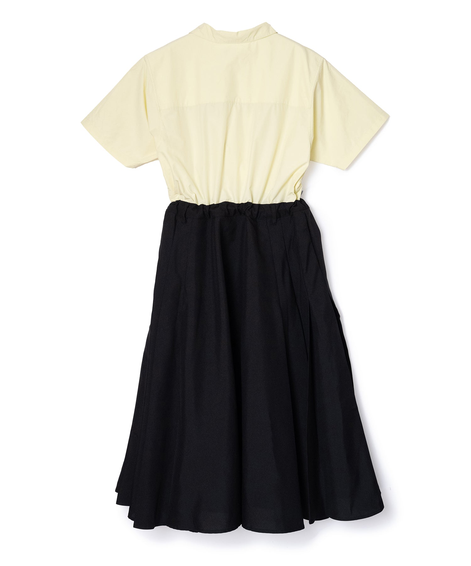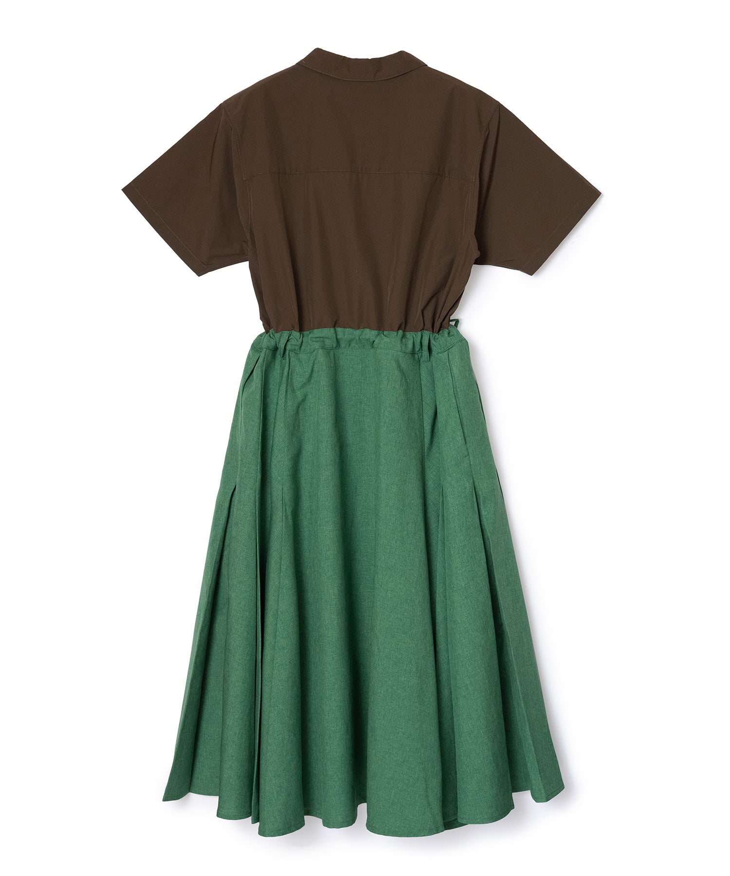 シャツとプリーツスカートがドッキングしたデザインのワンピース。