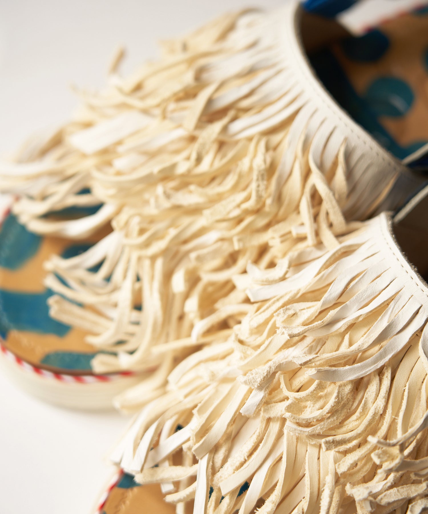 フリンジ素材は2種類の革を使い、交互に重ねることで立体感を演出。