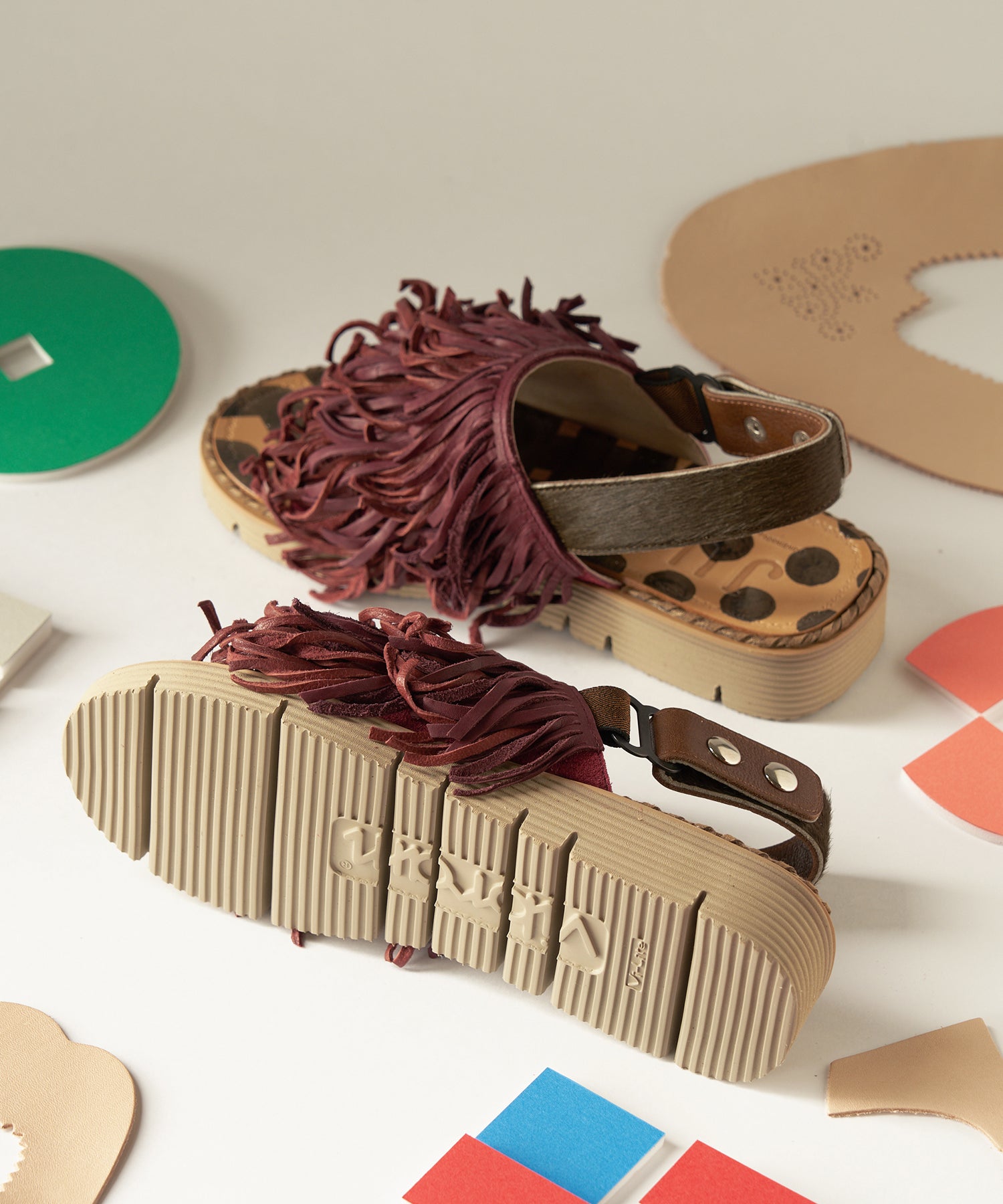 ブランド初期から続く「くせっ毛」シリーズは、アッパーとソールの組み合わせを自由に選べるサンダルとして登場。