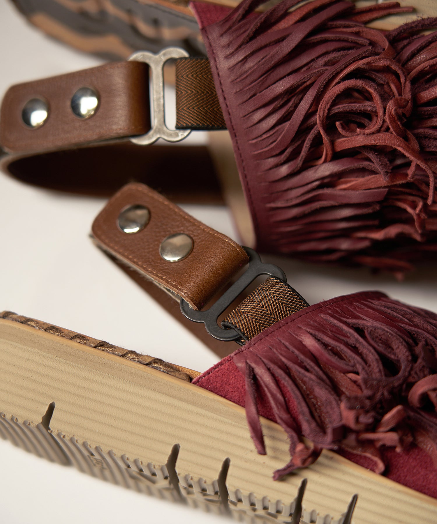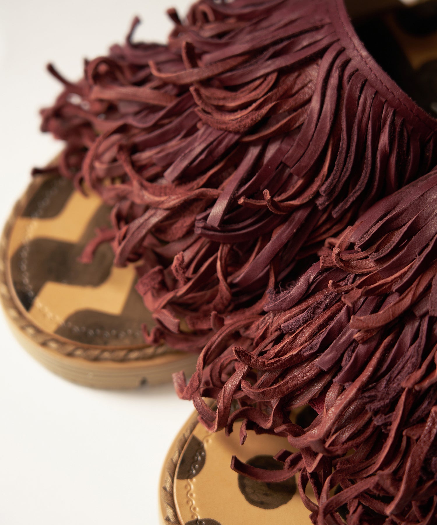 フリンジ素材は2種類の革を使い、交互に重ねることで立体感を演出。