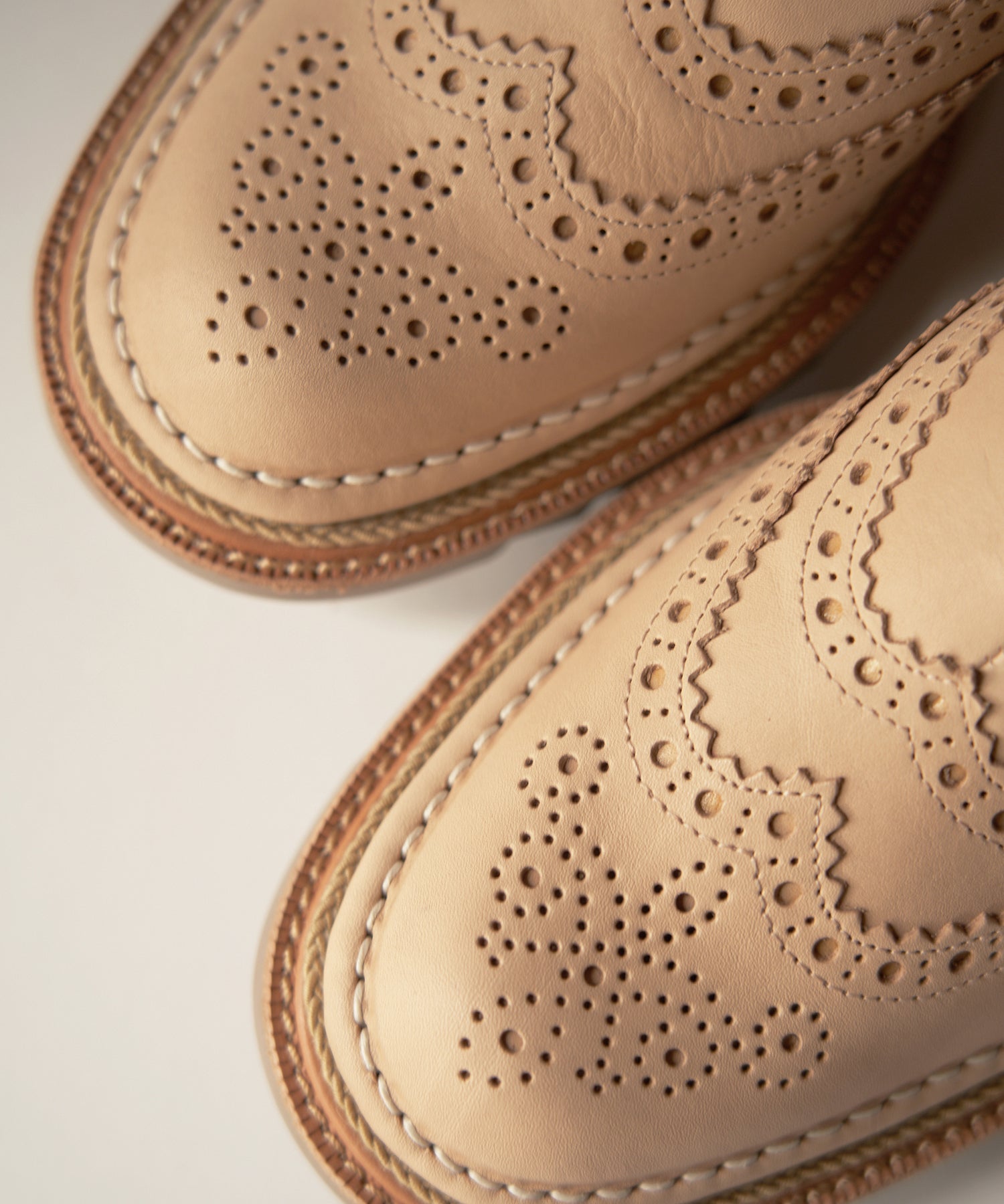 クラシックなウィングチップの佇まいに、経年変化とともに深まる個性を楽しんでいただけます。